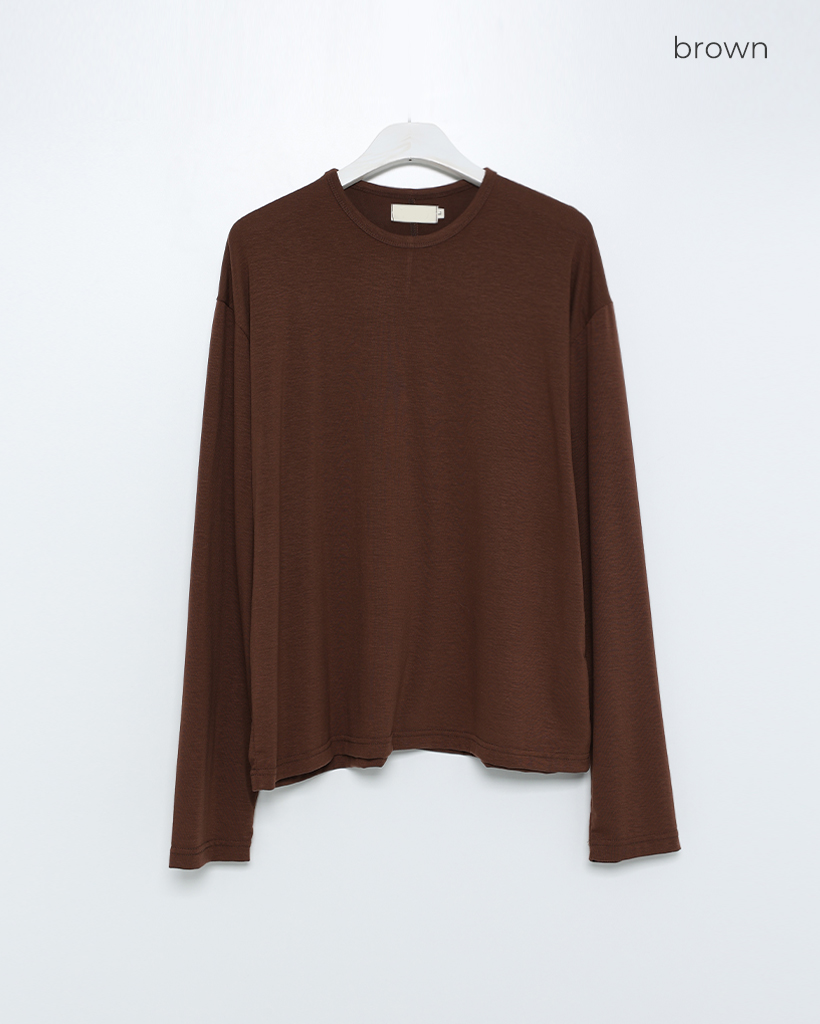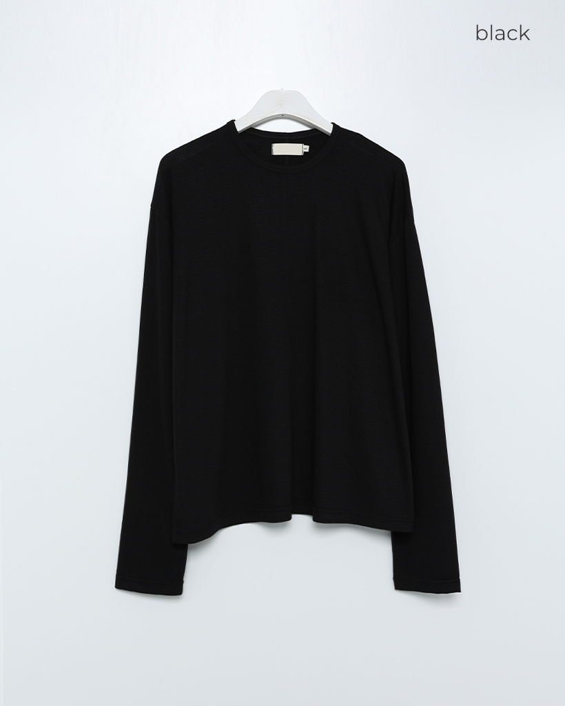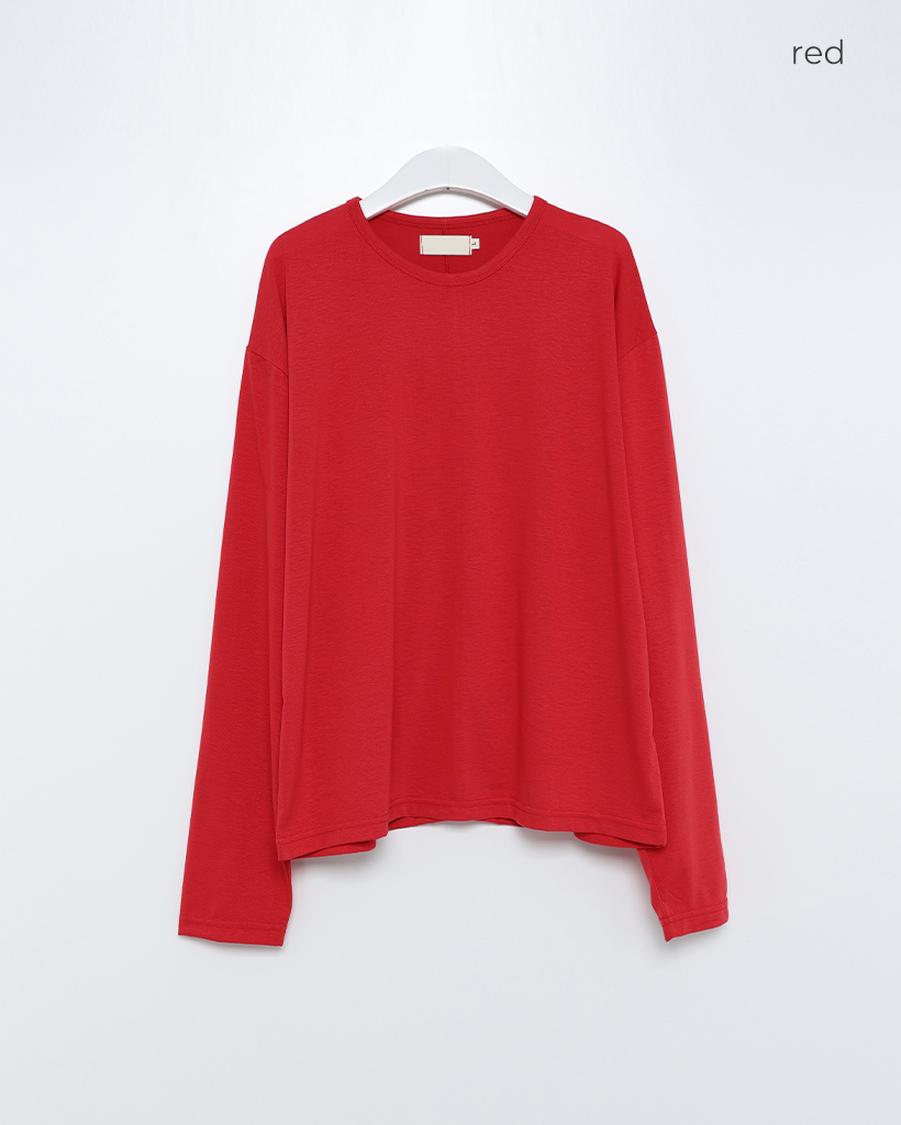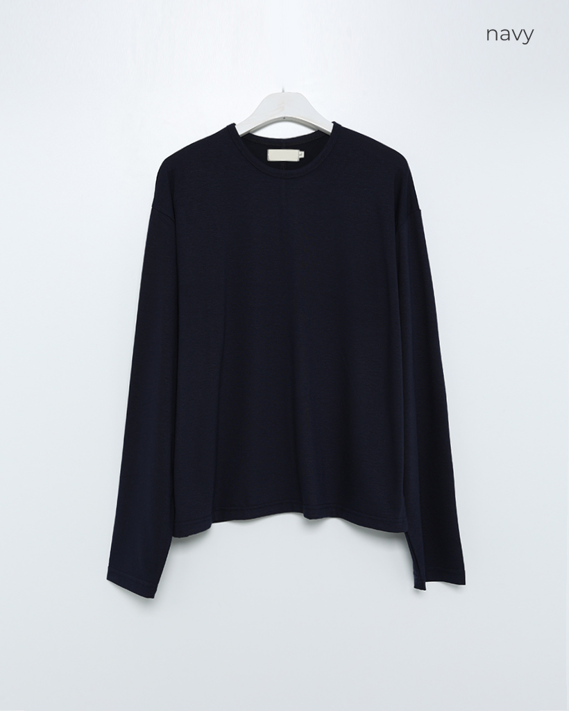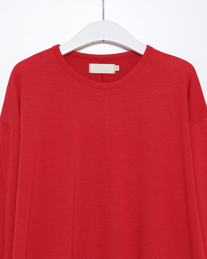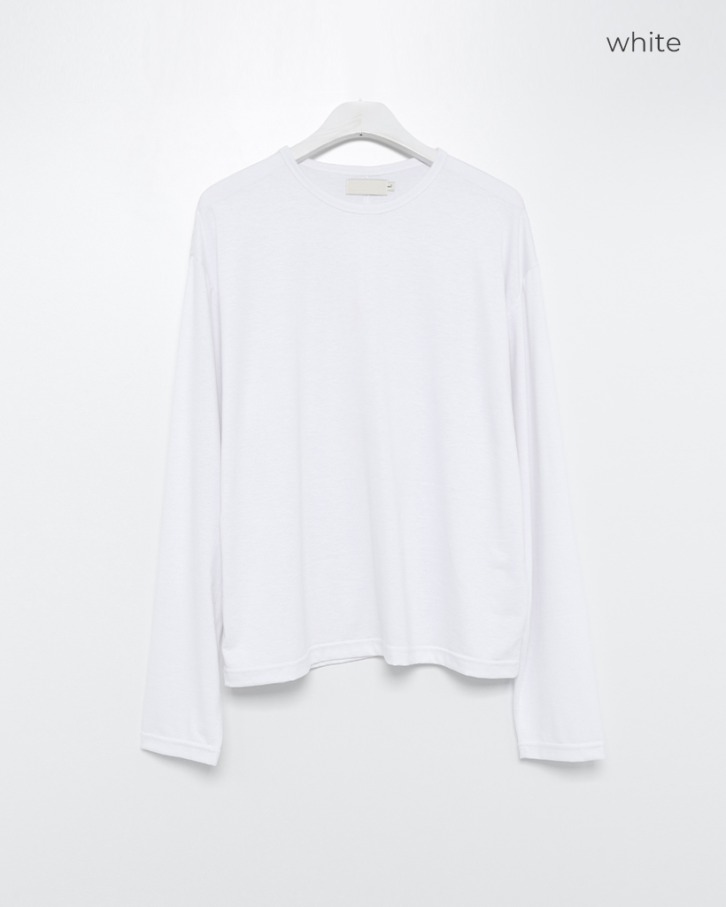 (ユニセックス)シンプルラウンド長袖Tシャツ