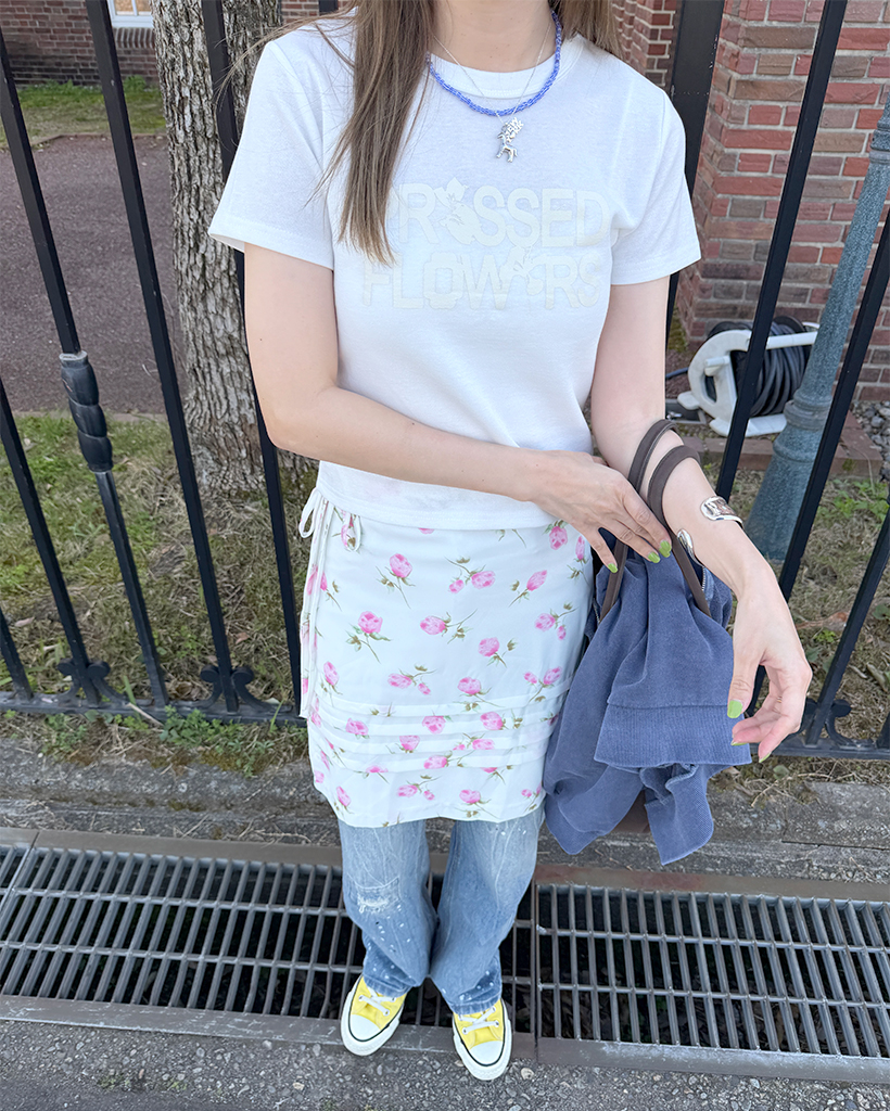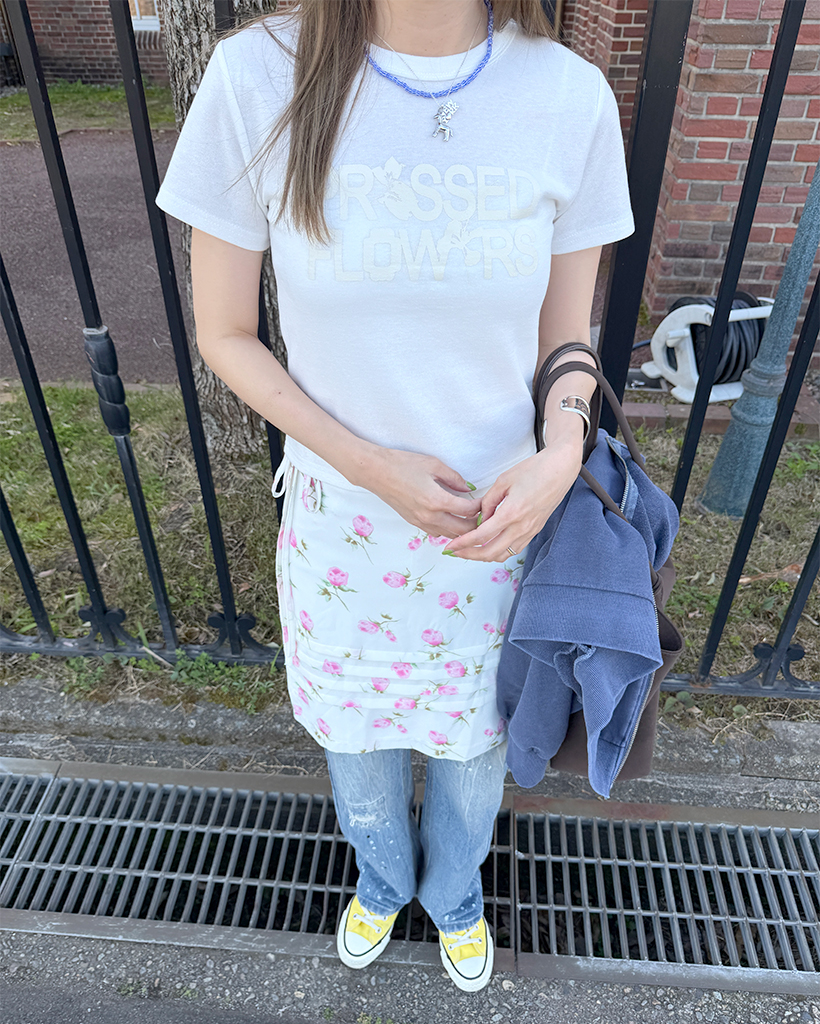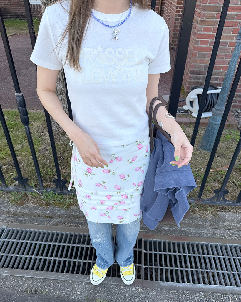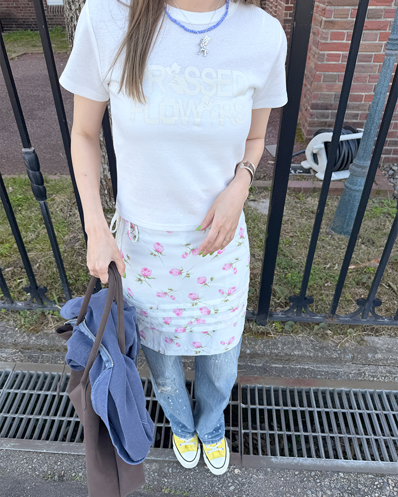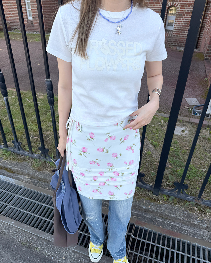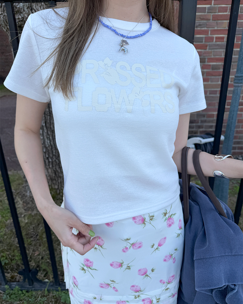 フラワープリントレタリングショートスリーブTシャツ