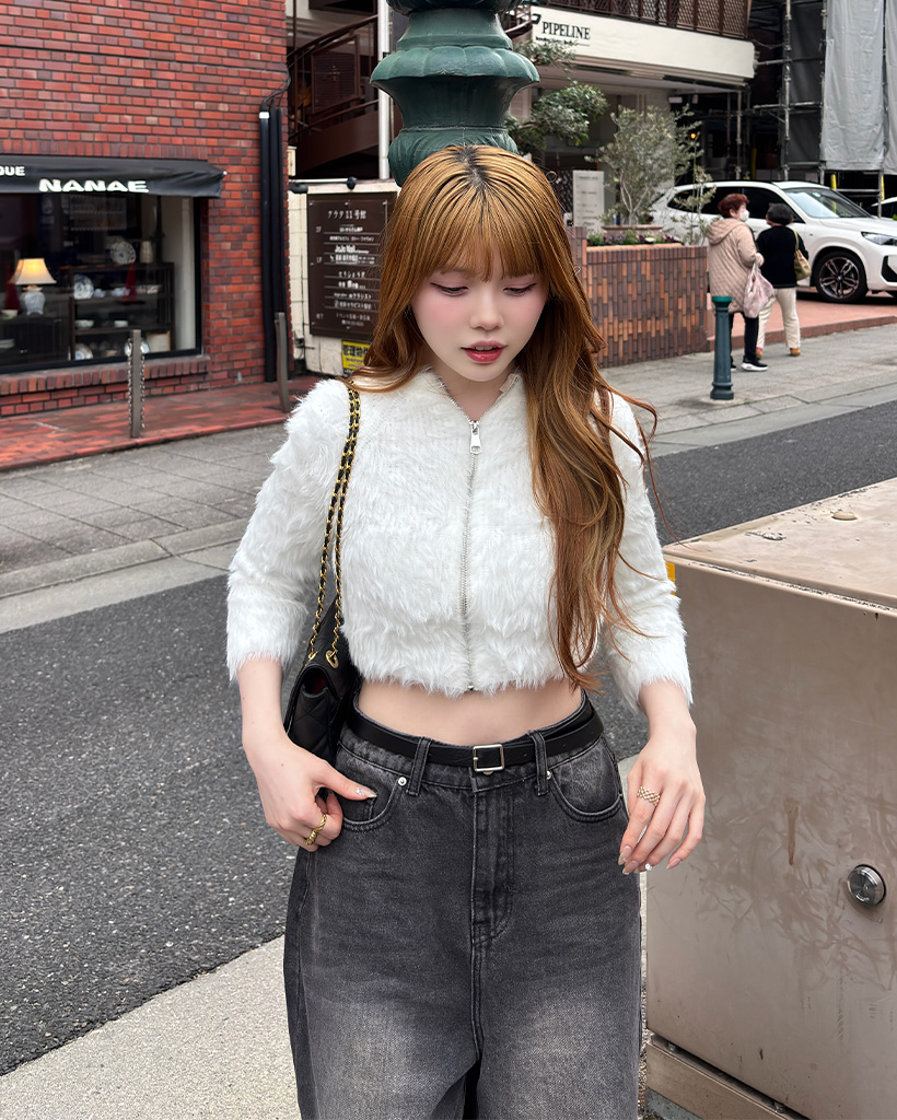 クロップニットジップカーディガン
