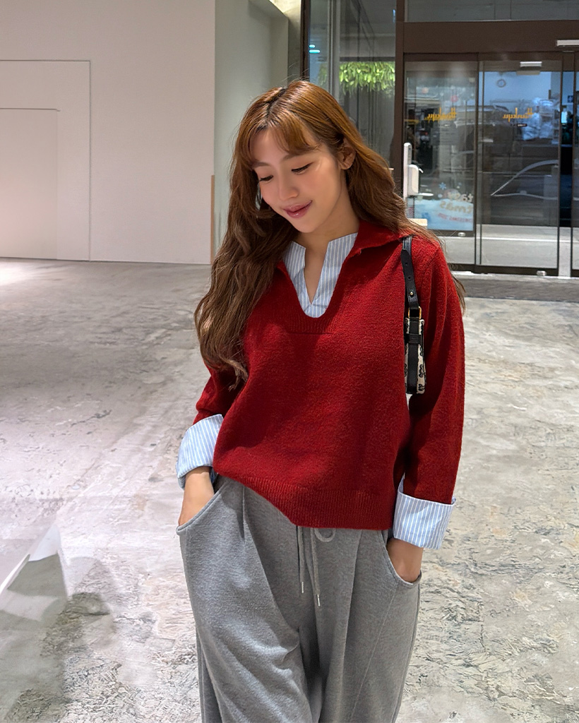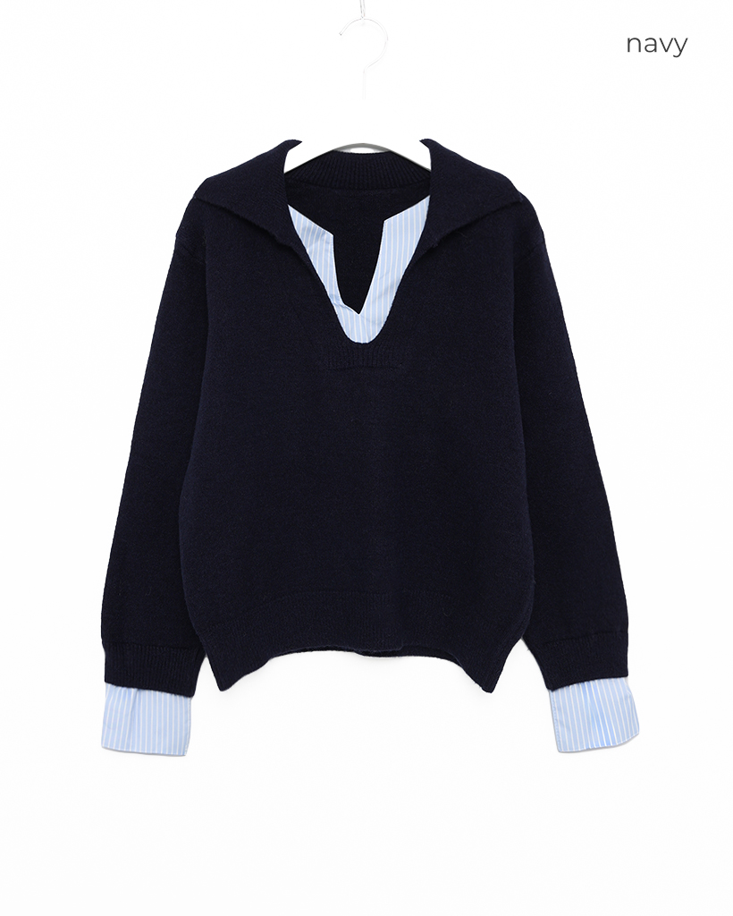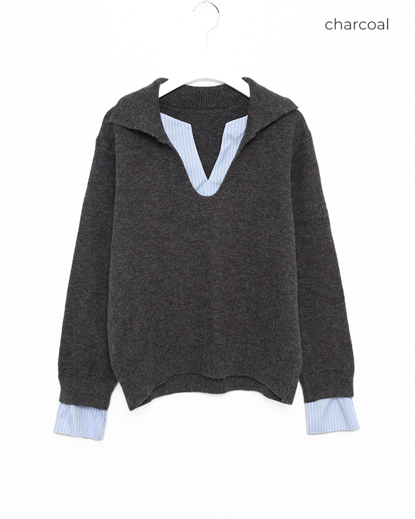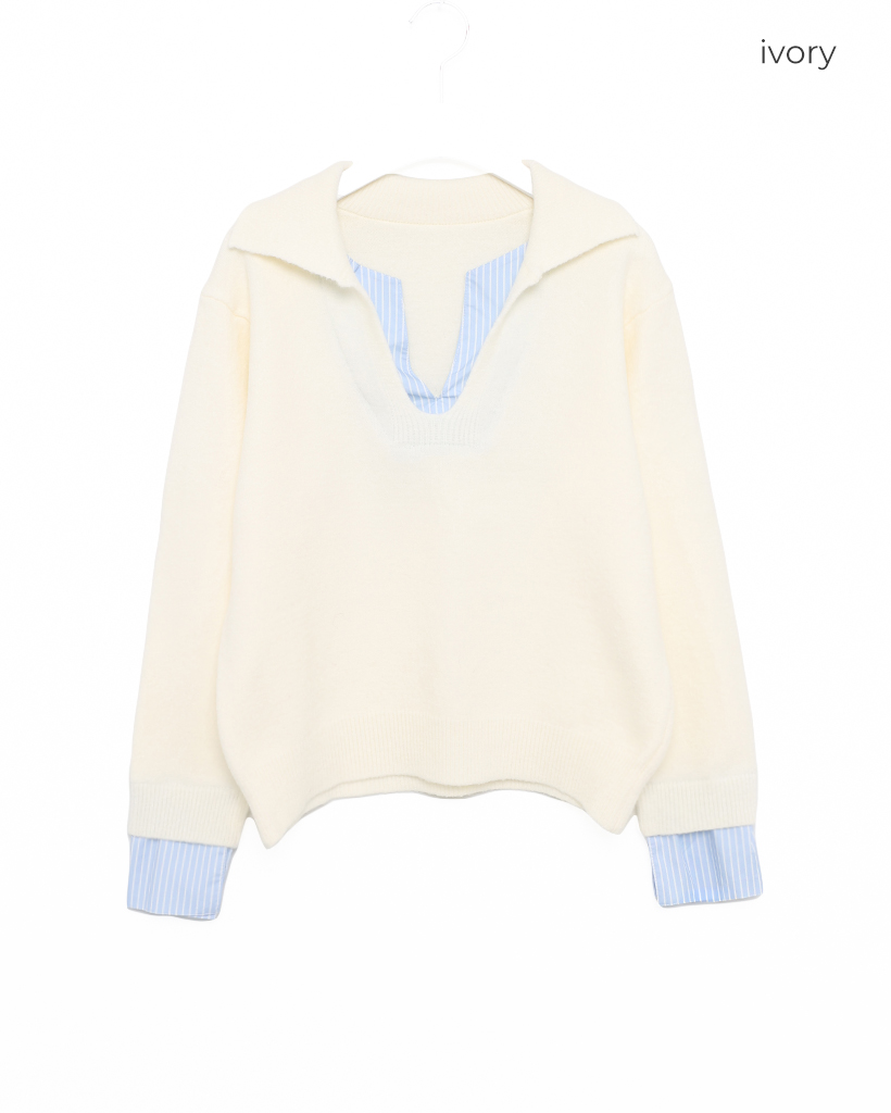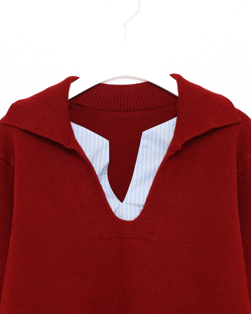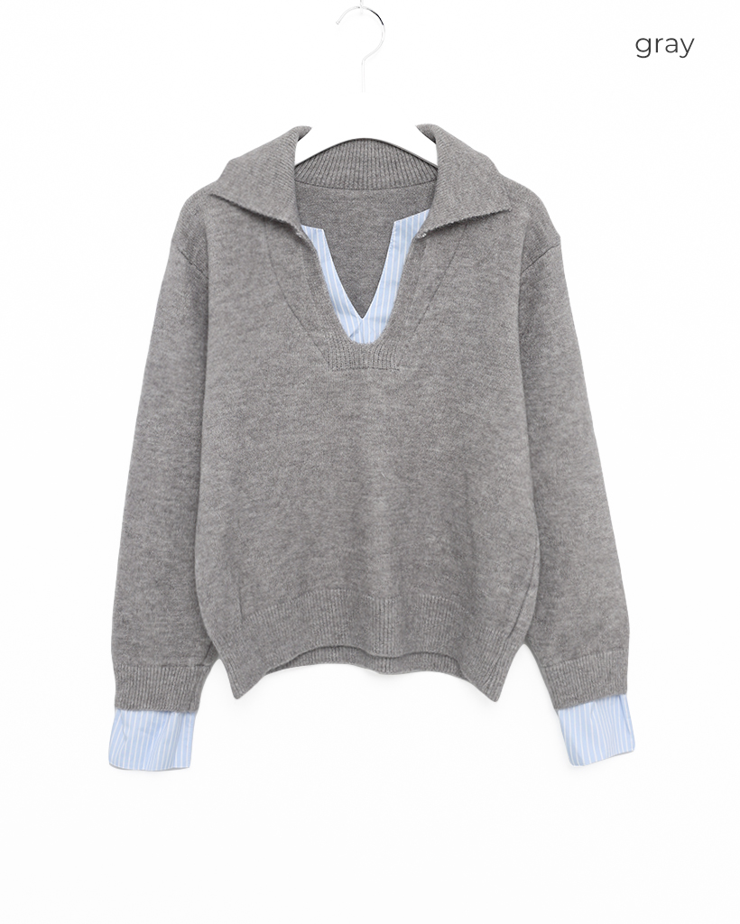 バイカラーシャツ長袖ニット