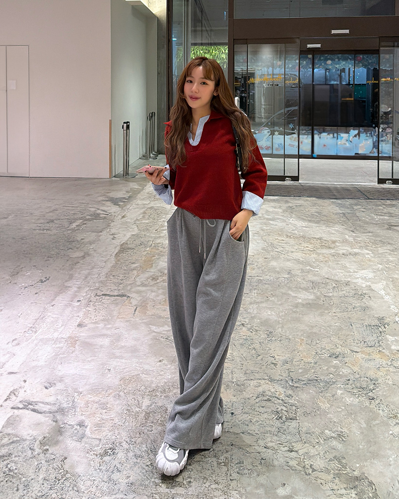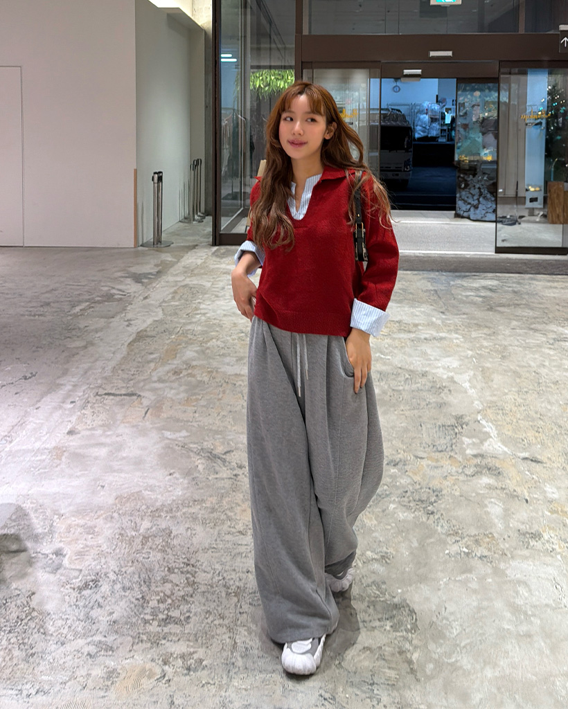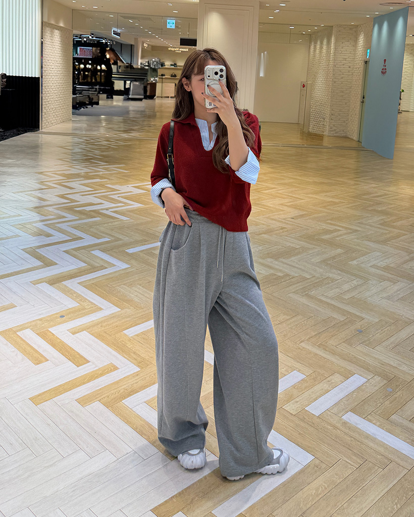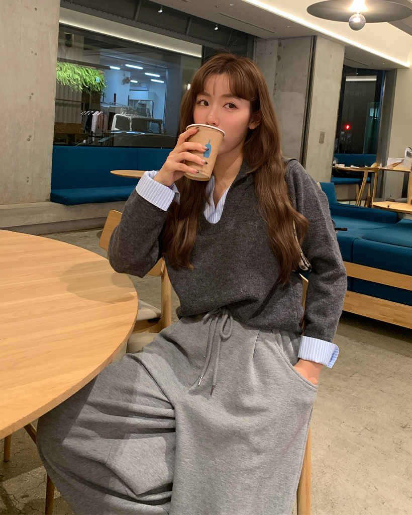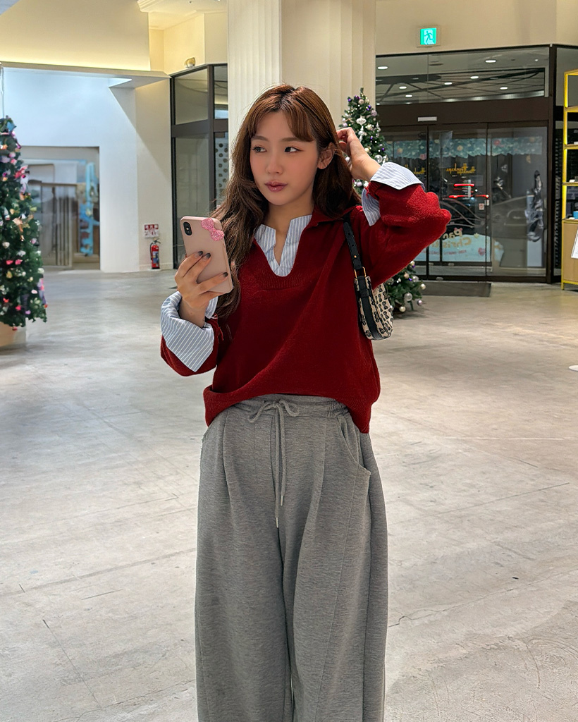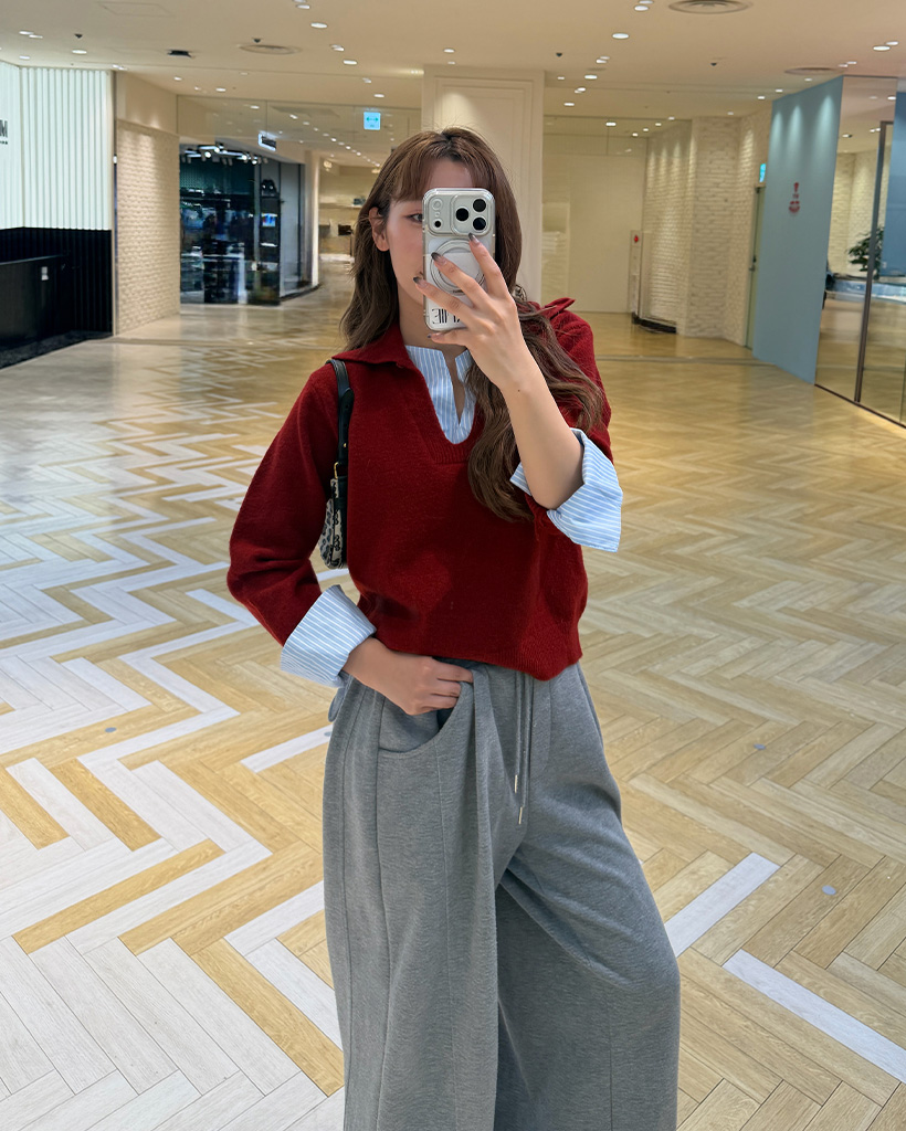バイカラーシャツ長袖ニット