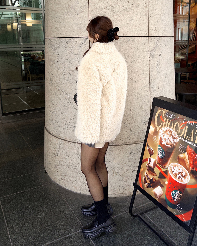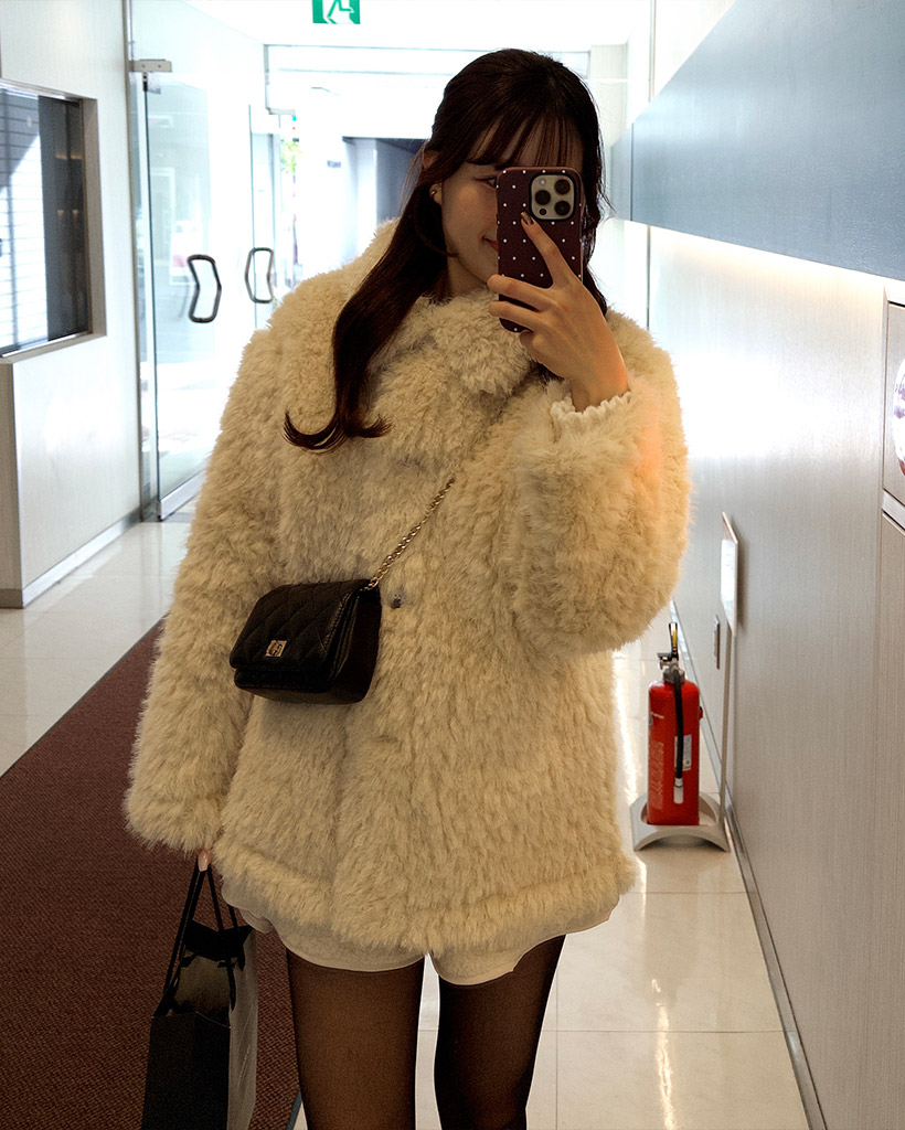 カラーネックファーハーフコート