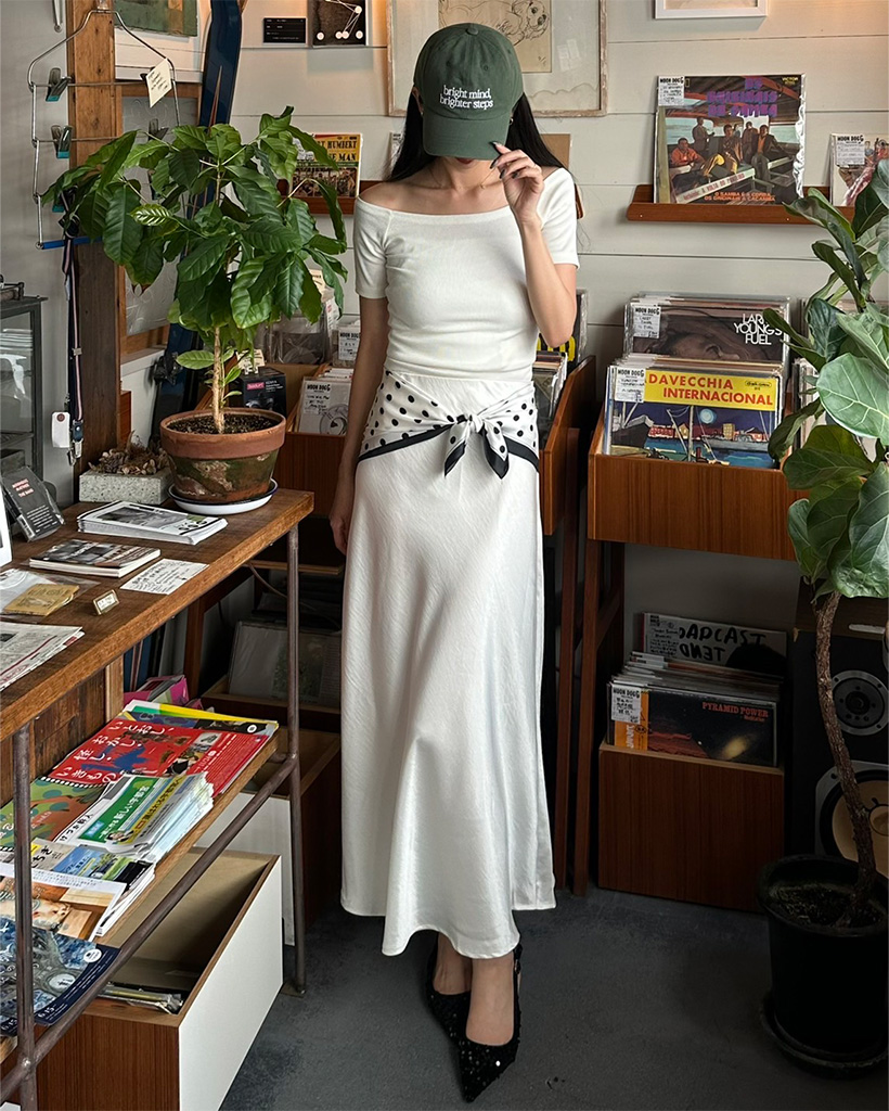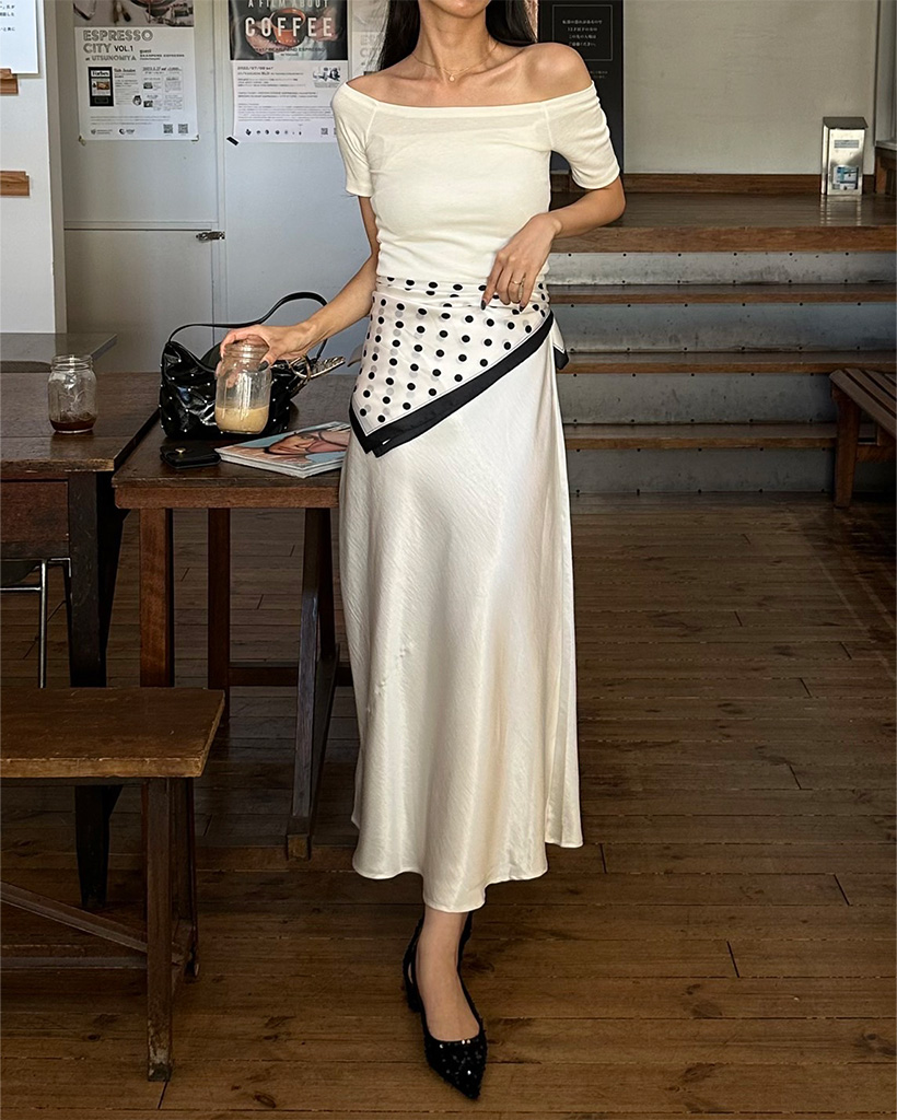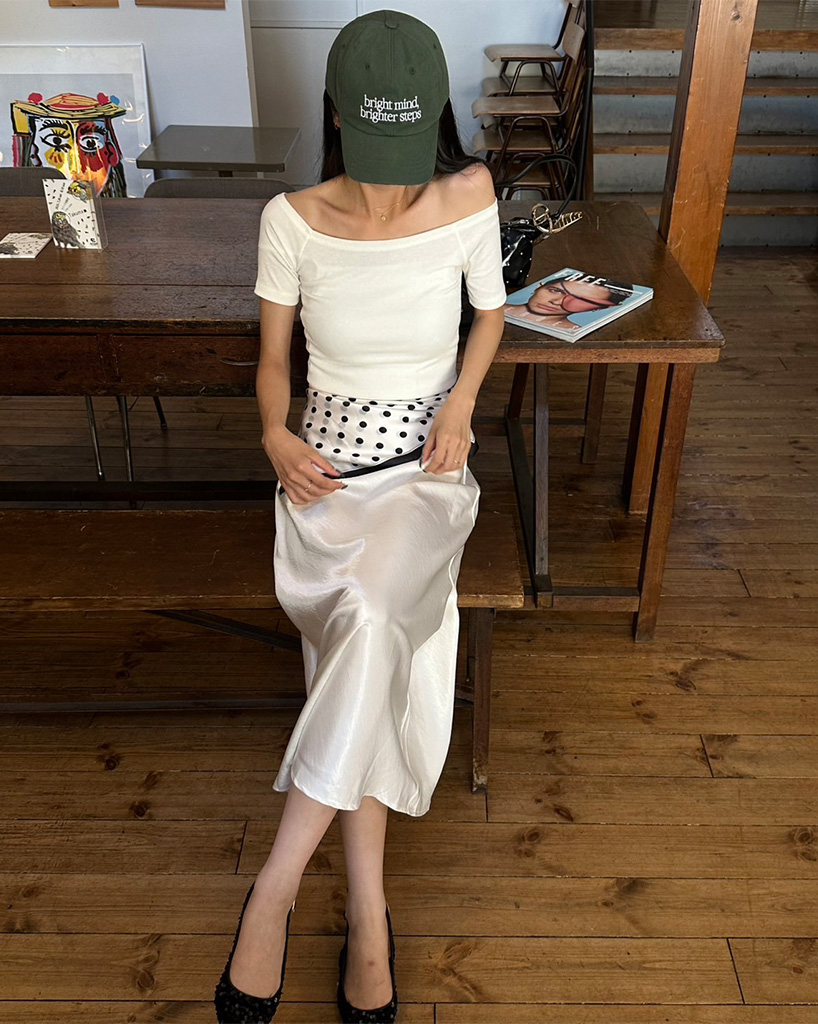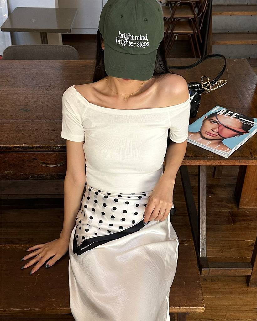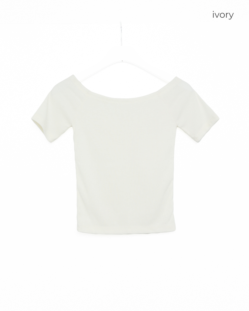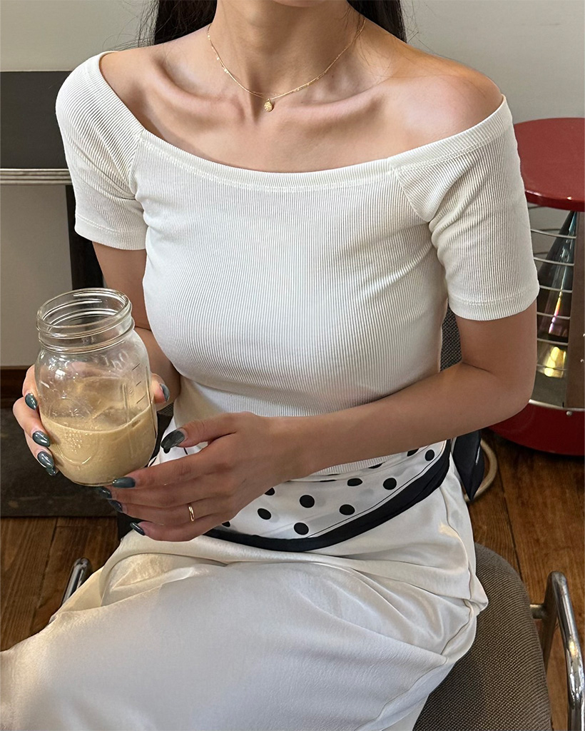 オフショルダースリムフィードTシャツ