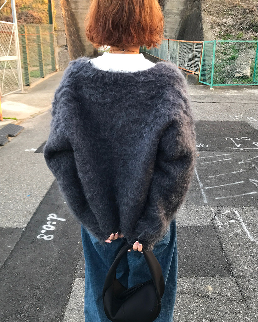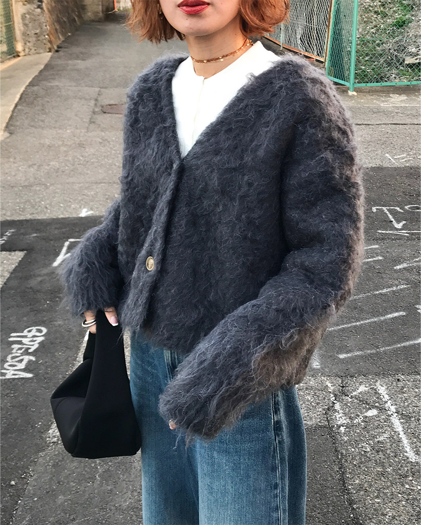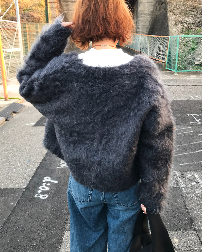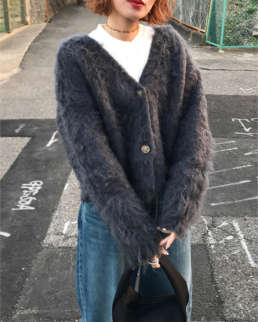 Vネックファーカーディガン