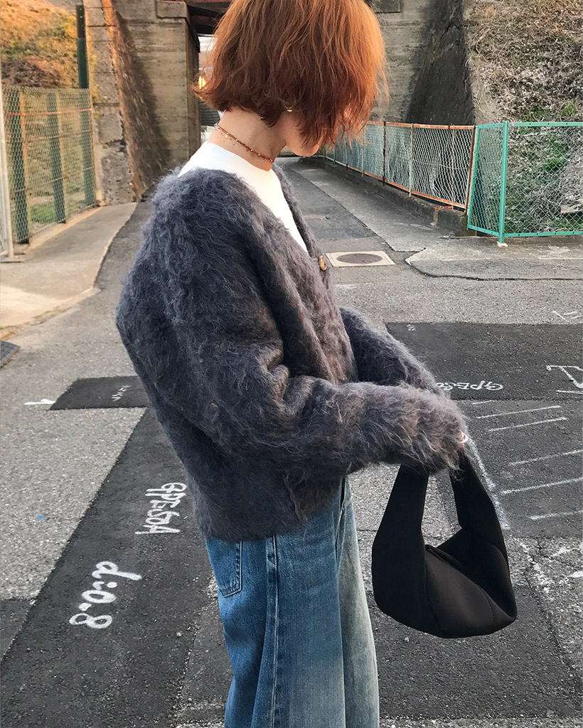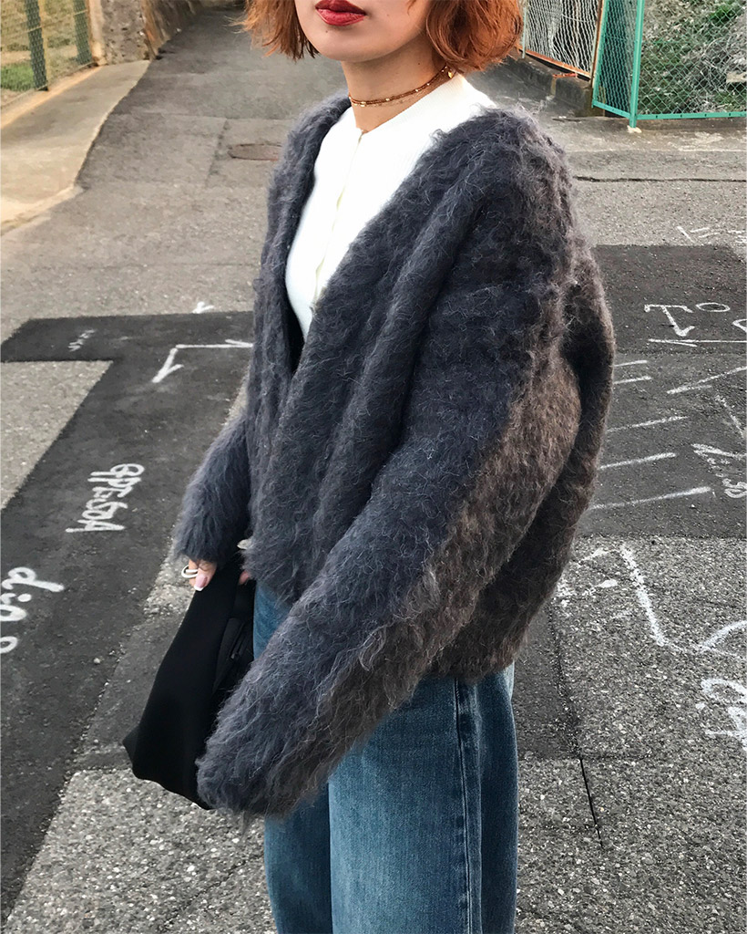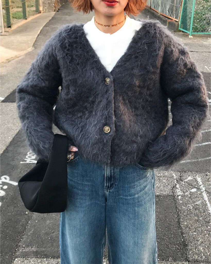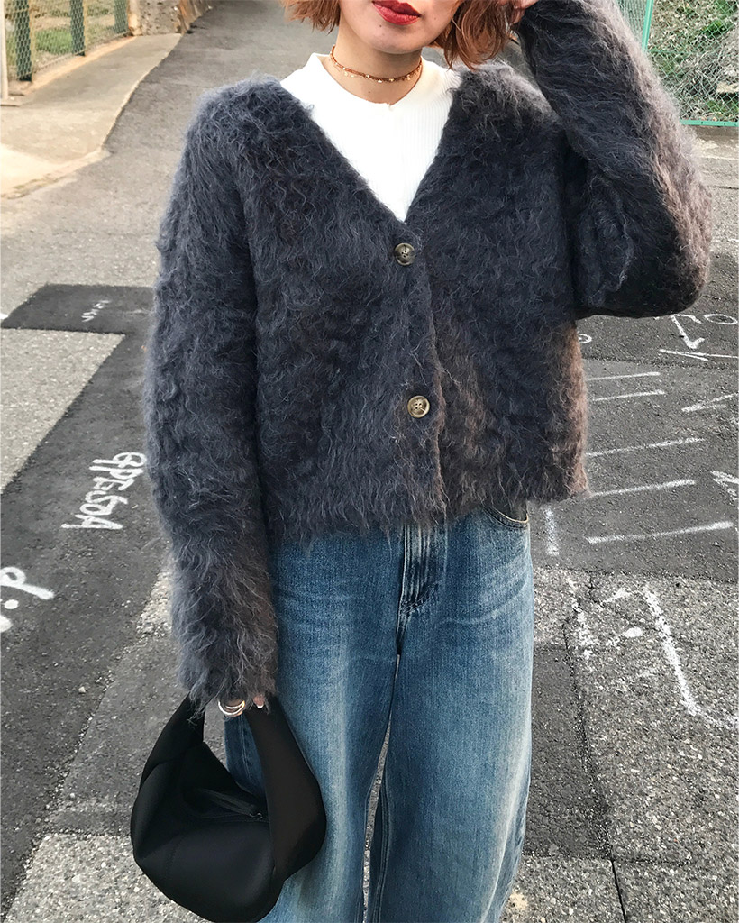 Vネックファーカーディガン