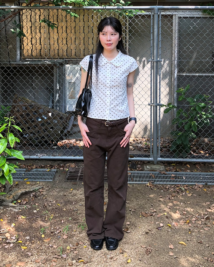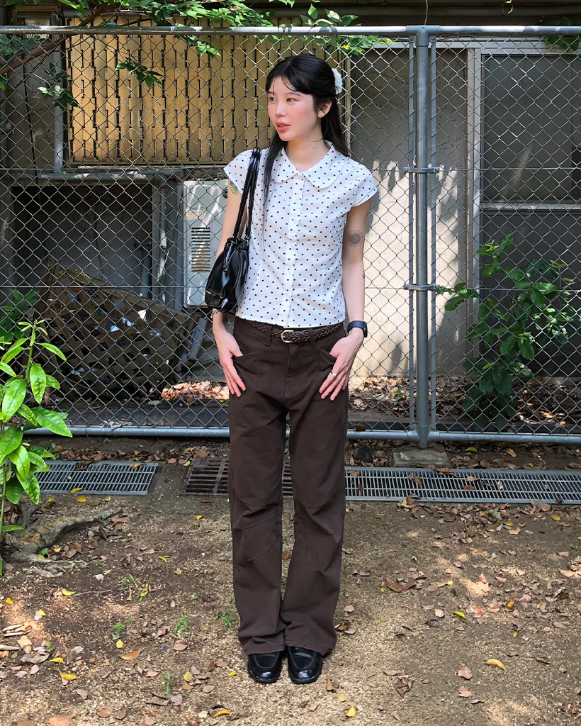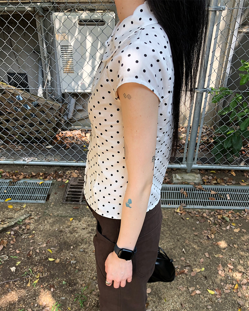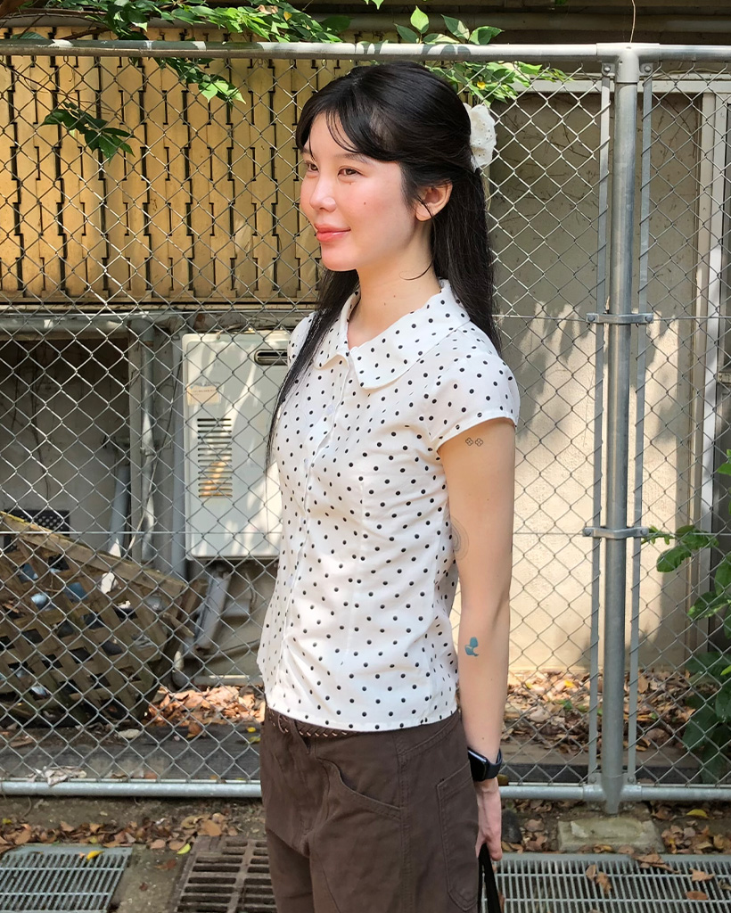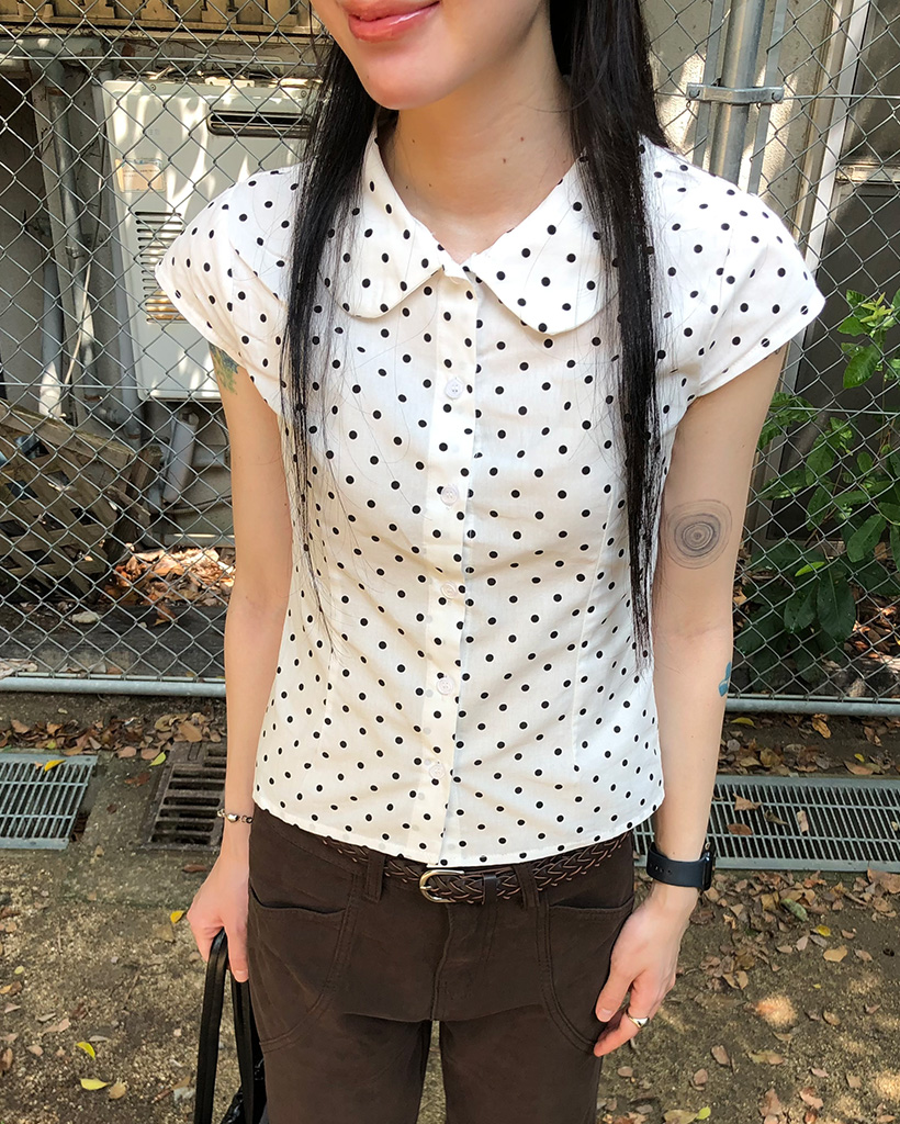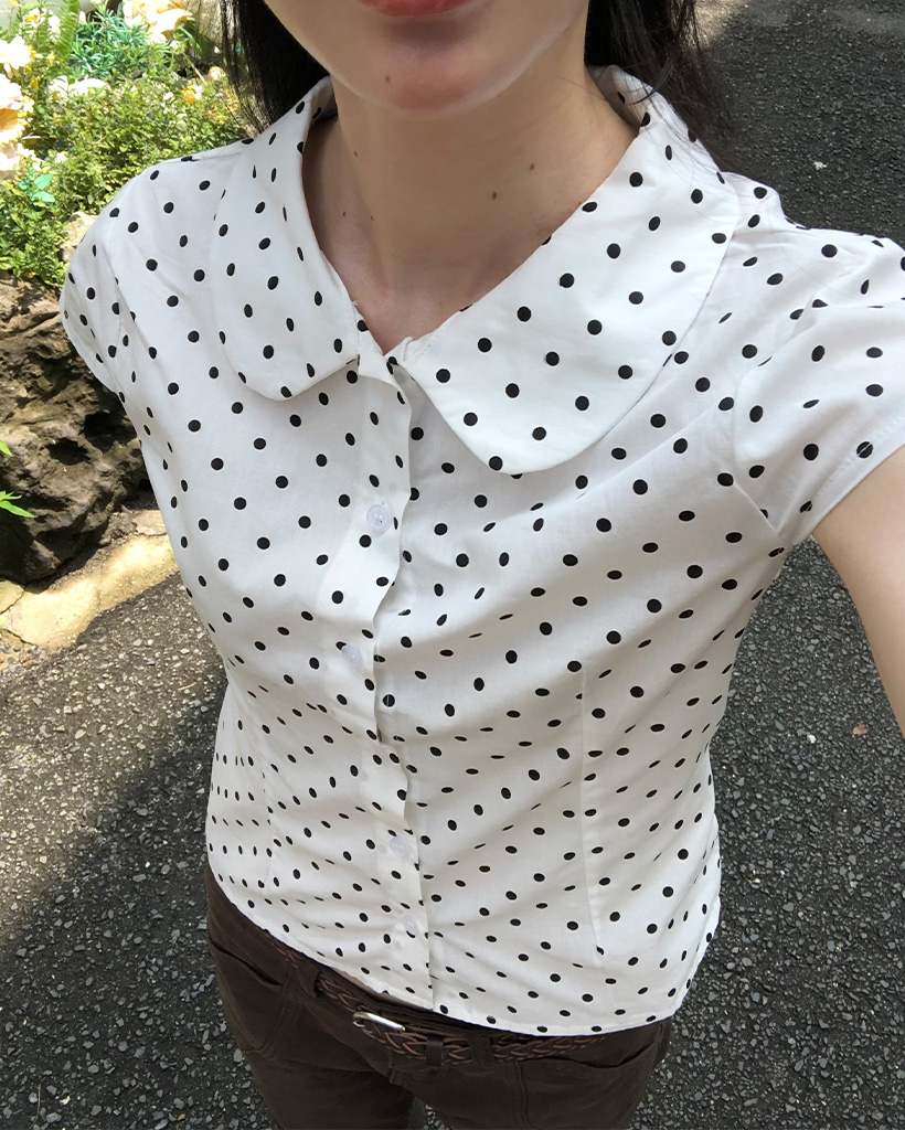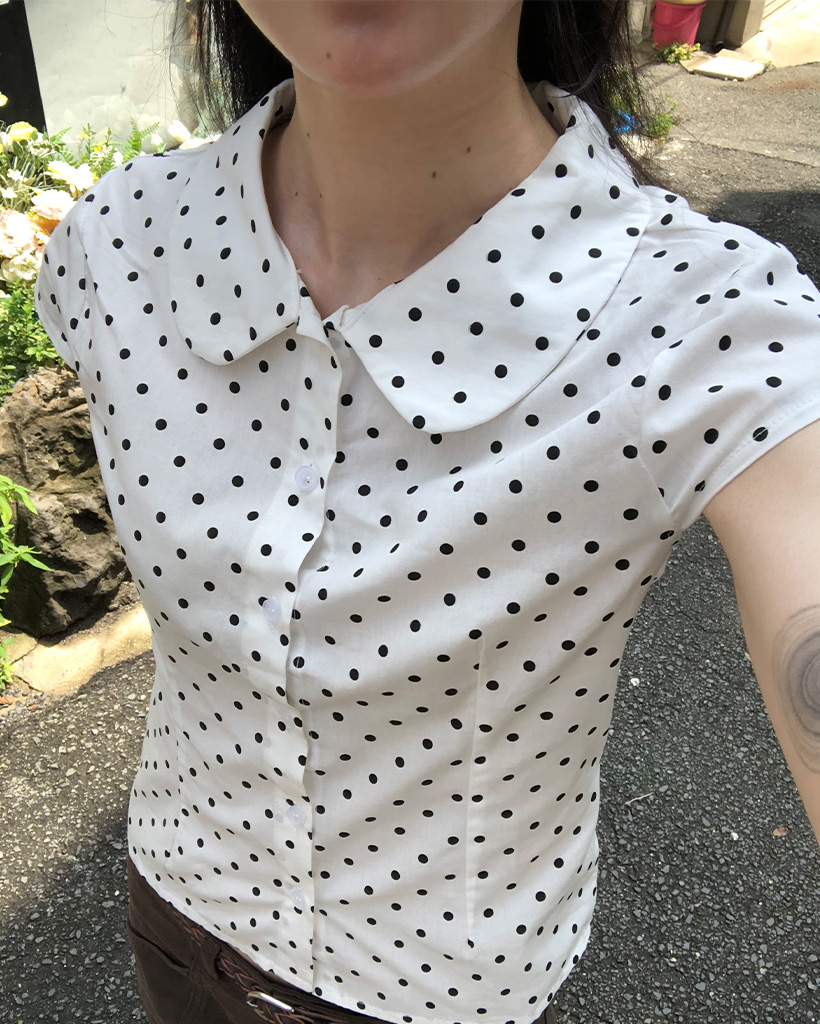 カラドット半袖スリムフィードブラウス