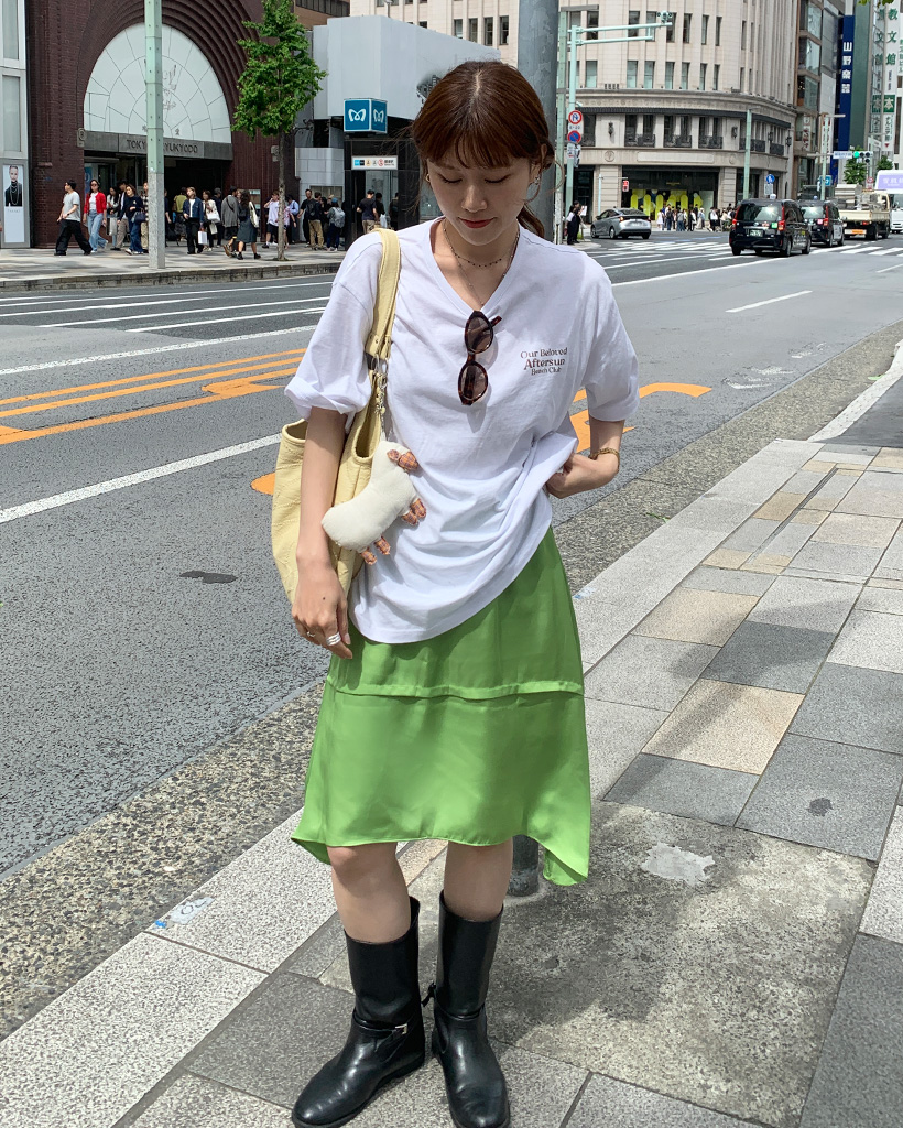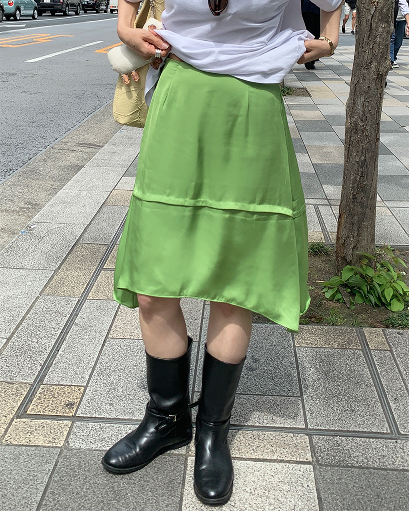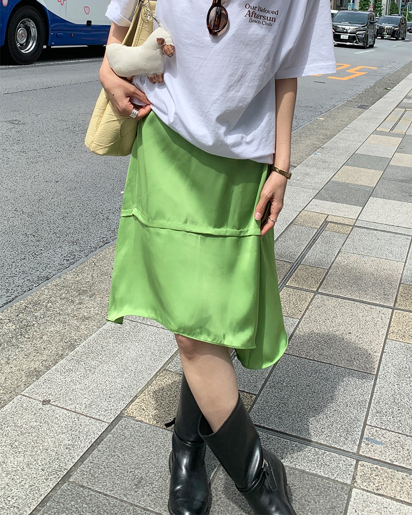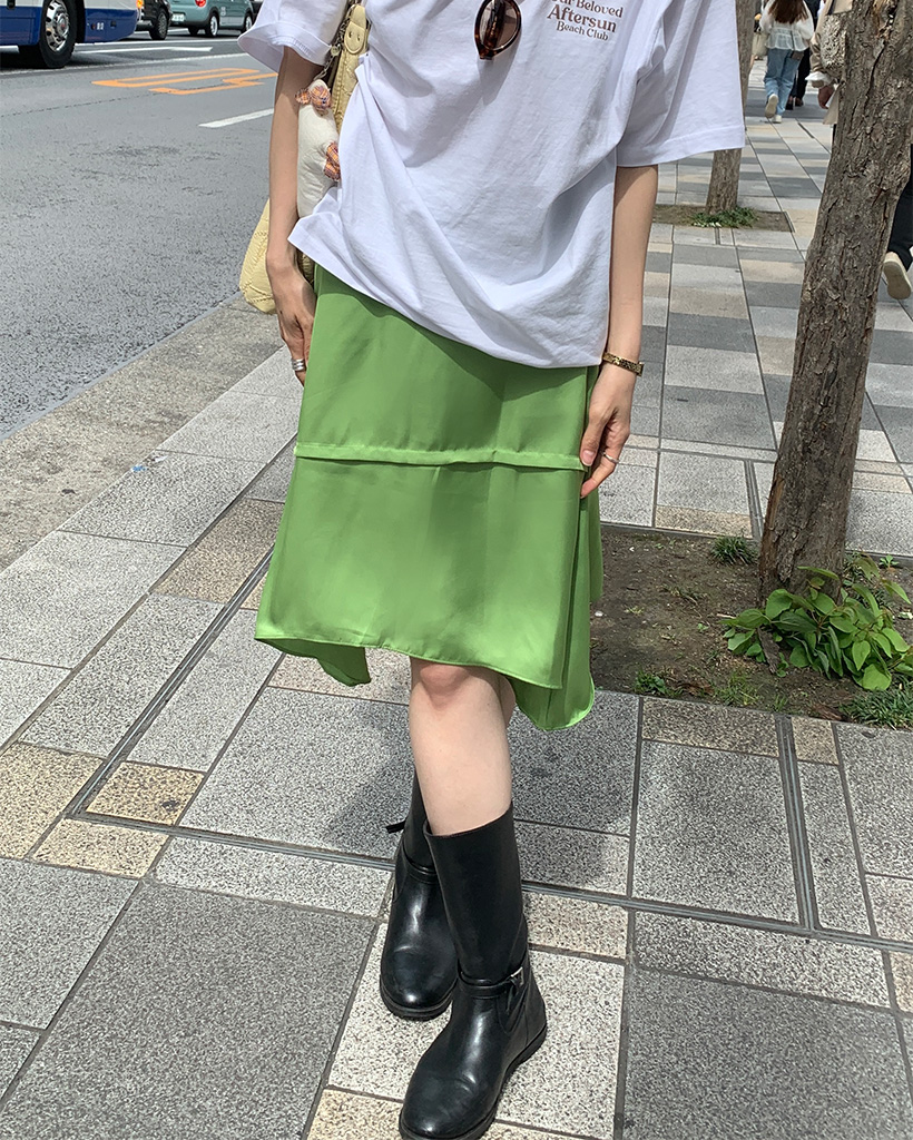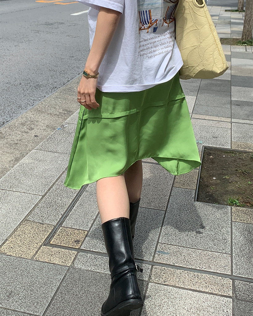 サテンミディスカート
