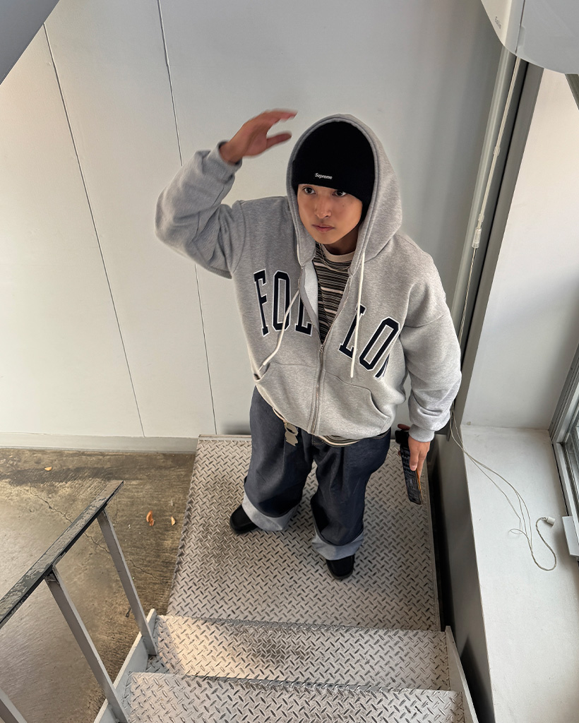 FOLLOWロゴフードパーカー