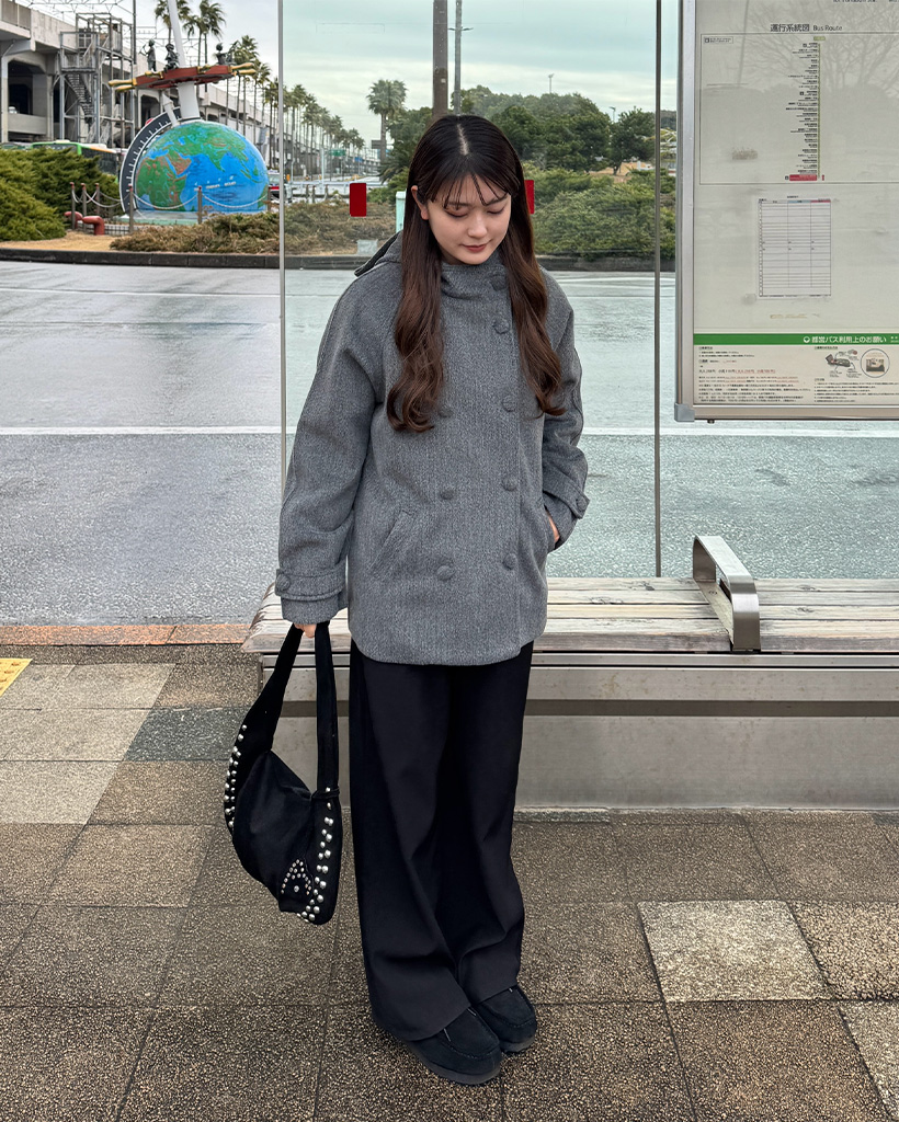 #マユ#157cm#ウェーブ#モノトーン#ユニセックス#カジュアル