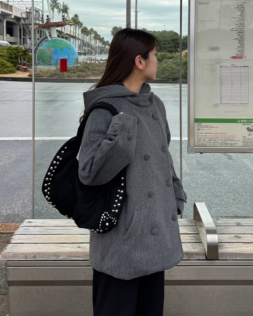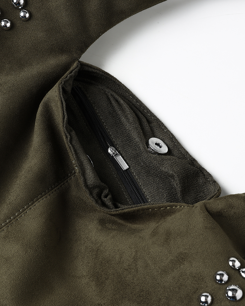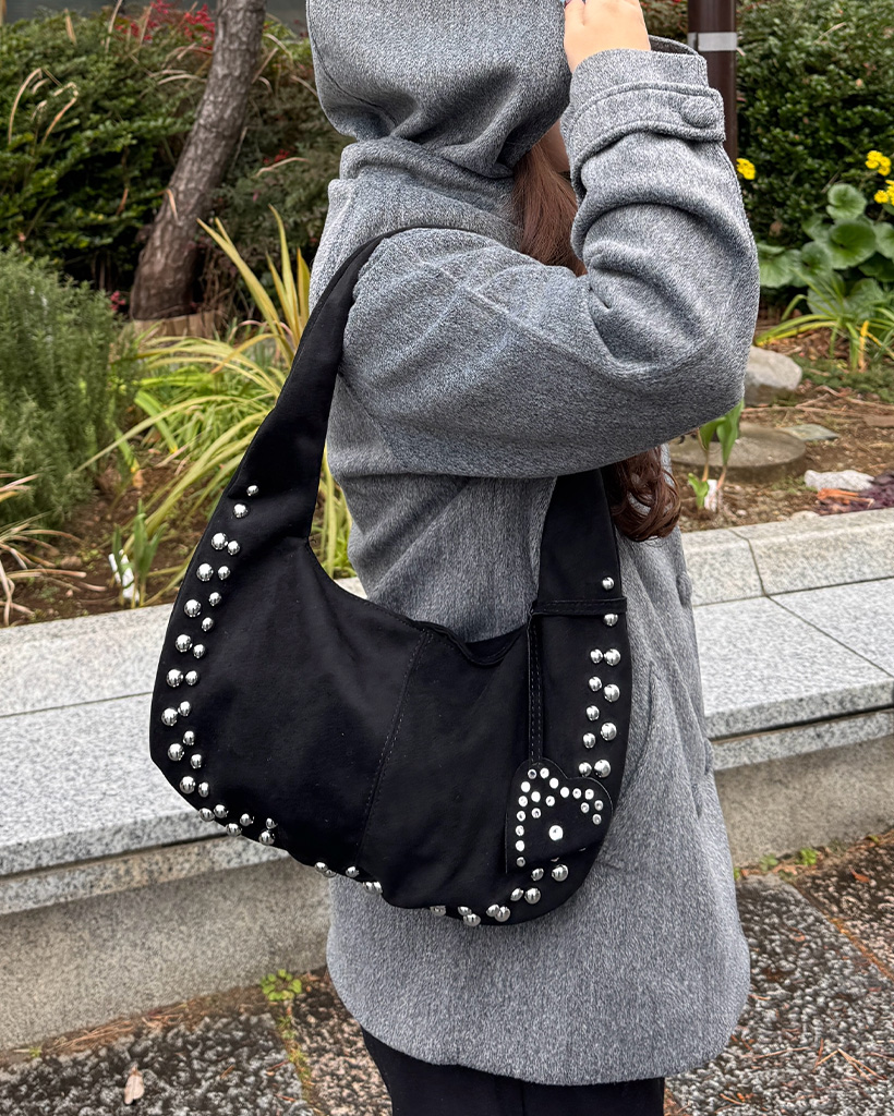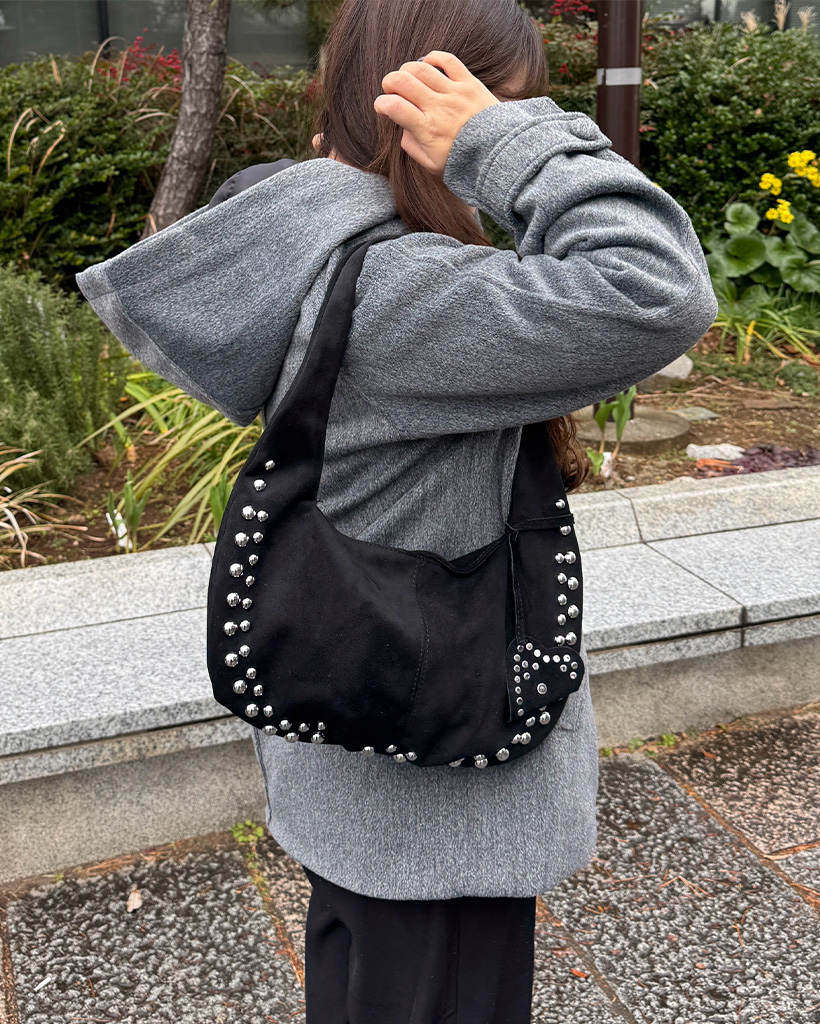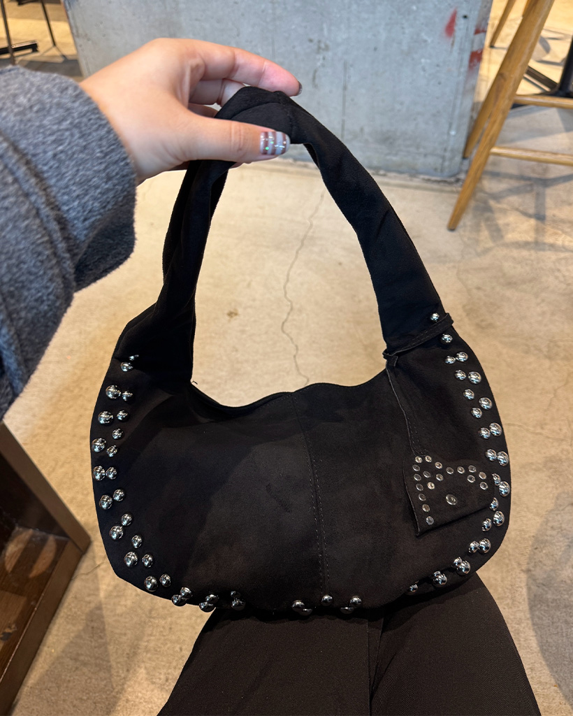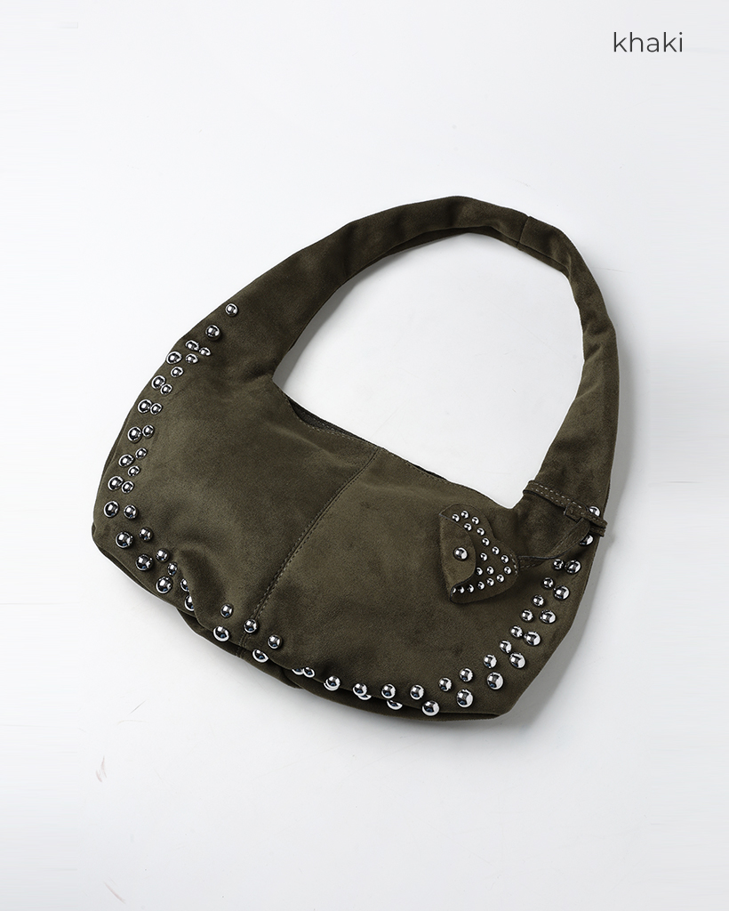 スタッズ付きスエードショルダーバッグ