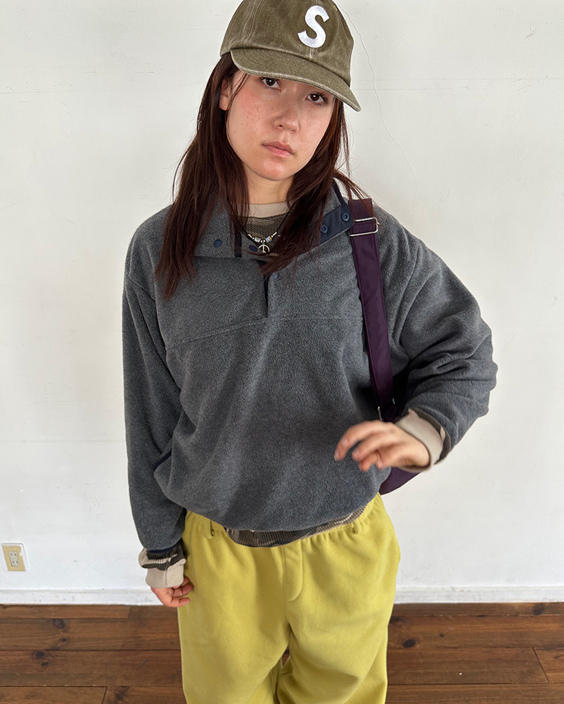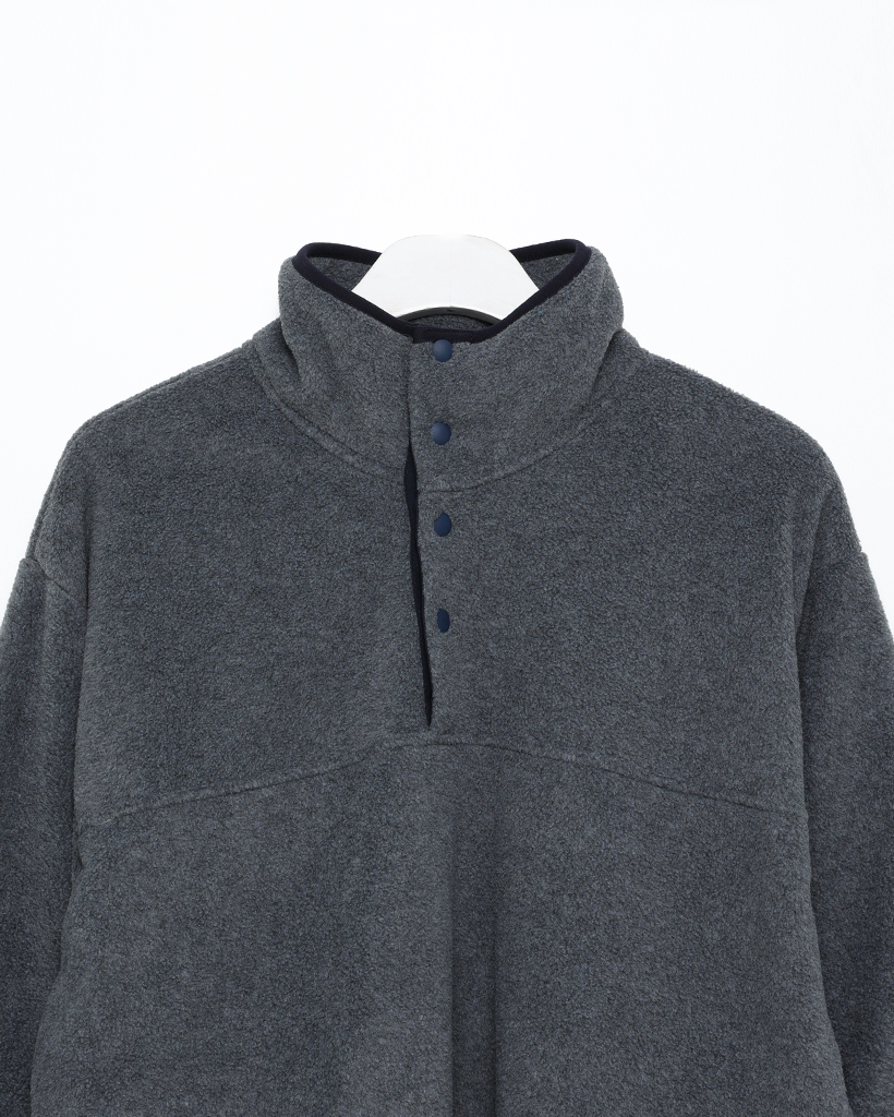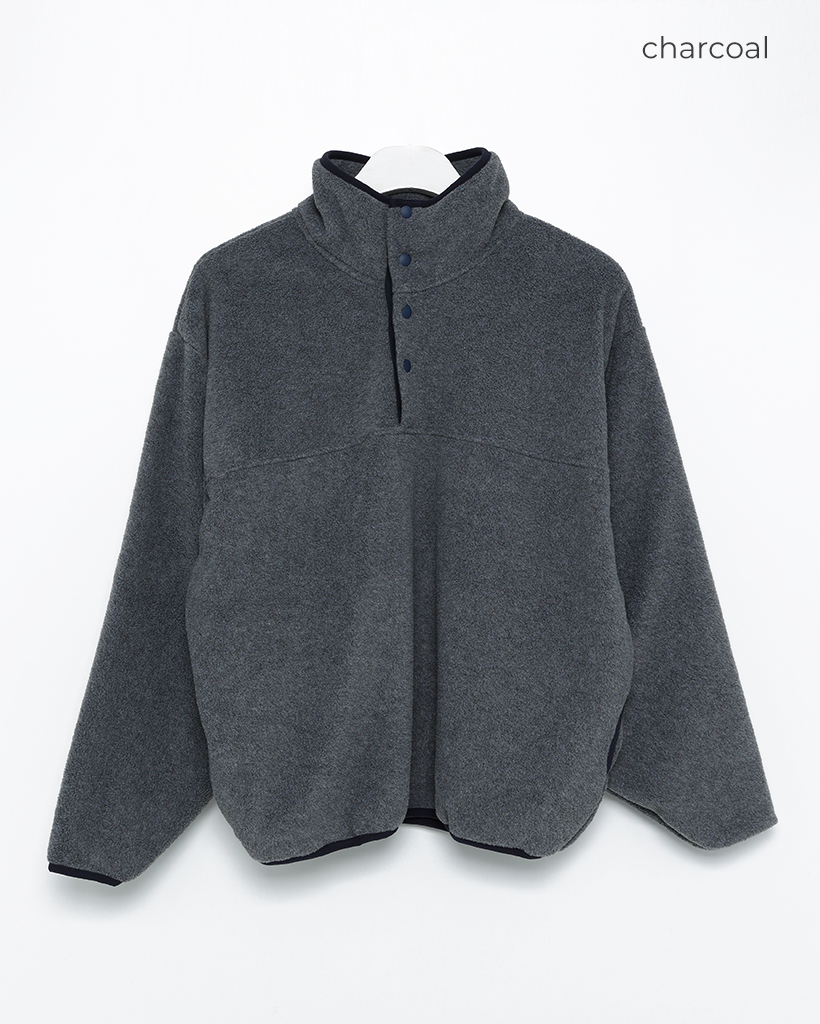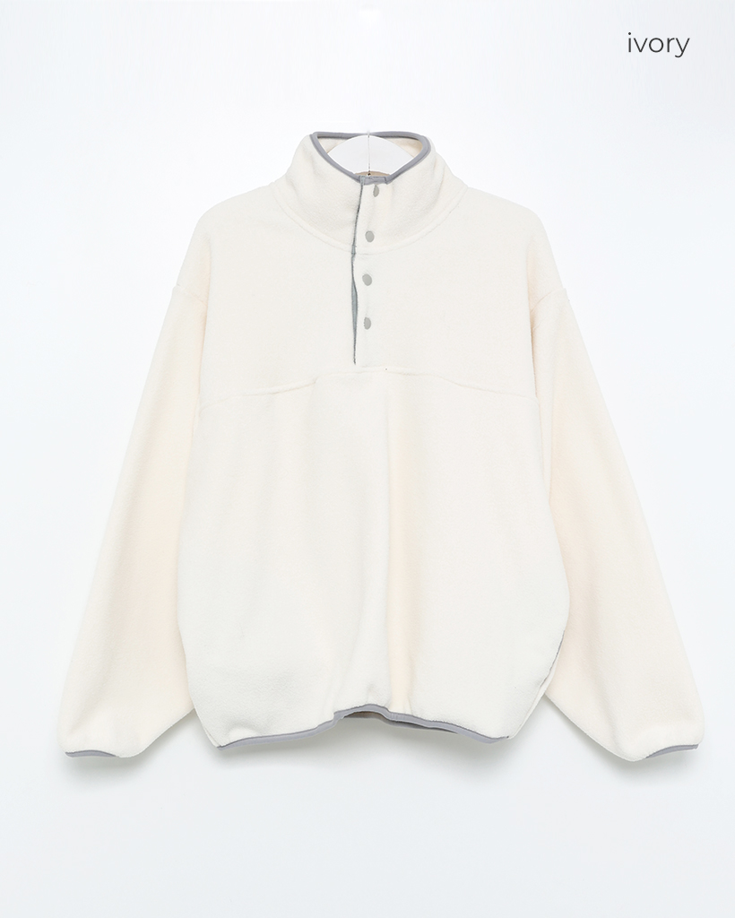 ポイントバイカラーハイネックハーフボタンフリース