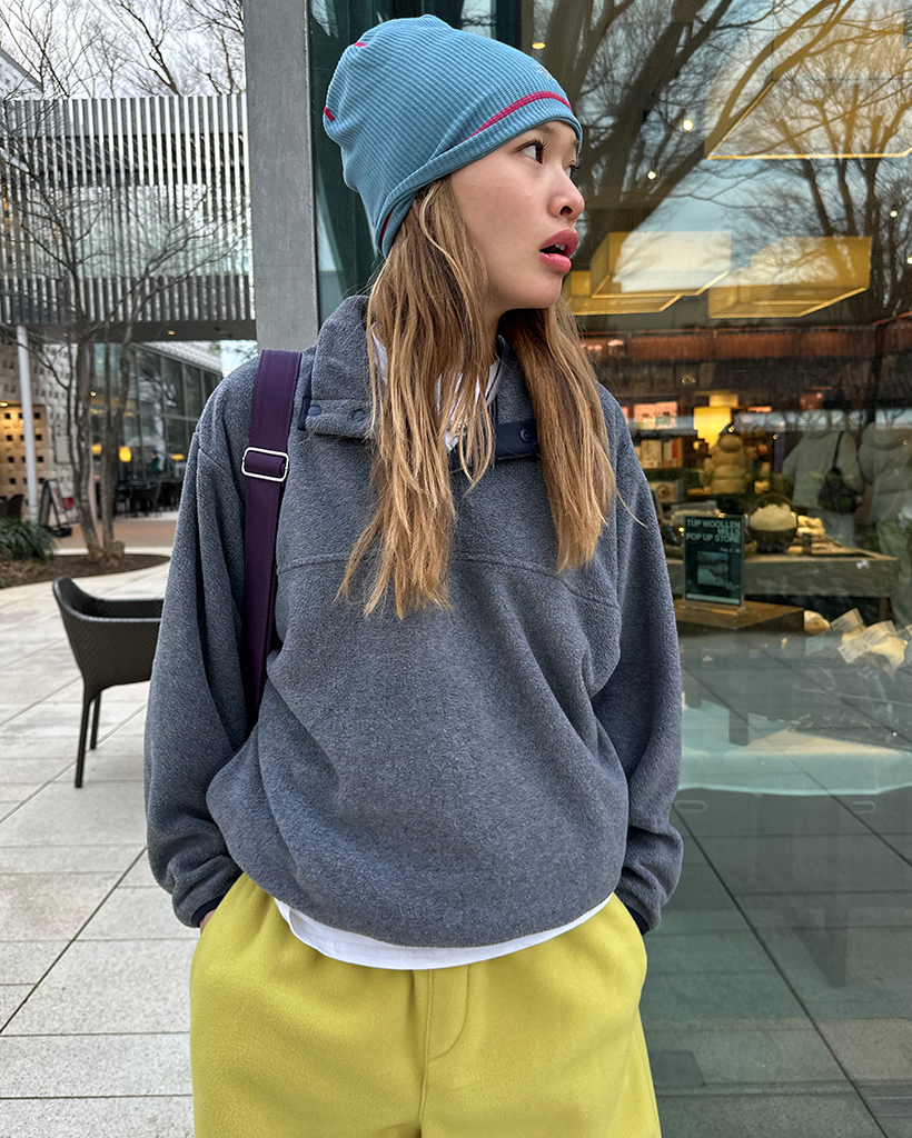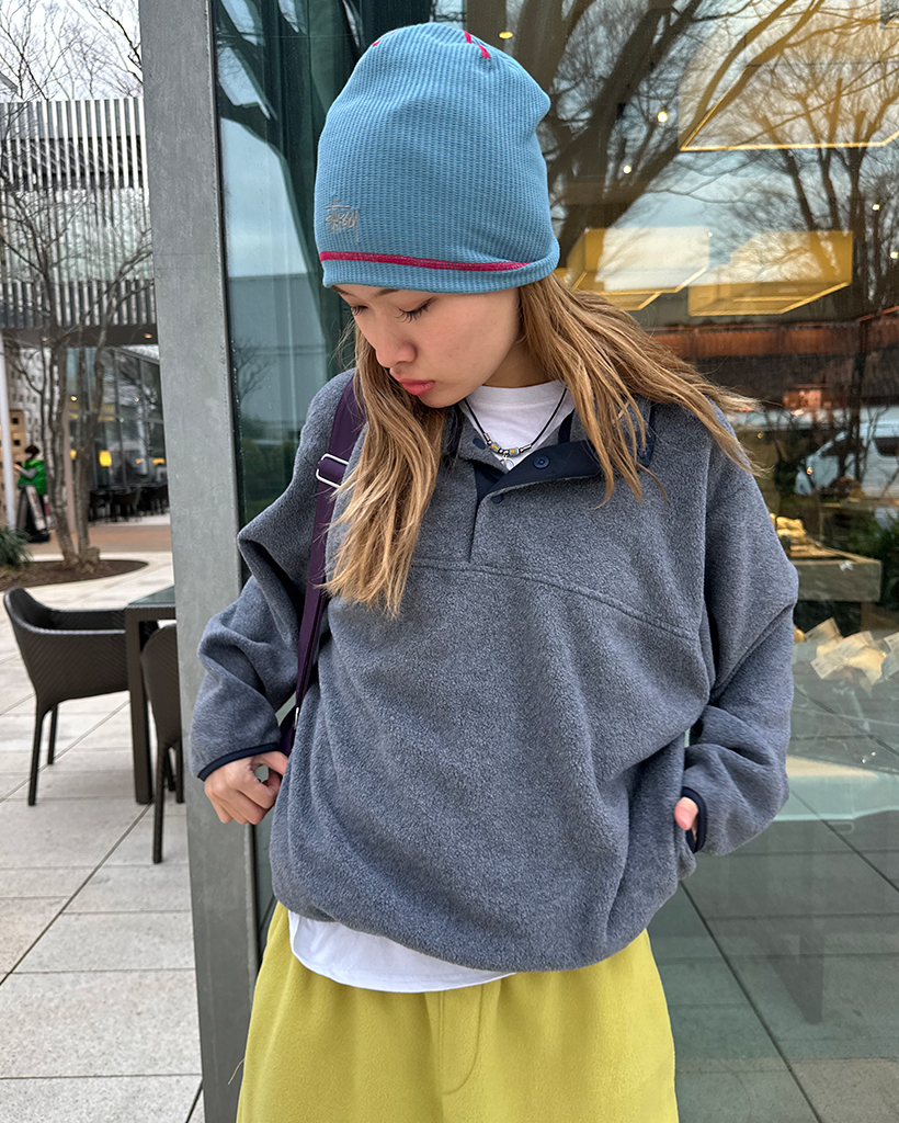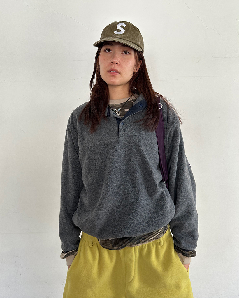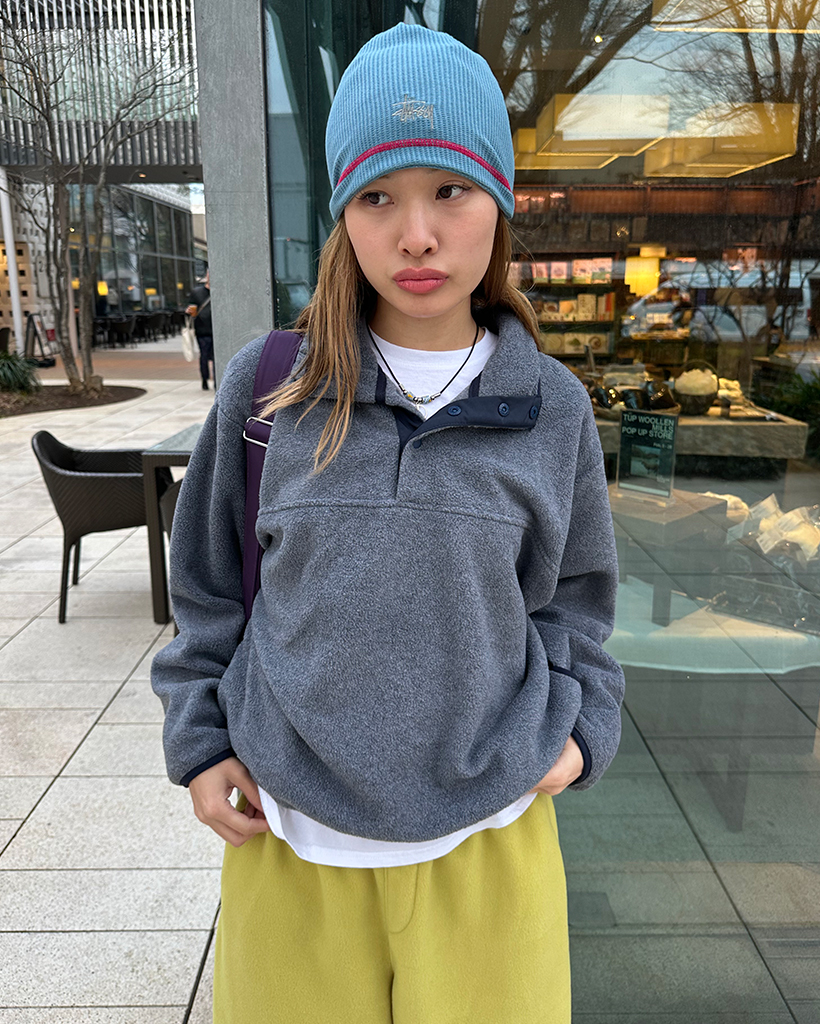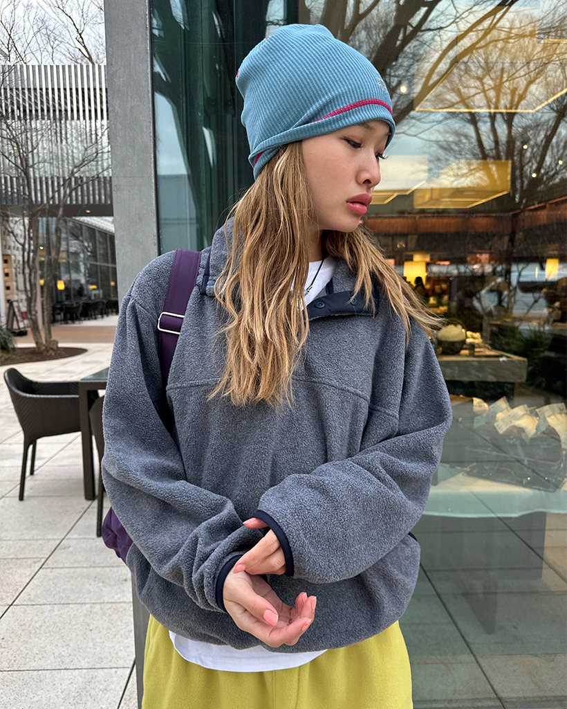 ポイントバイカラーハイネックハーフボタンフリース
