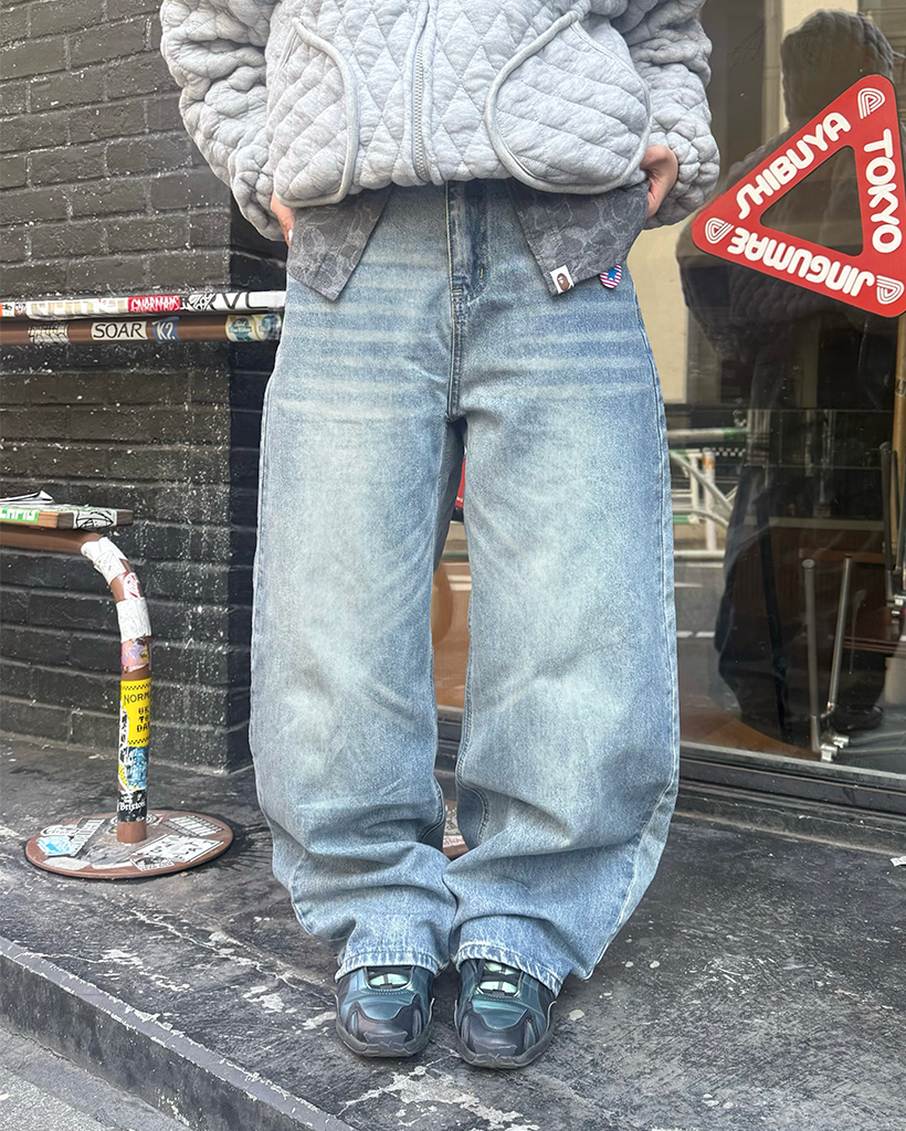 (ユニセックス)ヴィンテージウォッシュバルーンデニムパンツ
