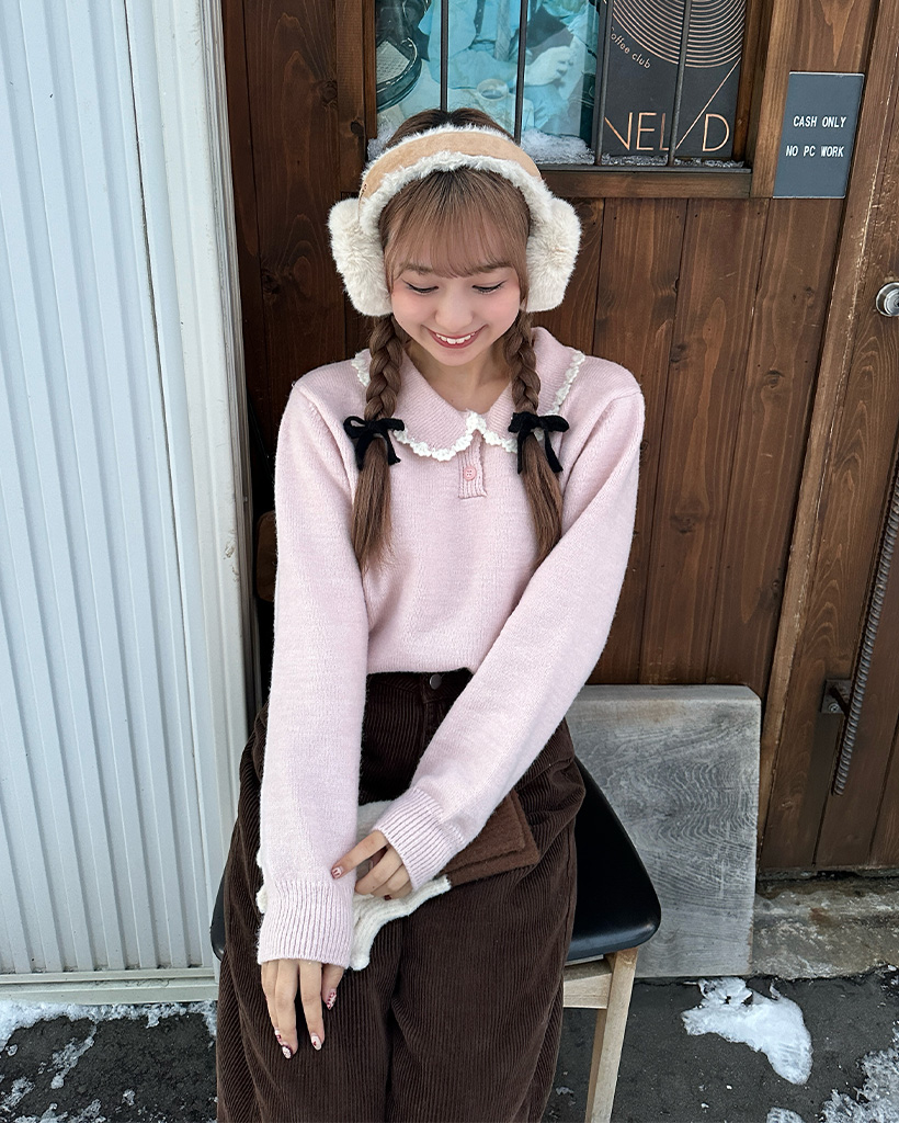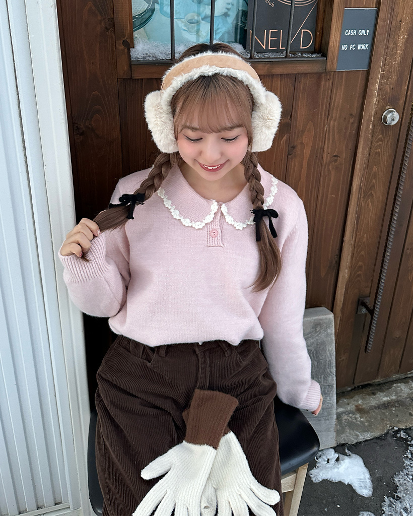 ネックレースポイントラウンドニット