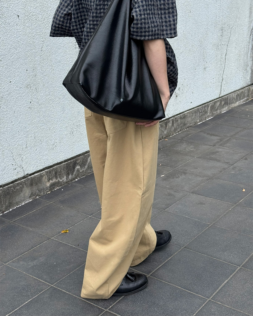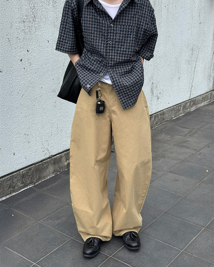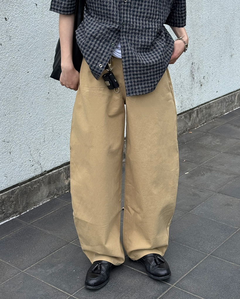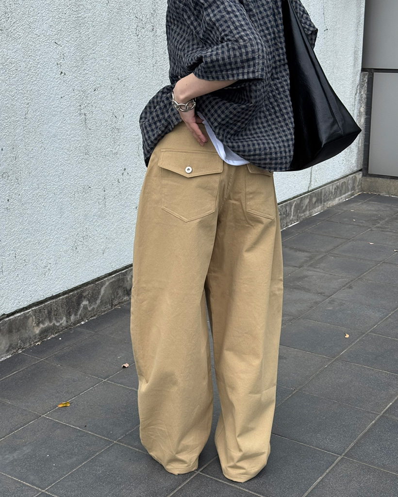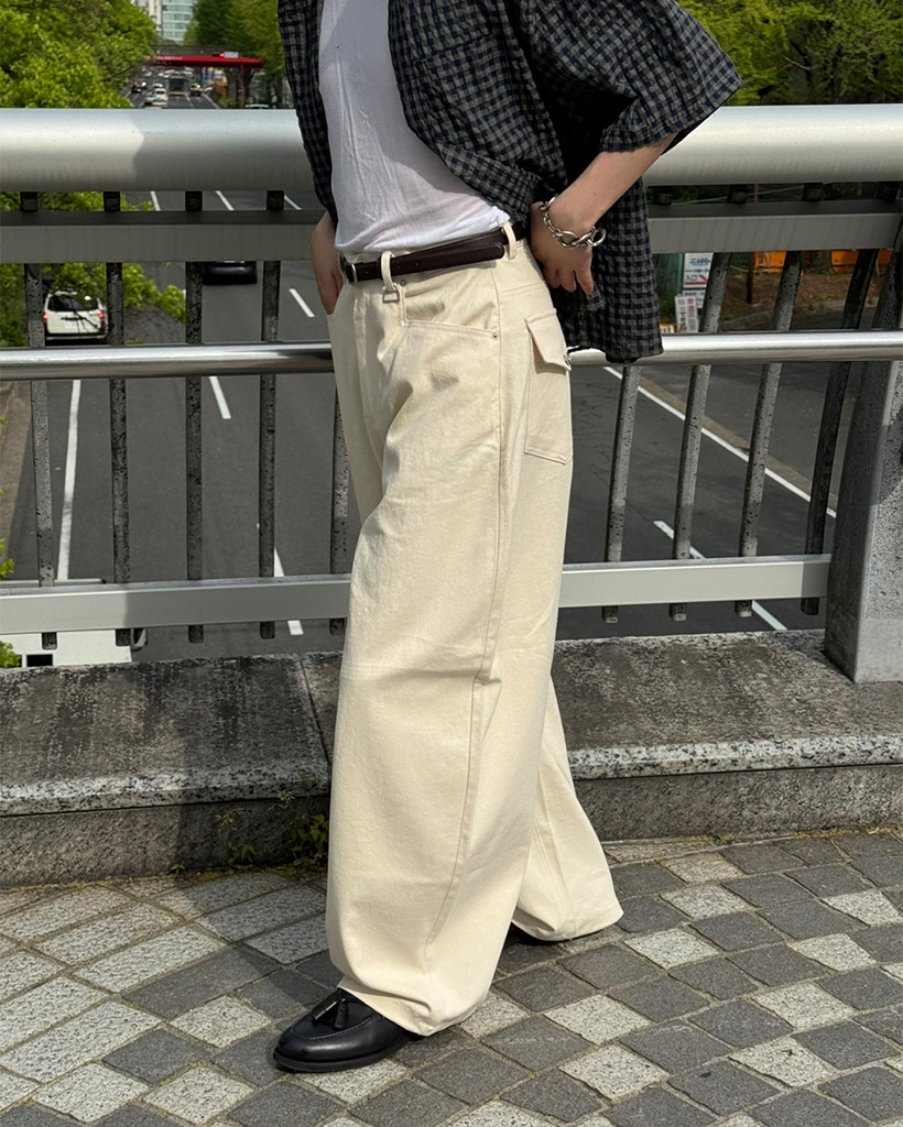 (ユニセックス)カーブドコットンワイドパンツ