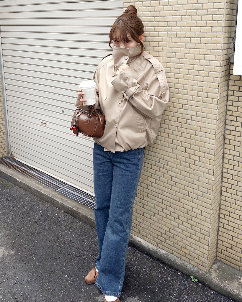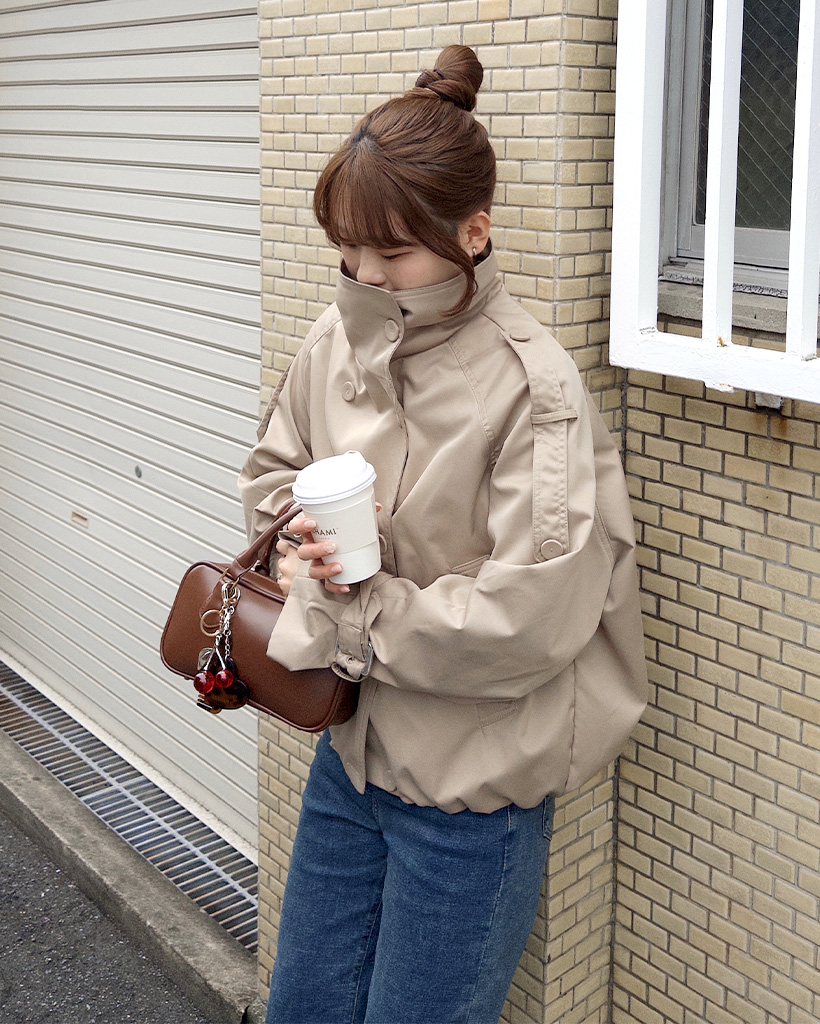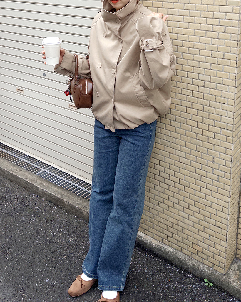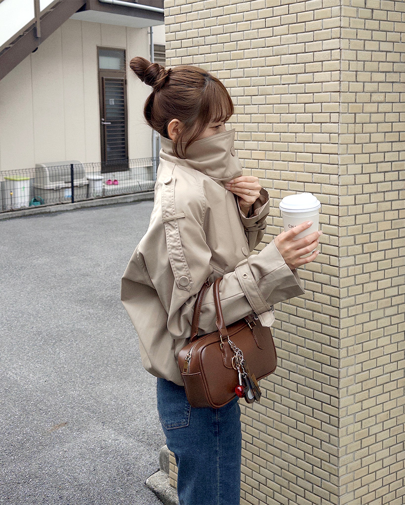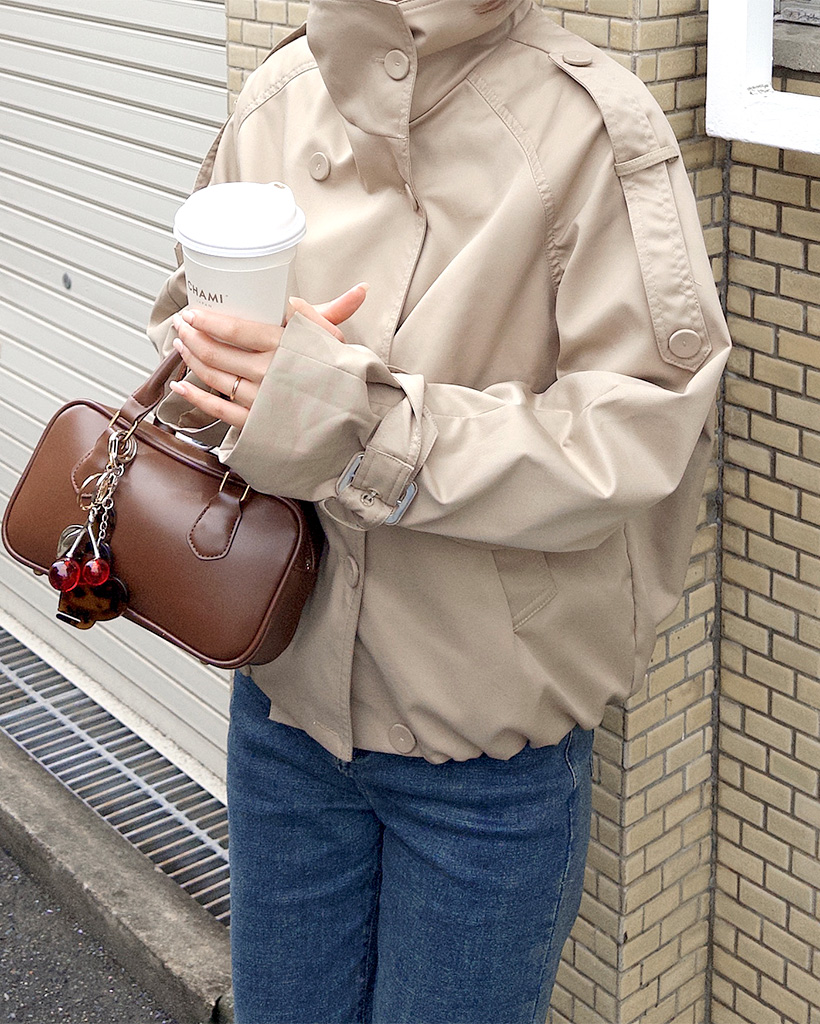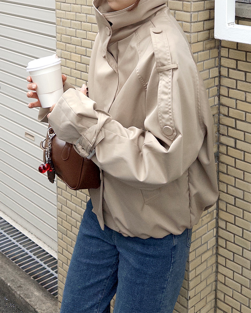 ハイネックダブルブタンハーフコート