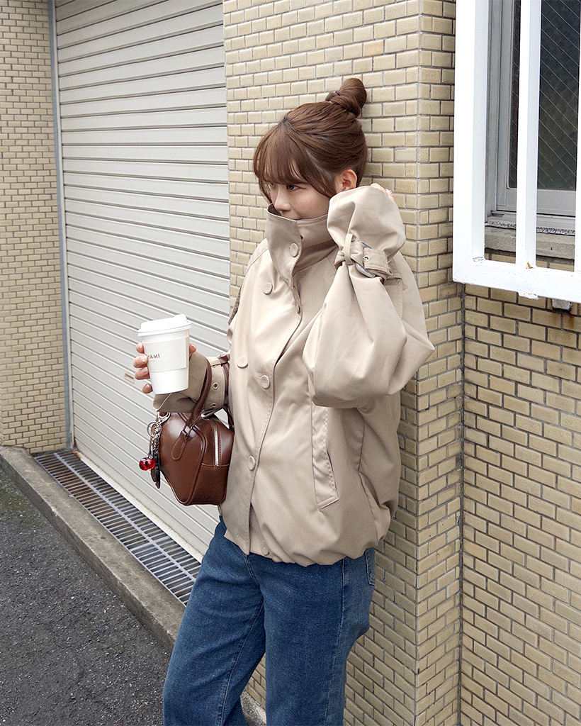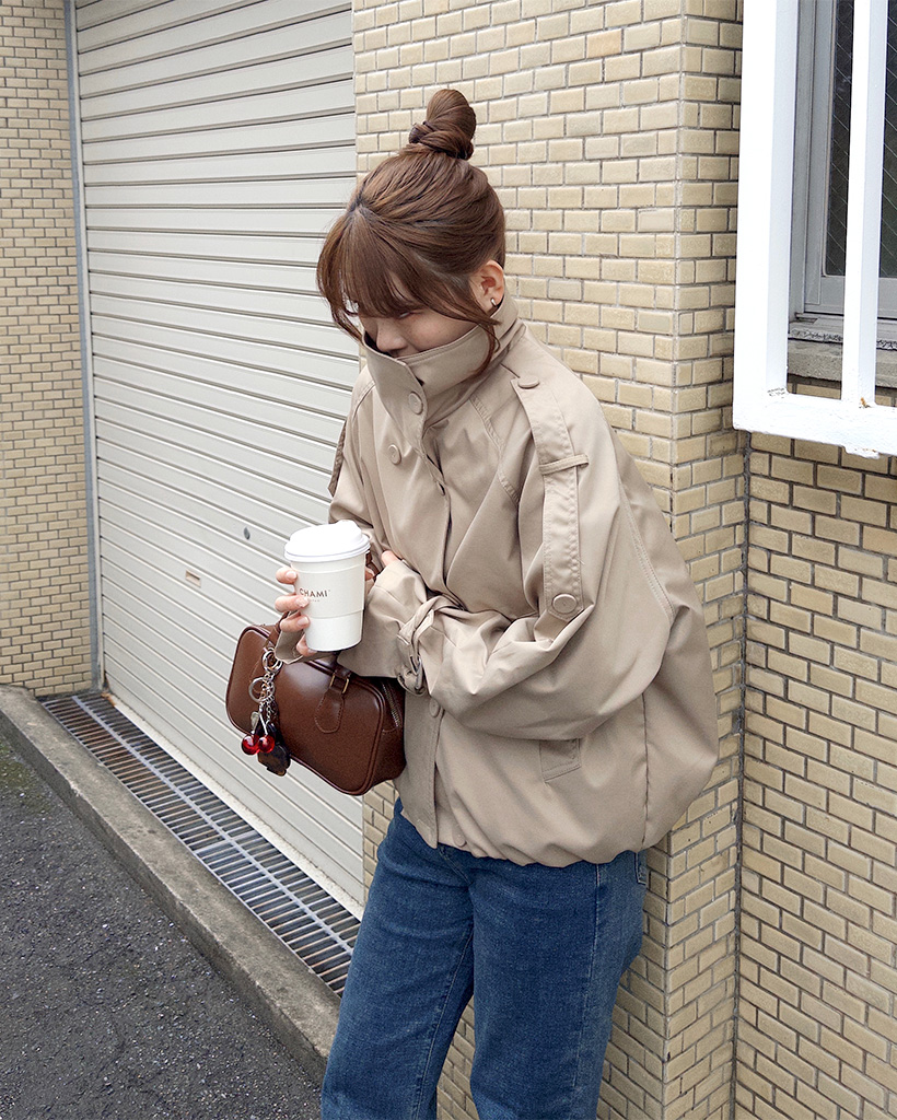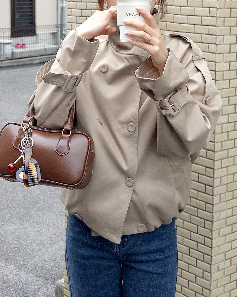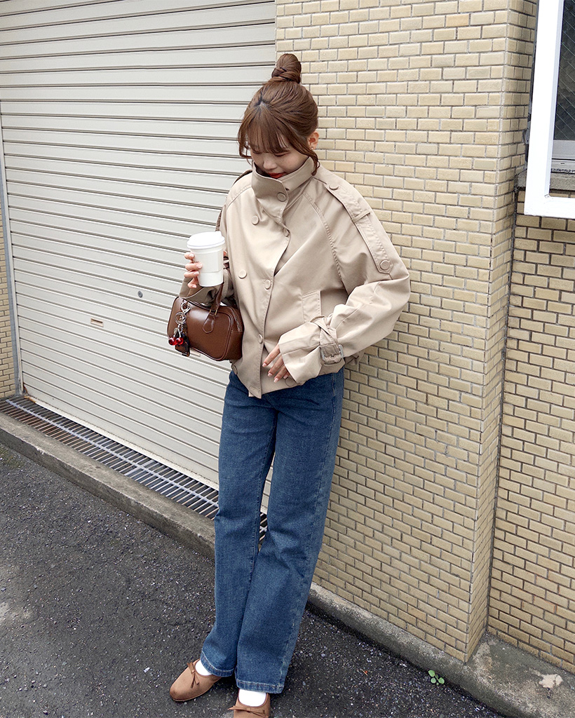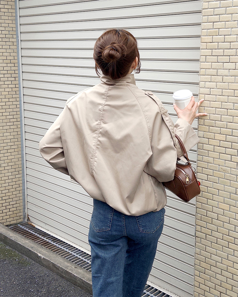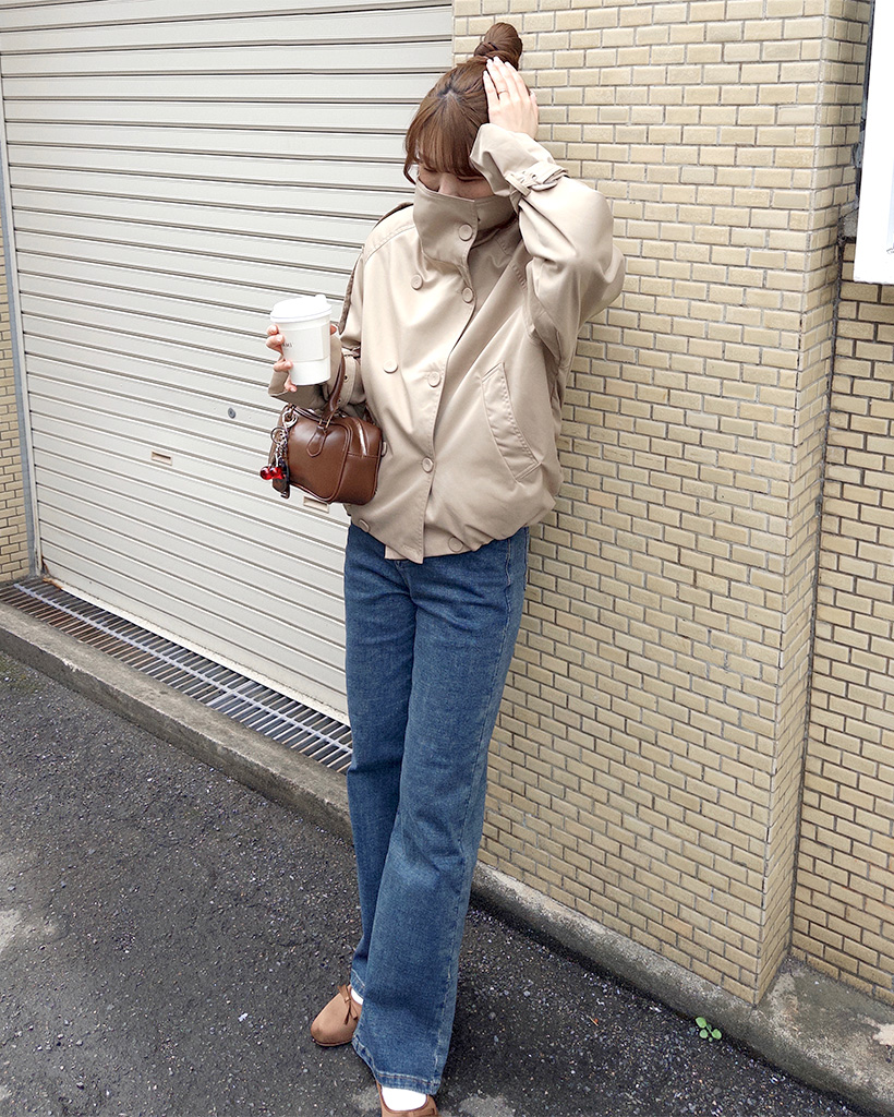 ハイネックダブルブタンハーフコート