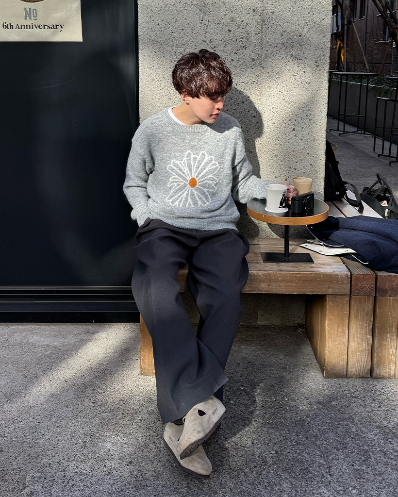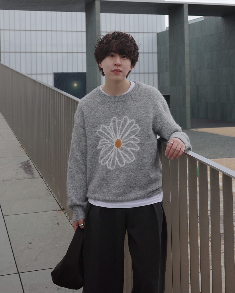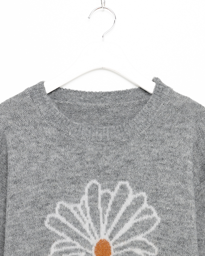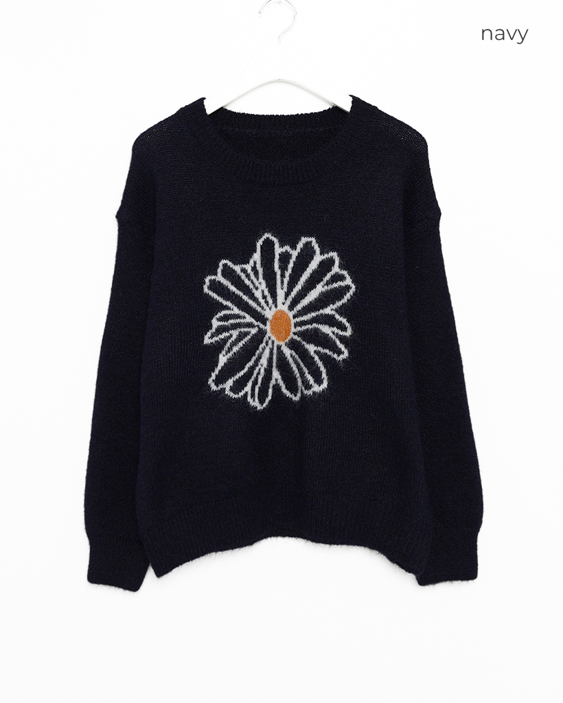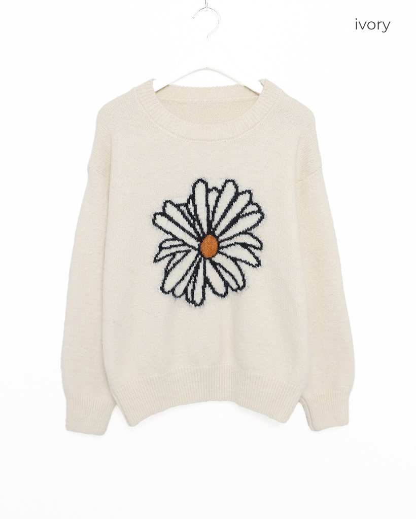 (ユニセックス)ビックデイジーフラワーパタンポイントニット