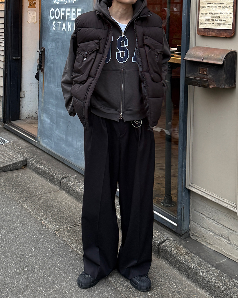 (ユニセックス)アンバランスバストポケットダウンベスト