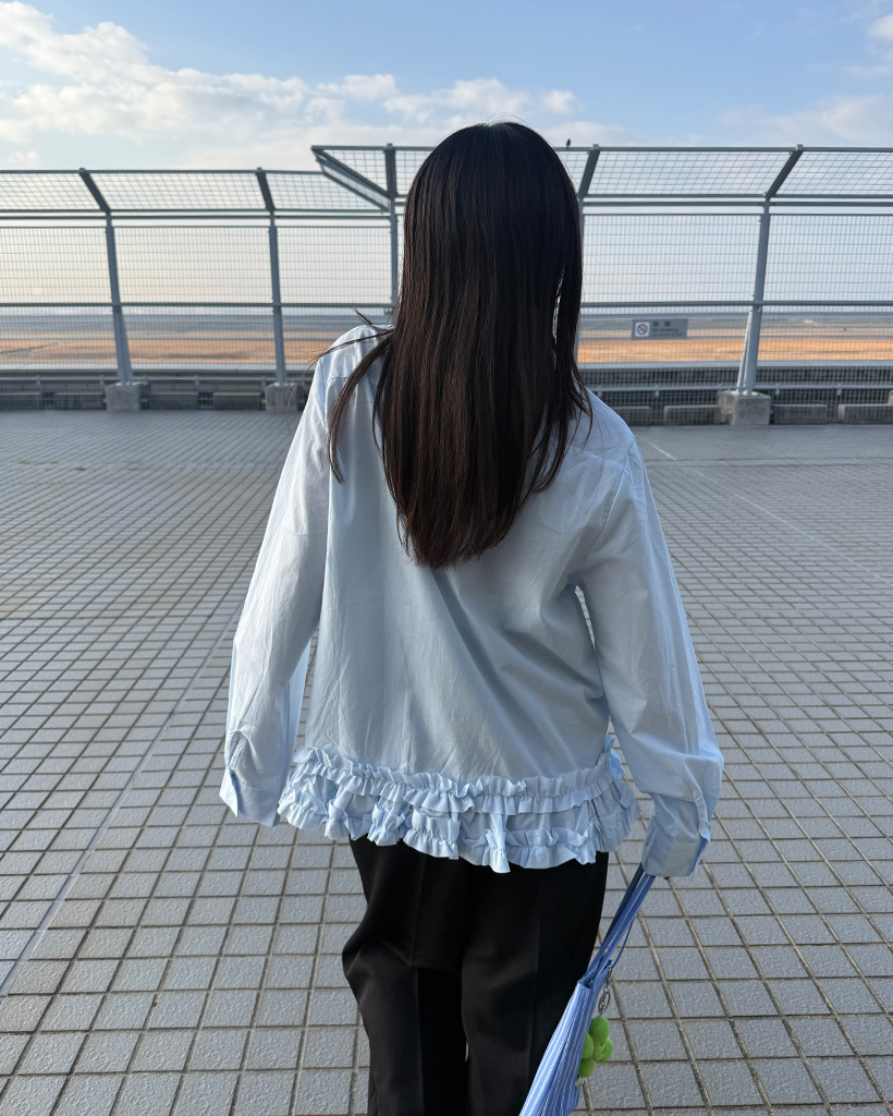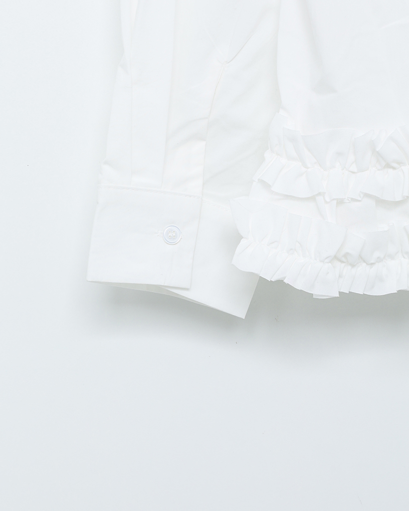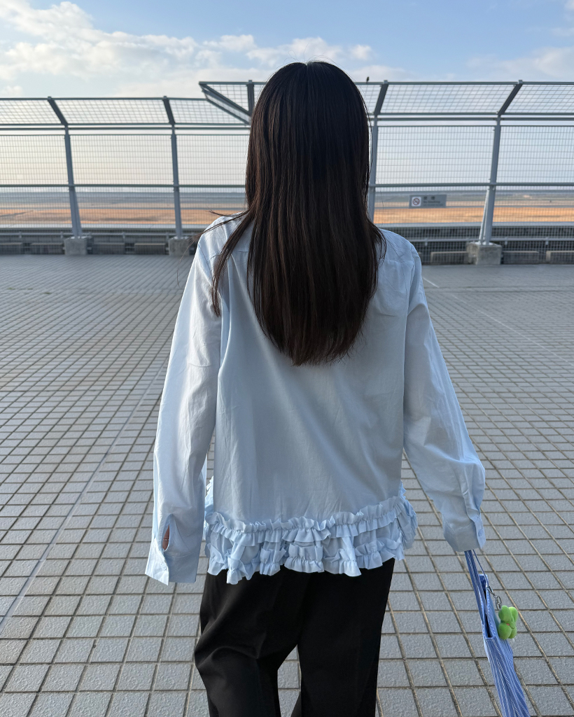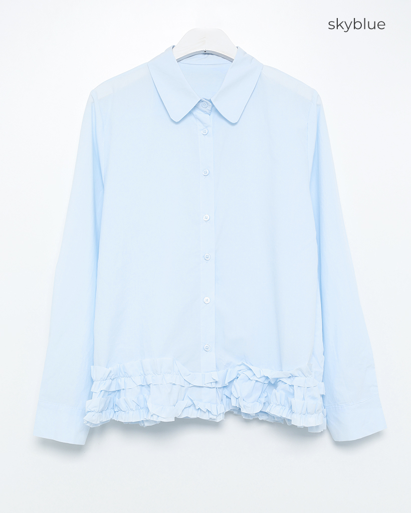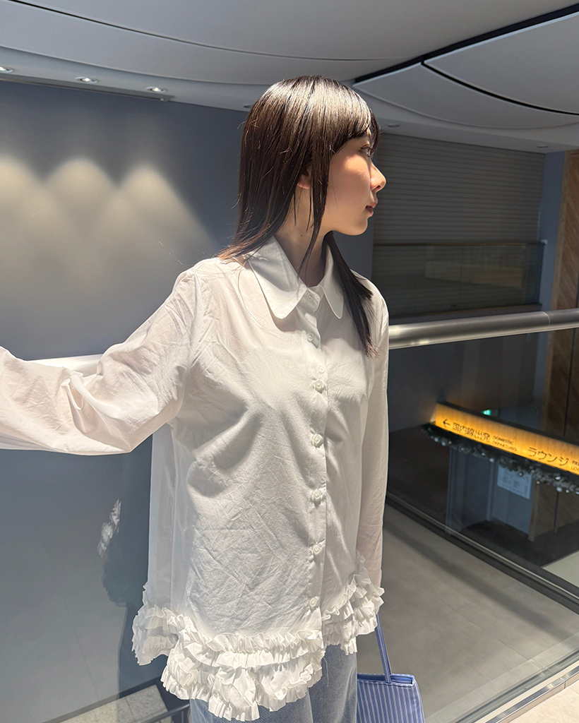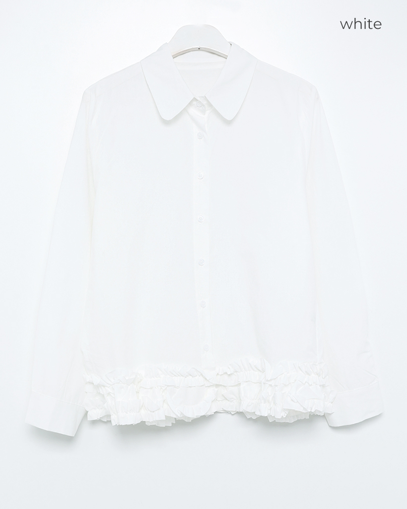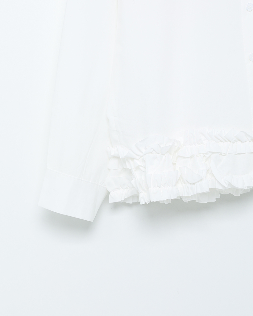 ダブルギャザーフリルヘムラウンドカラーシャツ