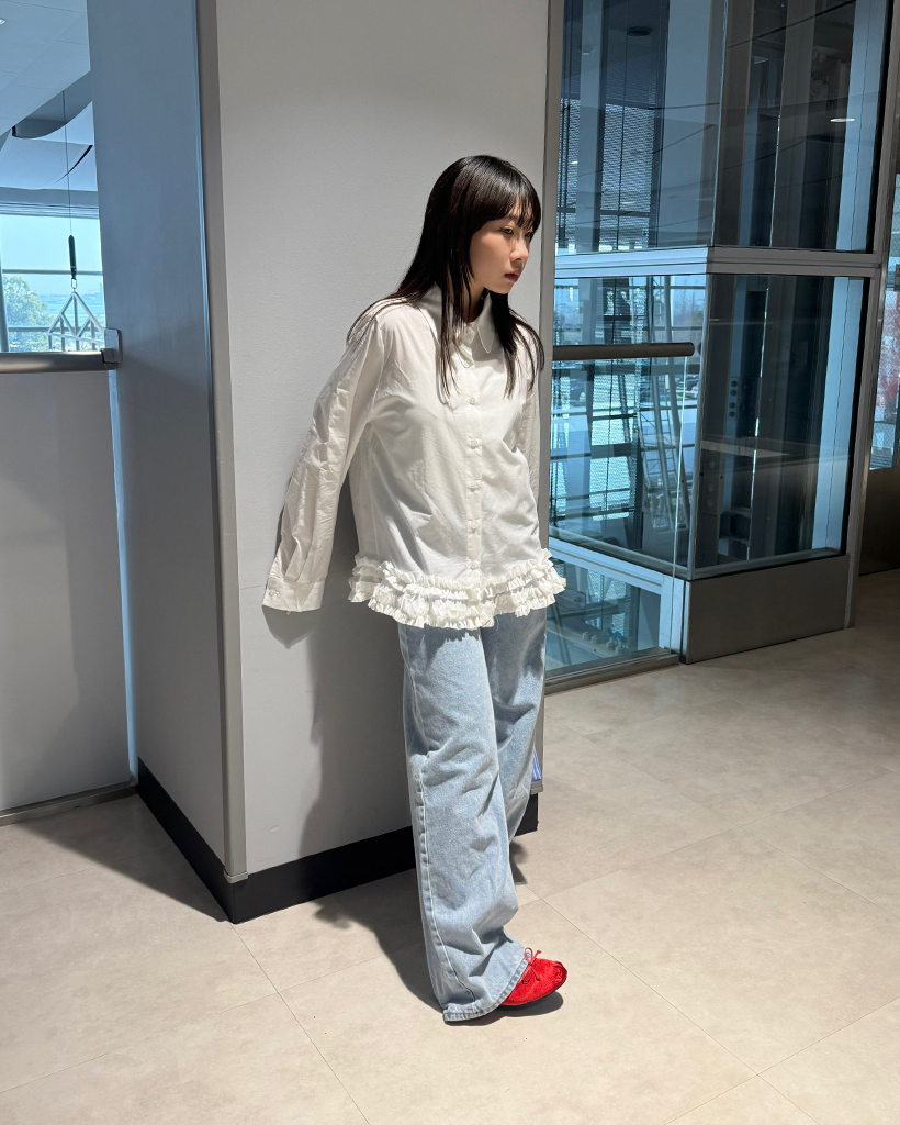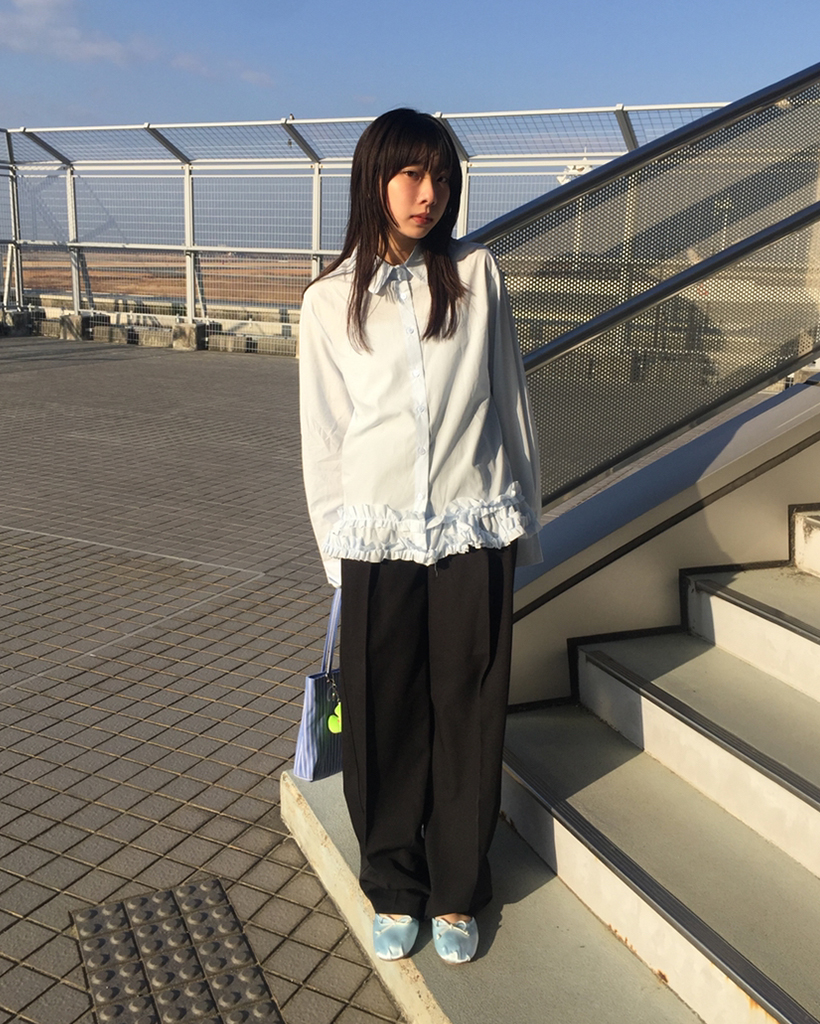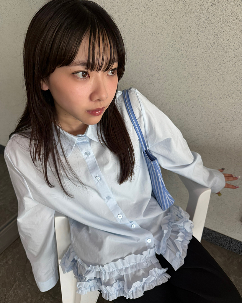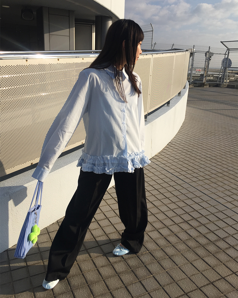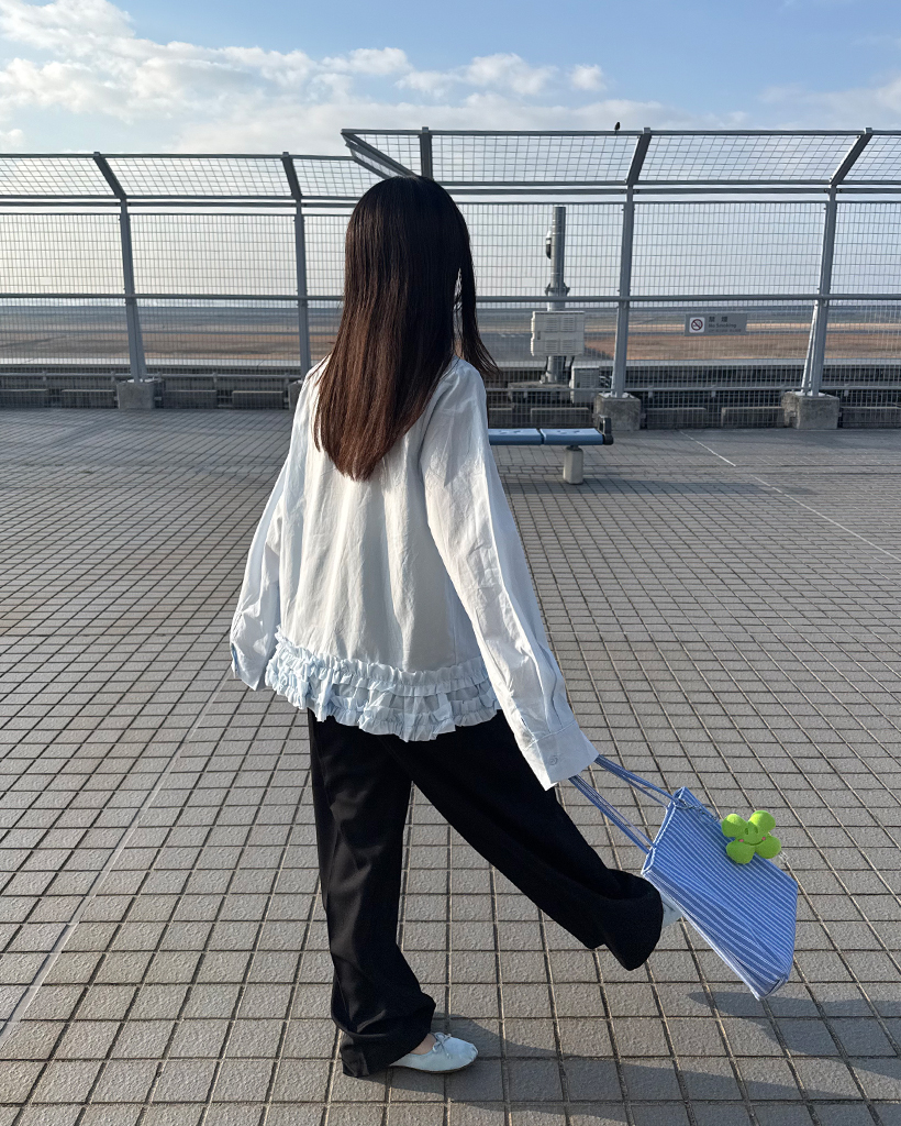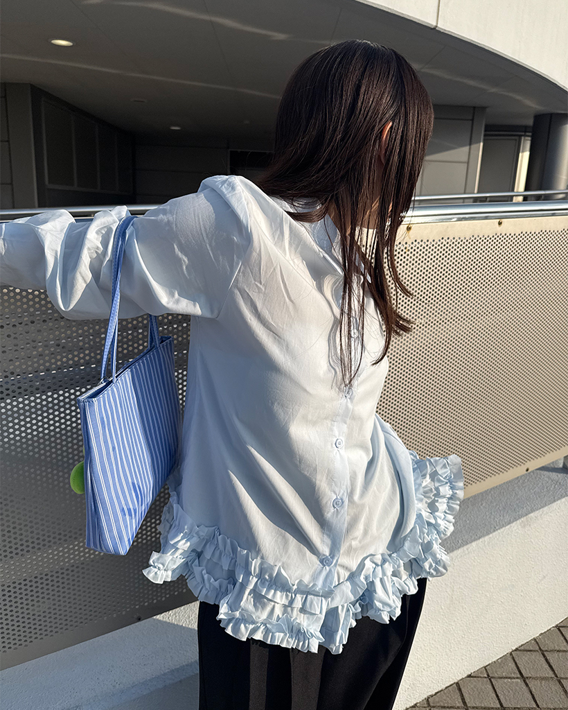 ダブルギャザーフリルヘムラウンドカラーシャツ