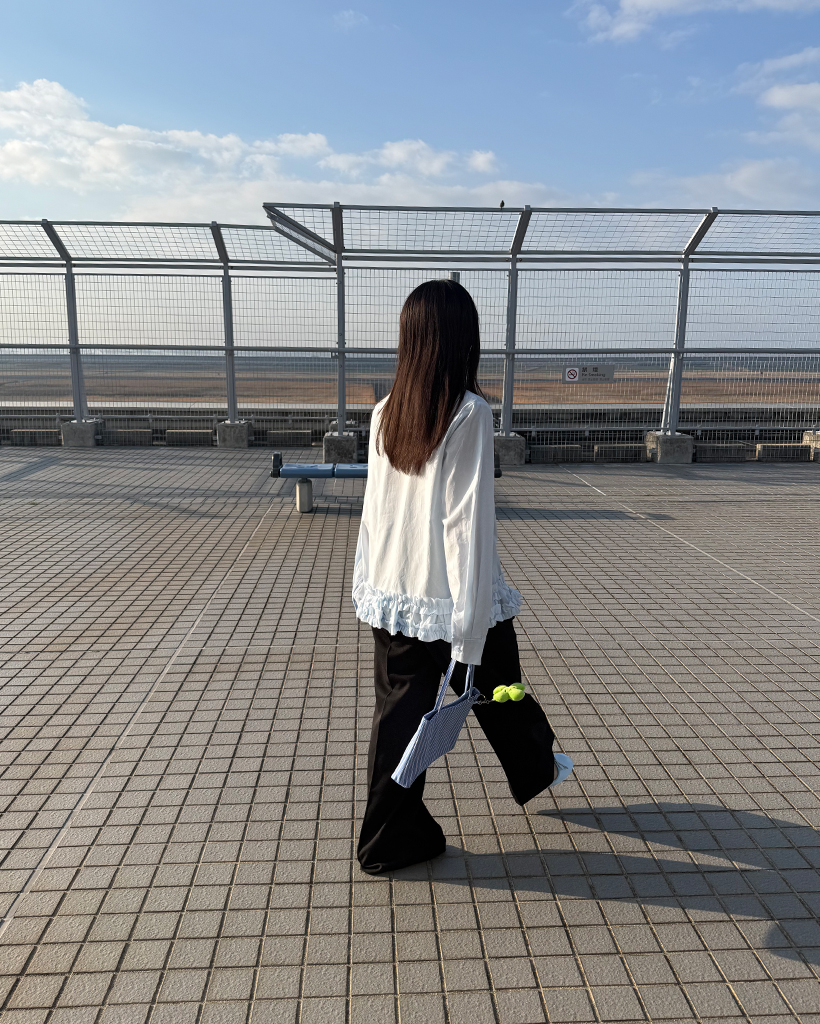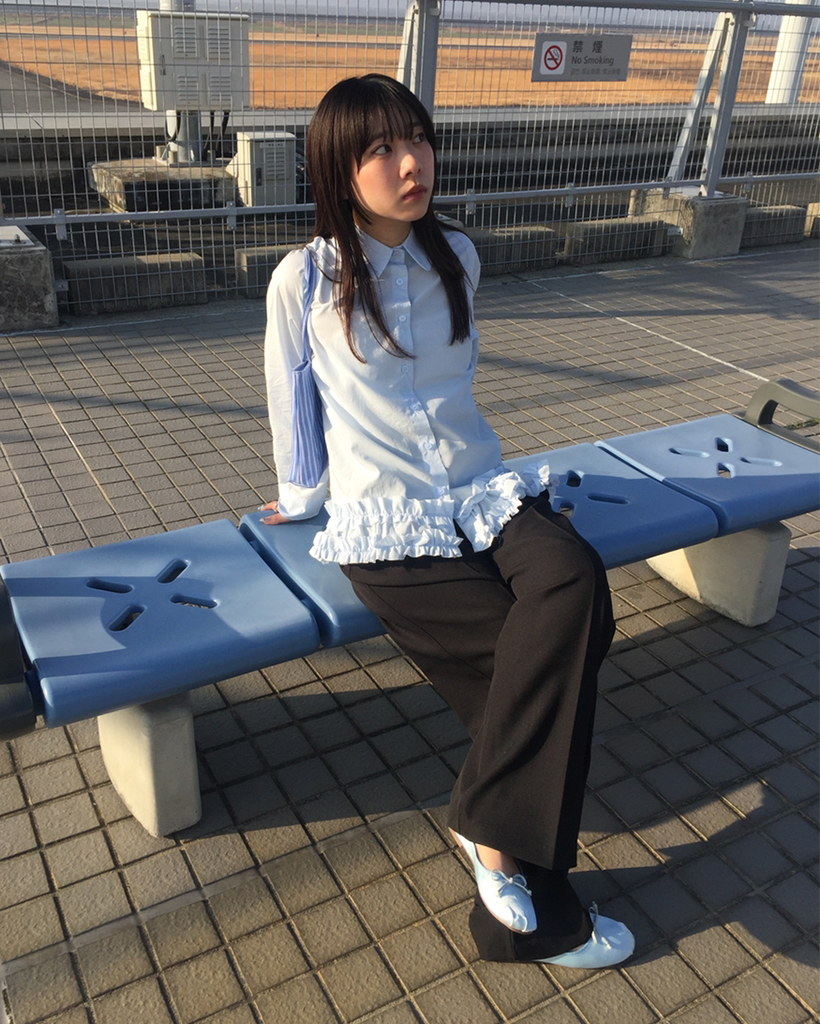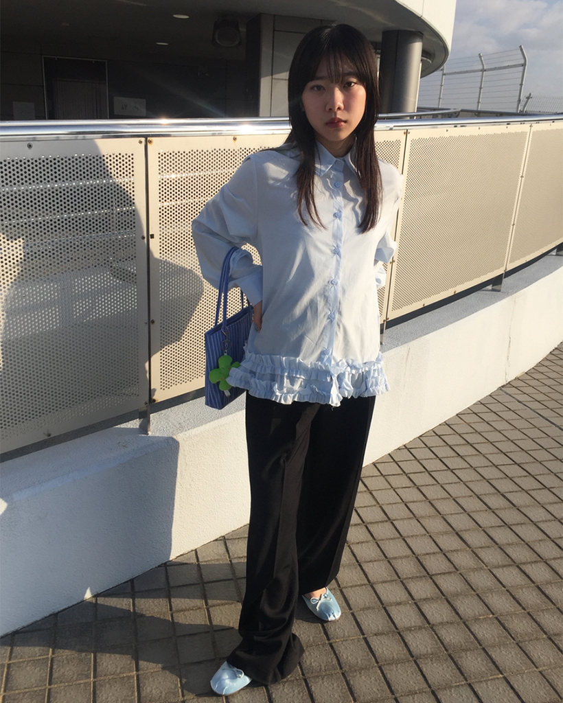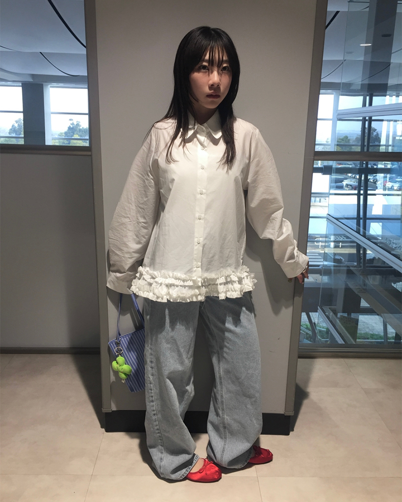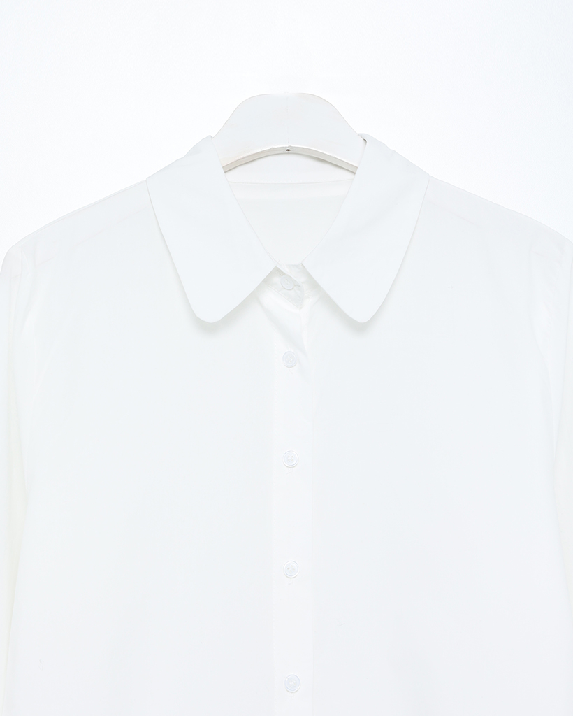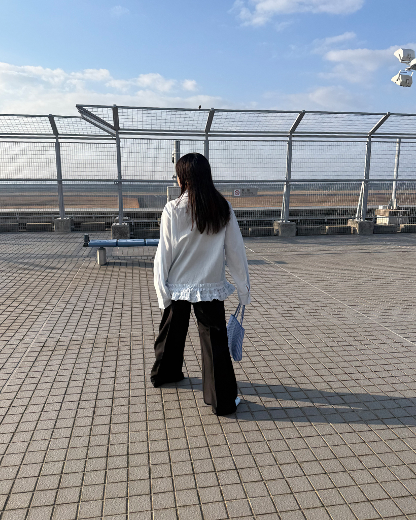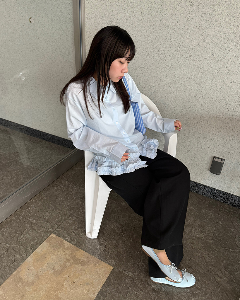 ダブルギャザーフリルヘムラウンドカラーシャツ