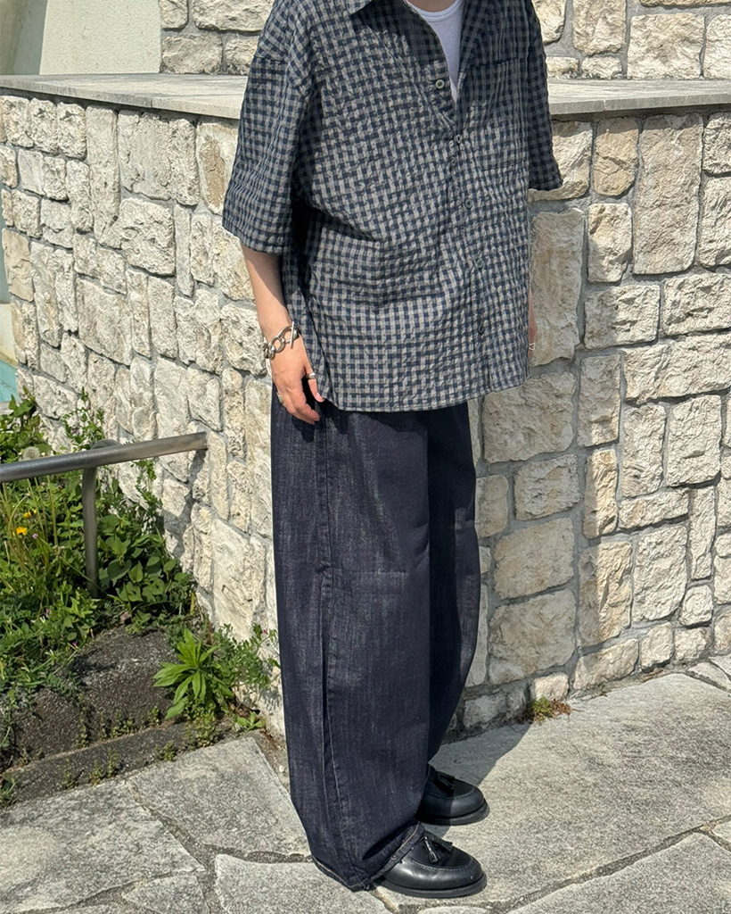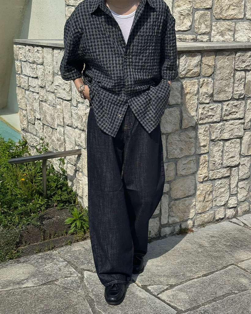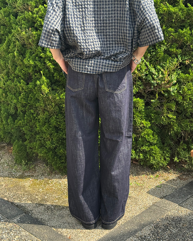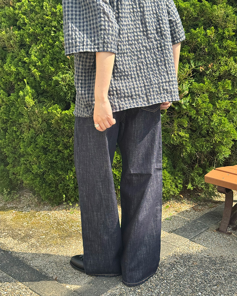 (ユニセックス)ノンフェードワイドローデニムパンツ