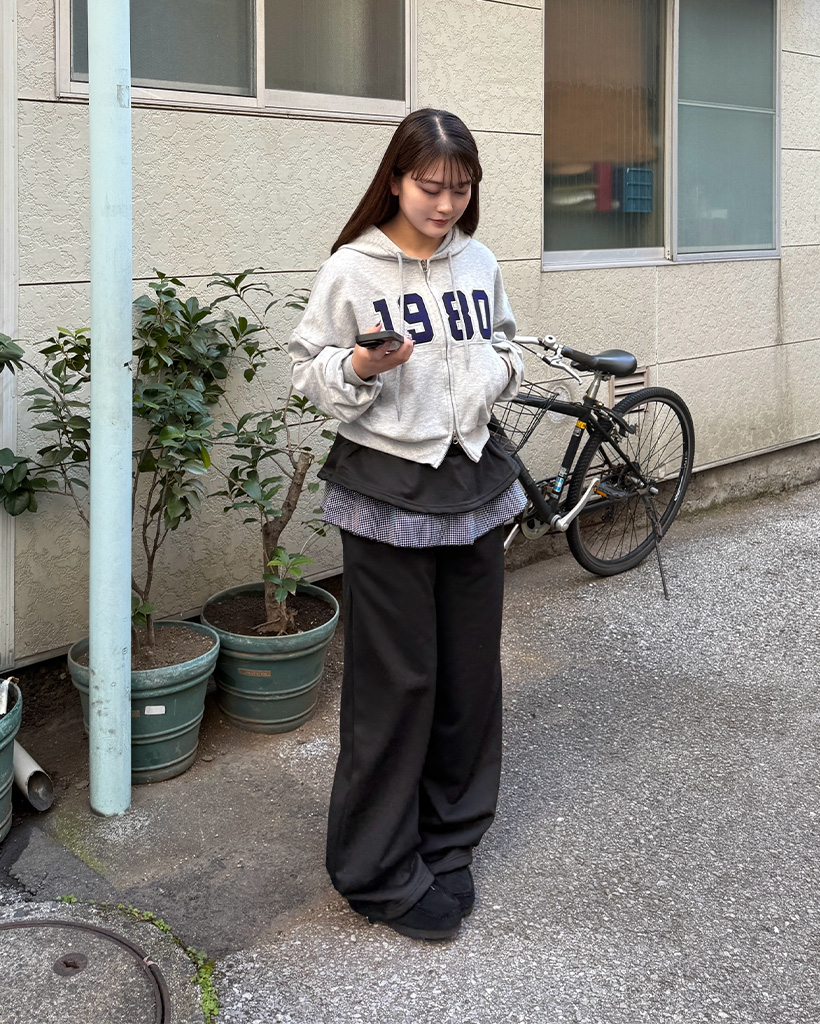 #マユ#157cm#ウェーブ#モノトーン#ユニセックス#カジュアル