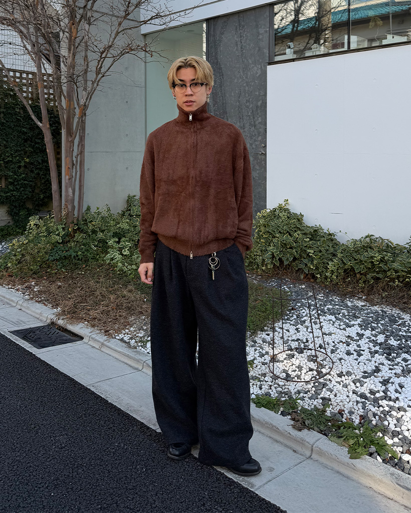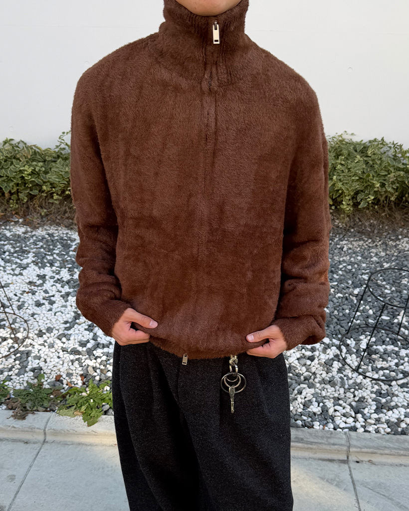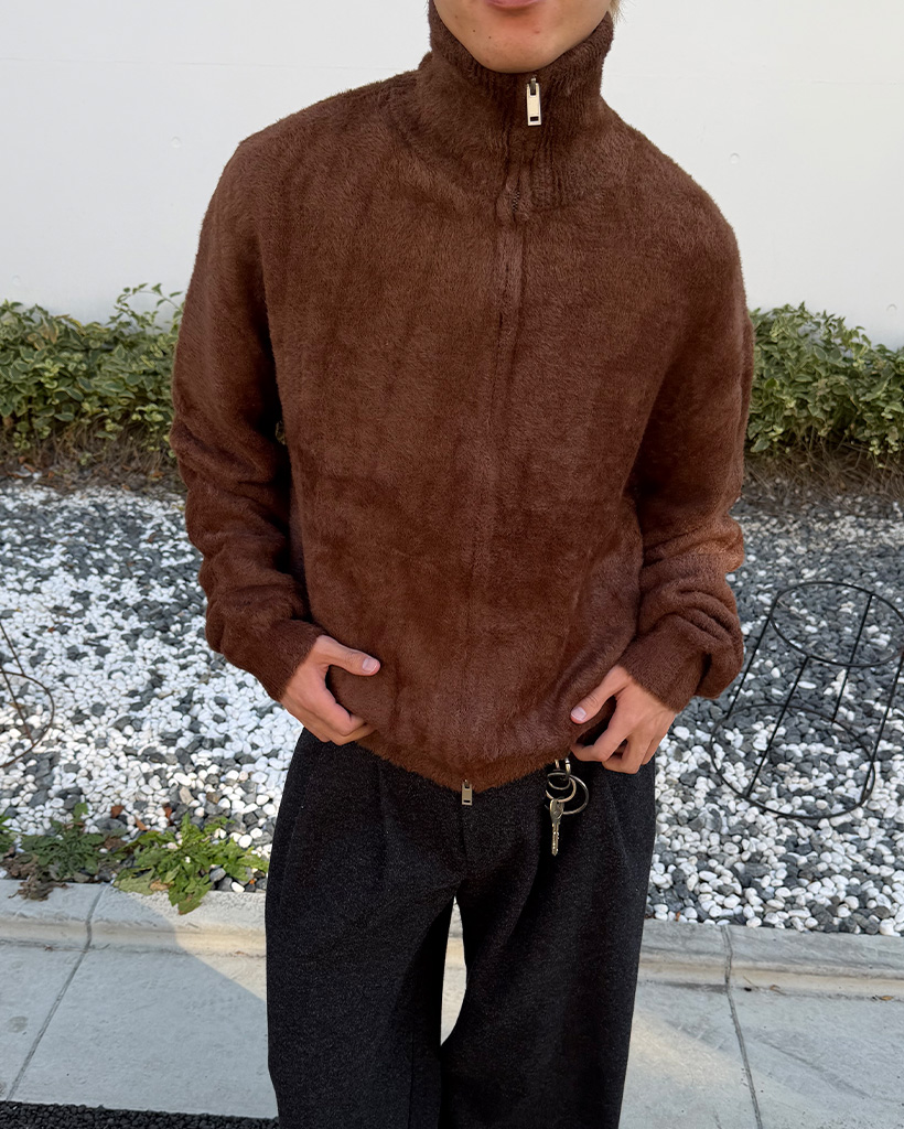 (ユニセックス)アンゴラファスナーカーディガン