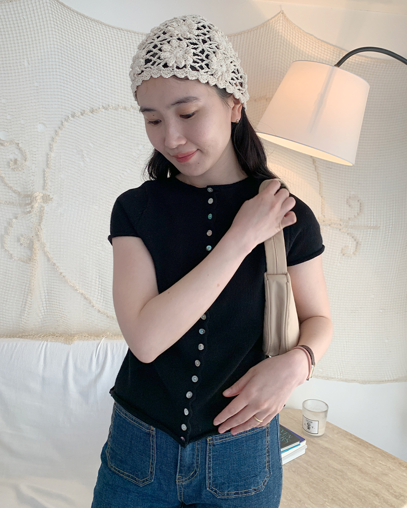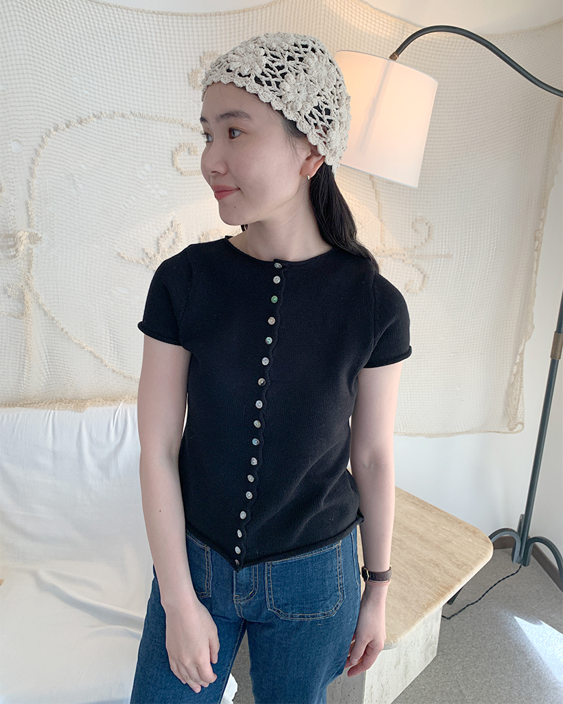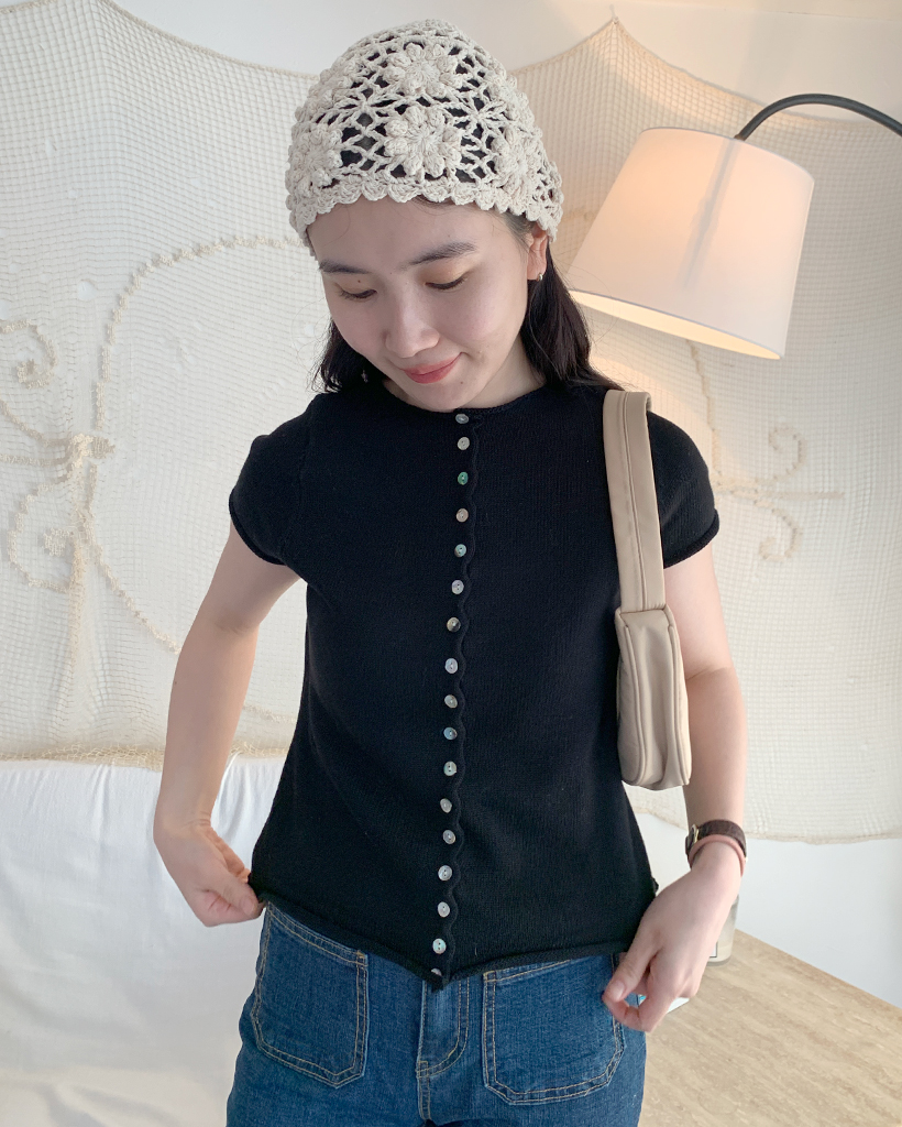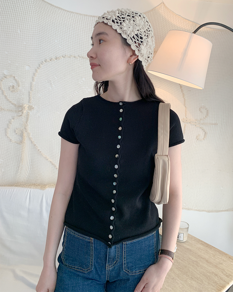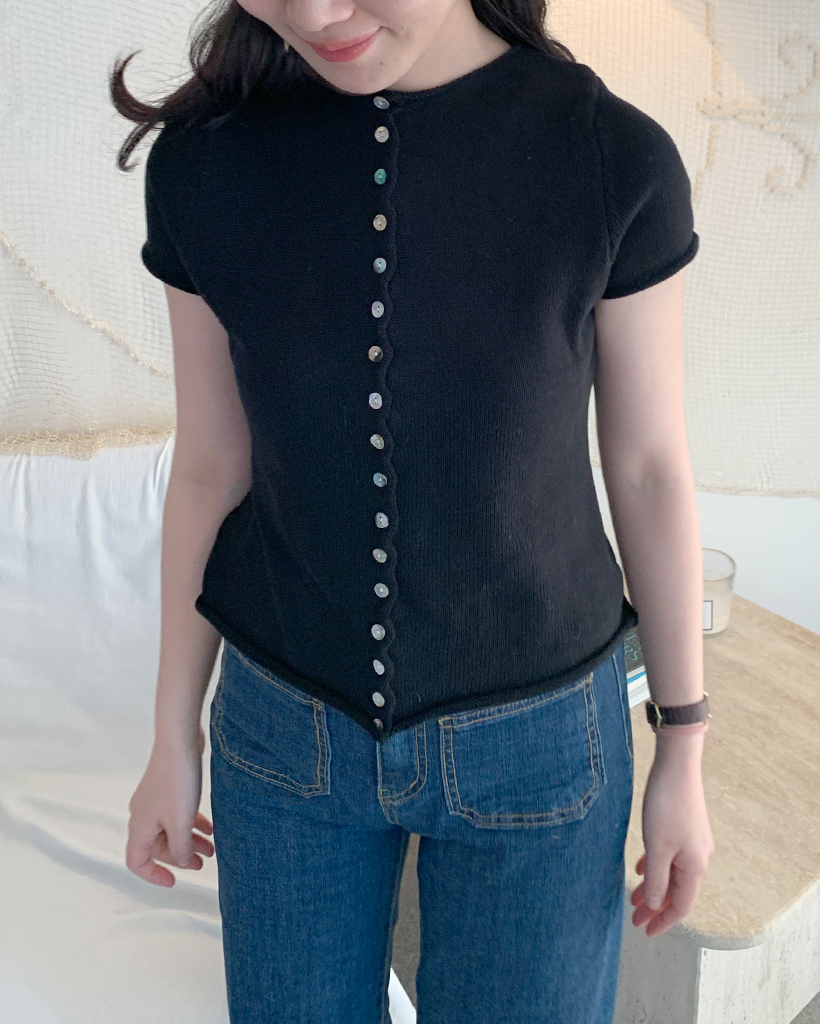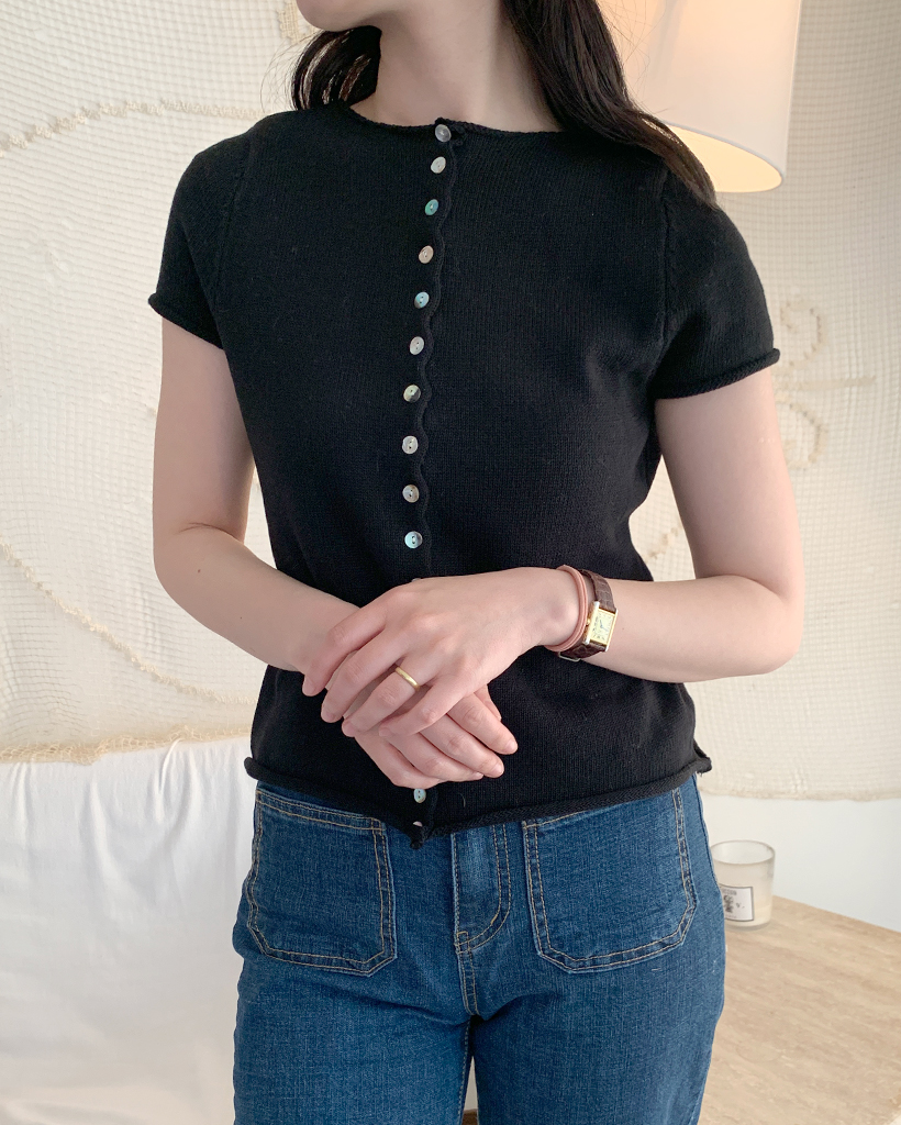 螺旋ボタンショートスリーブニットカーディガン