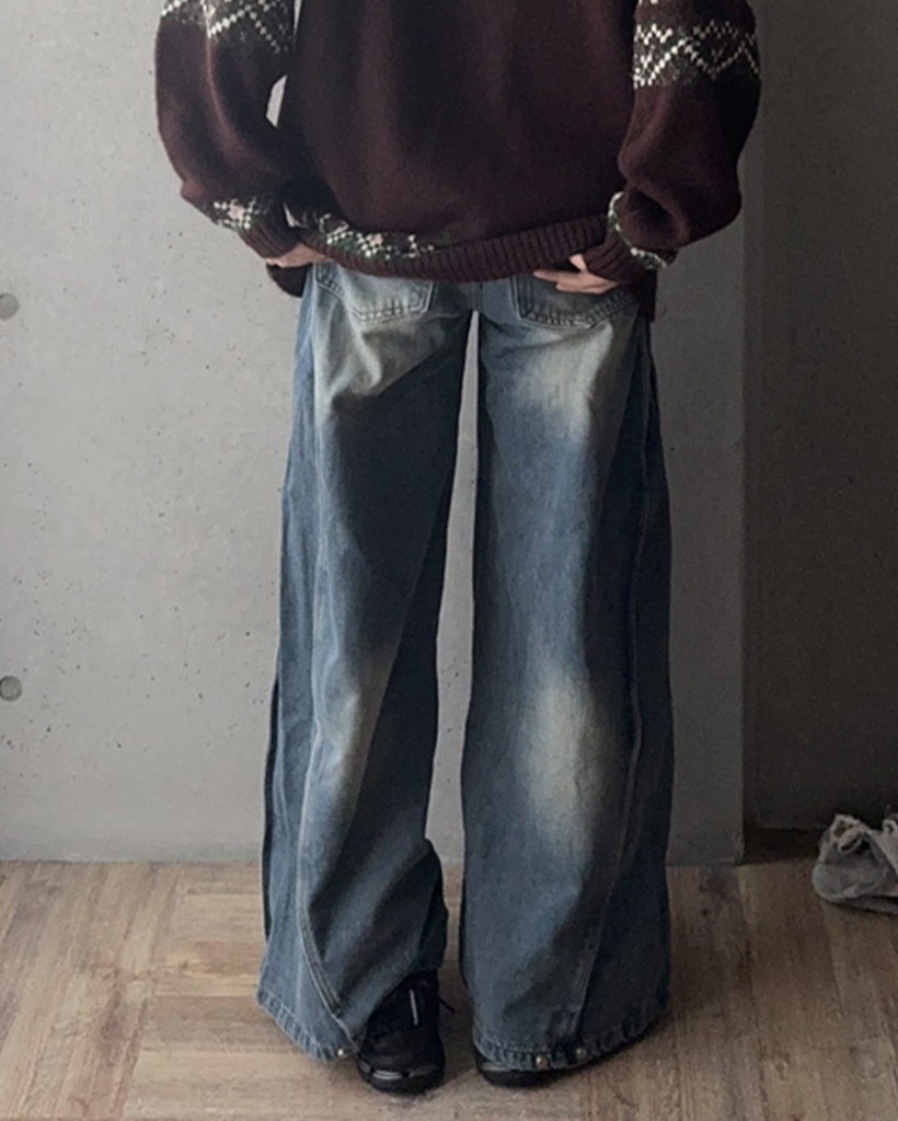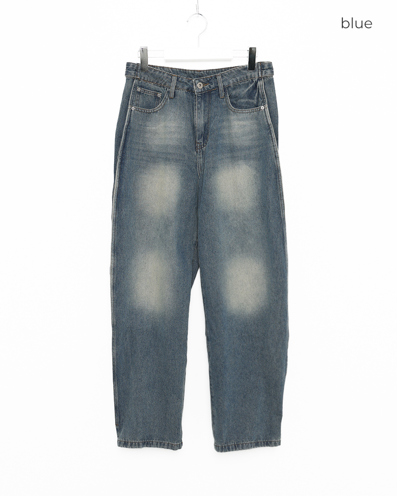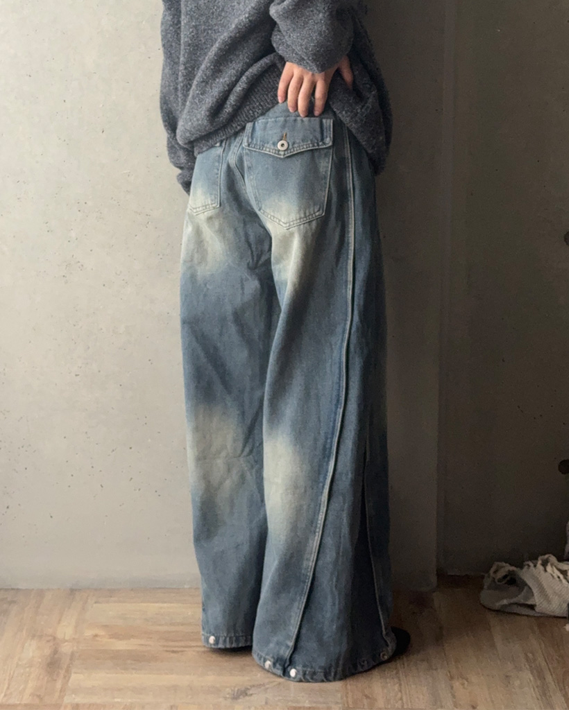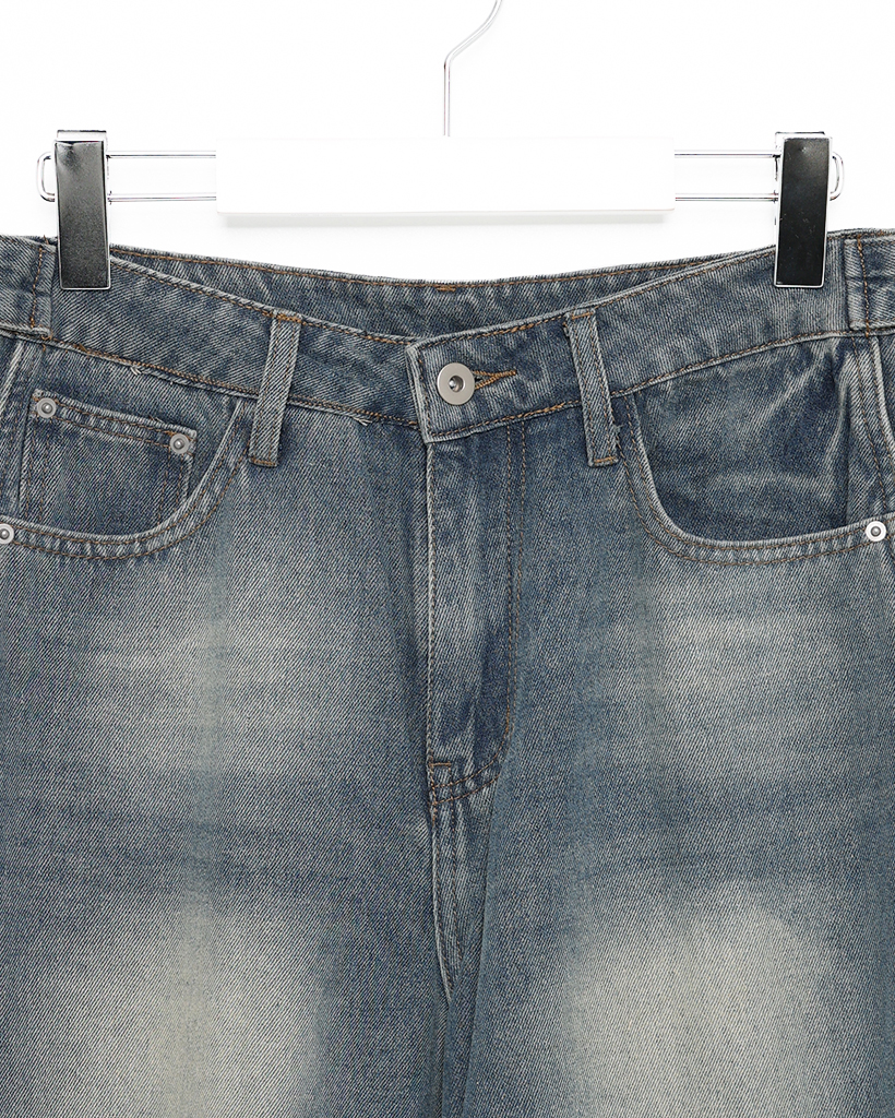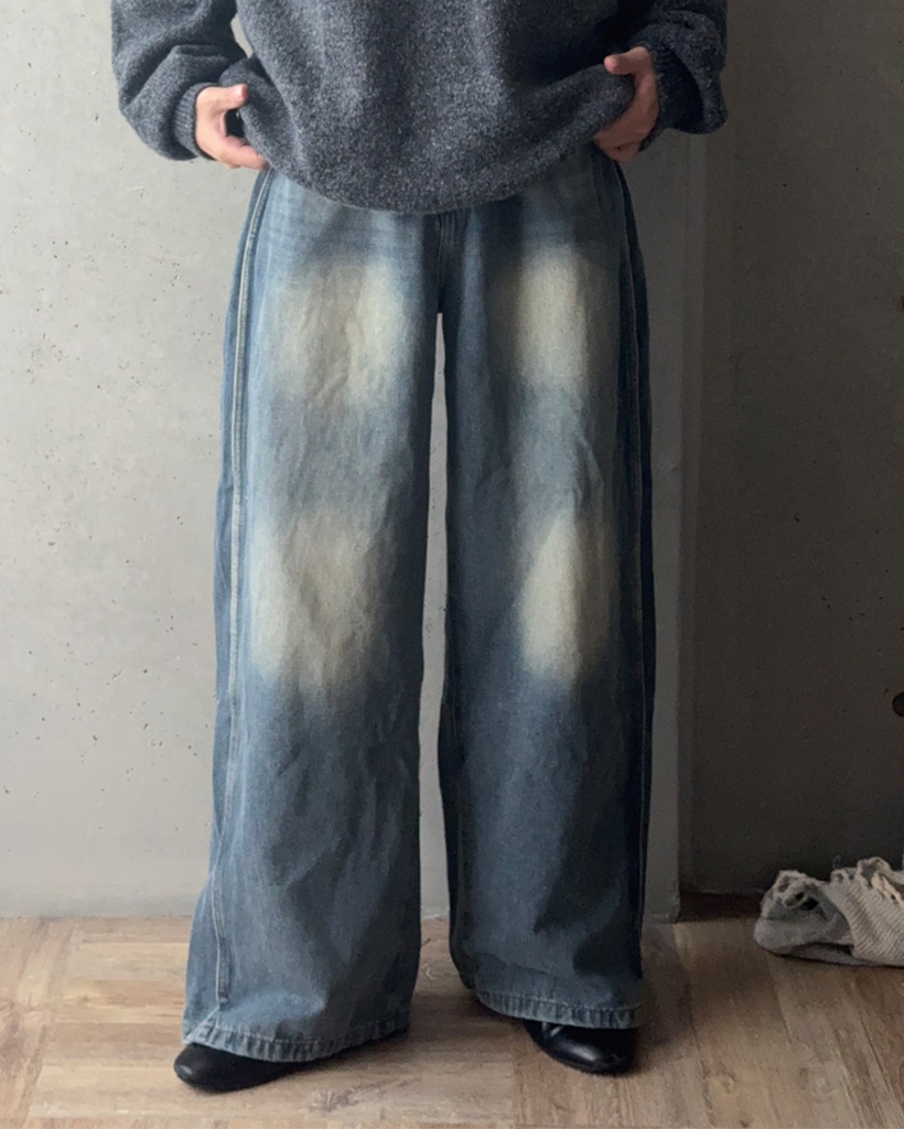 (ユニセックス)ヴィンテージウォッシュワイドデニムパンツ