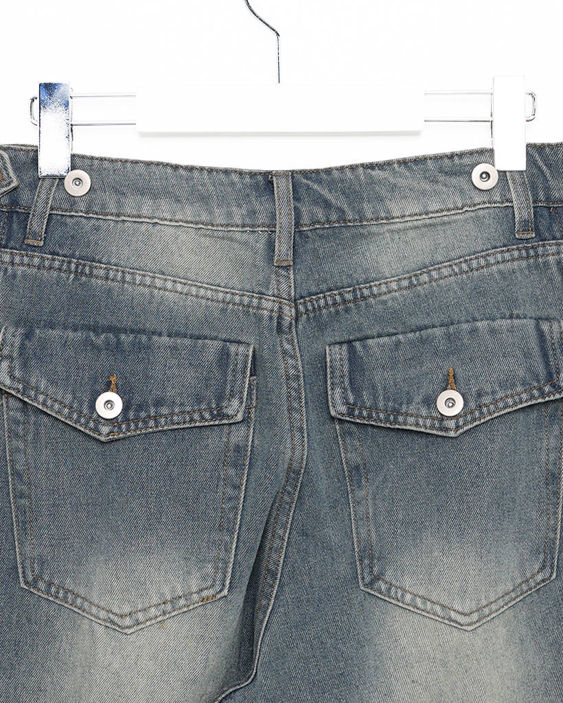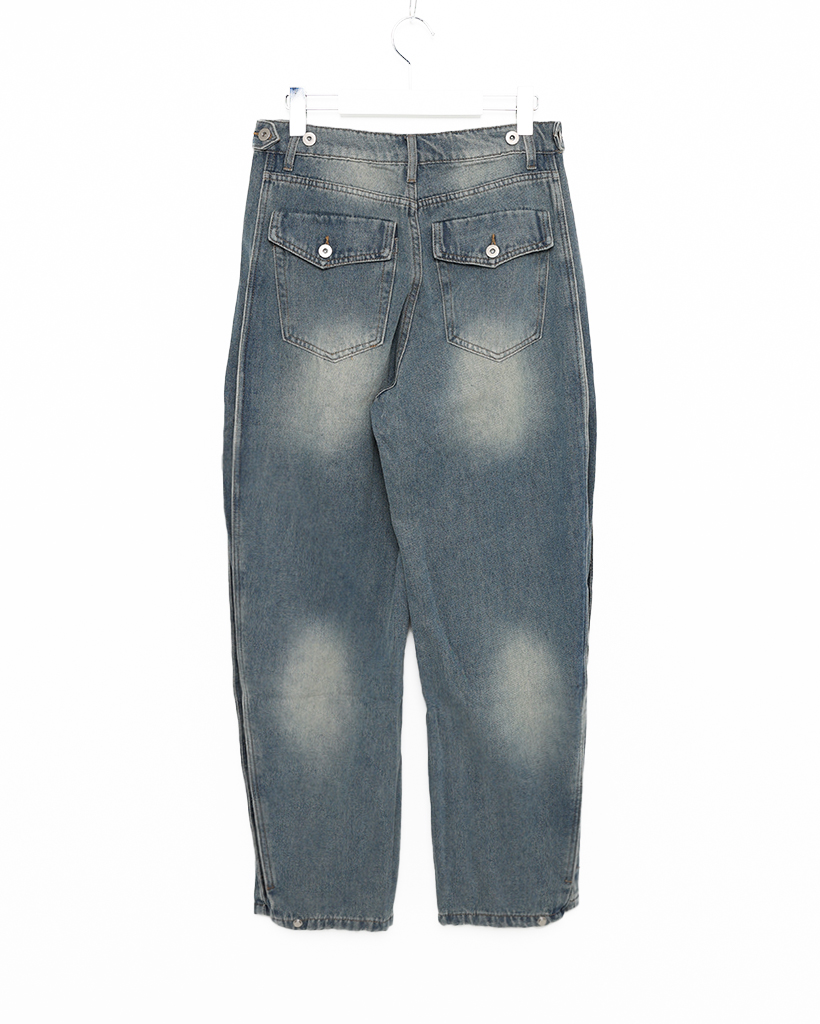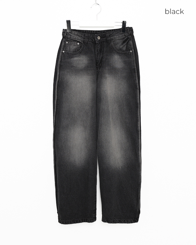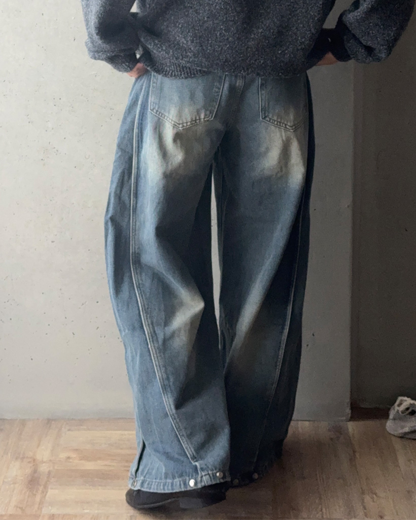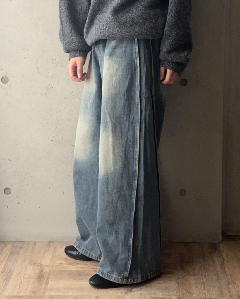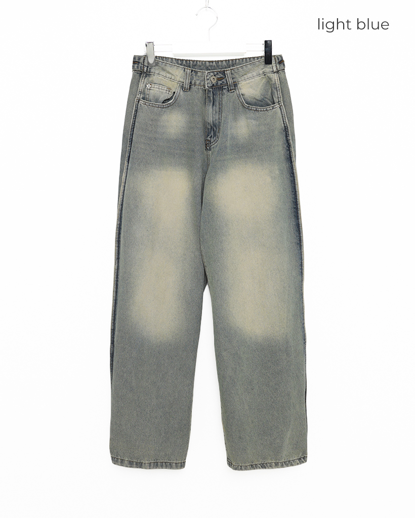 (ユニセックス)ヴィンテージウォッシュワイドデニムパンツ