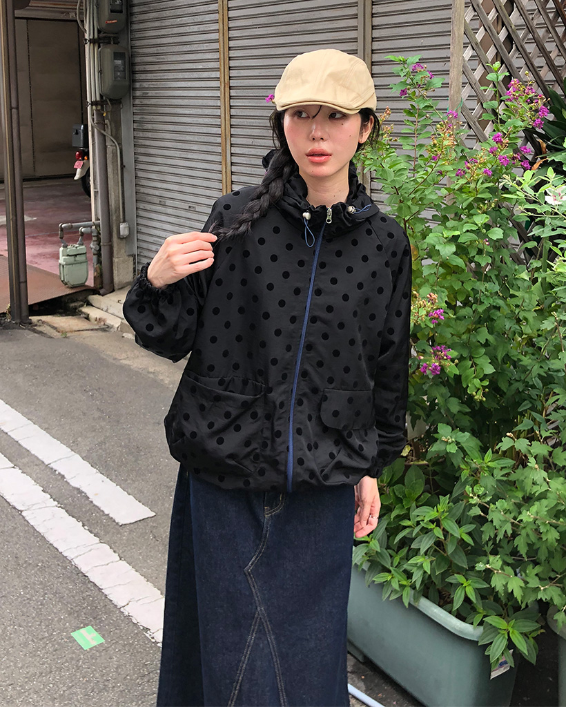 [OHESHIO X sep19] dot frill hooded windbreaker jumper (black)
