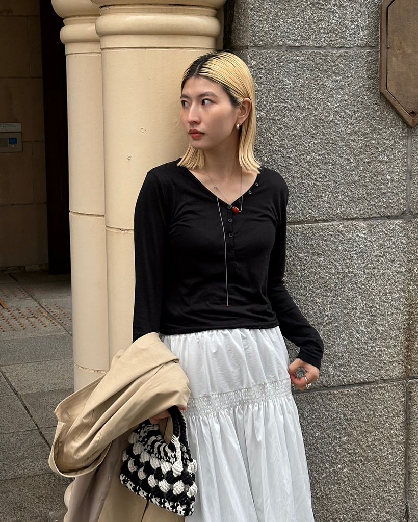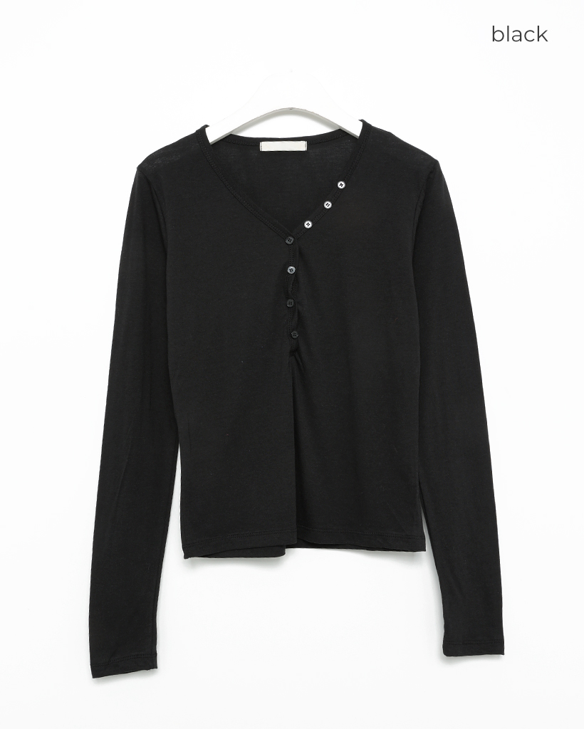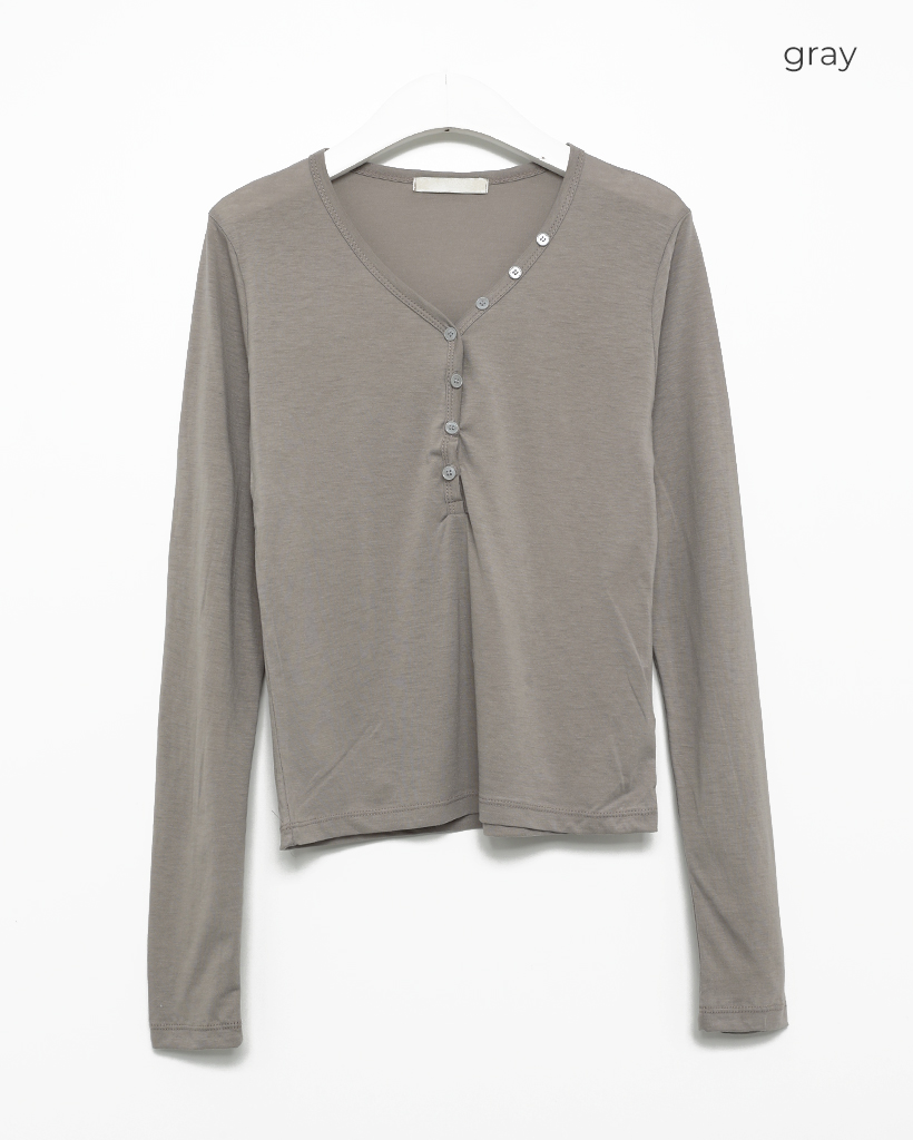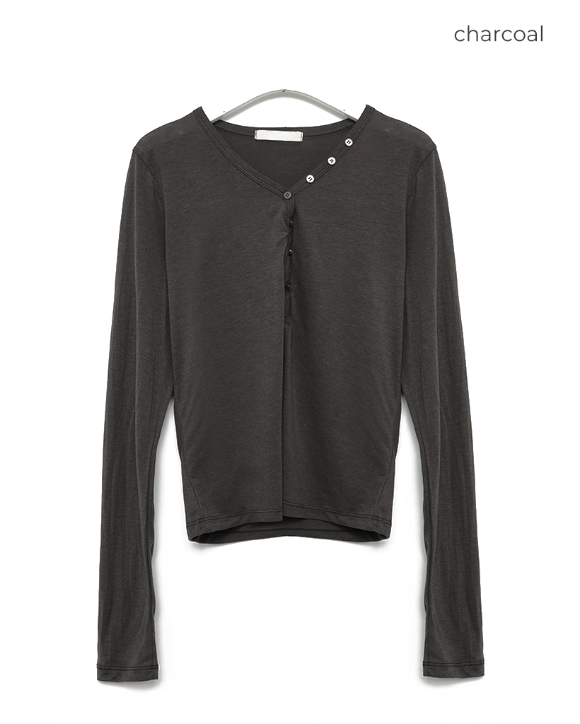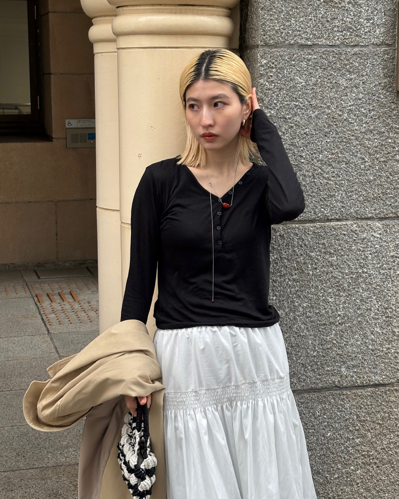 ユニークボタンヘンリーネックテンセルロングTシャツ