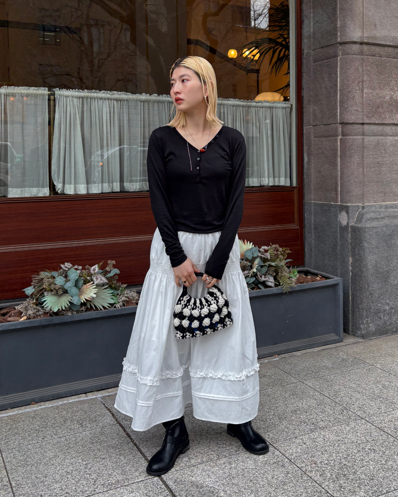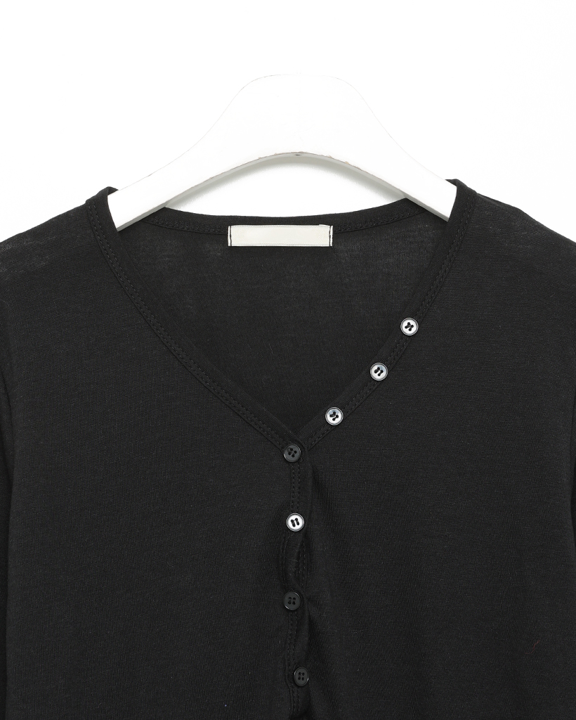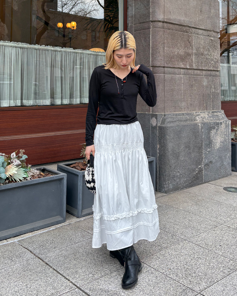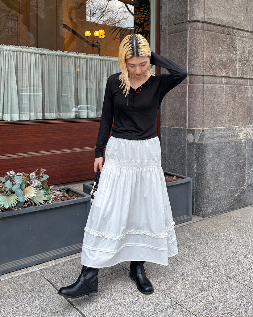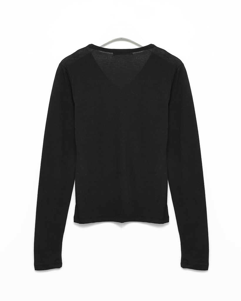 ユニークボタンヘンリーネックテンセルロングTシャツ