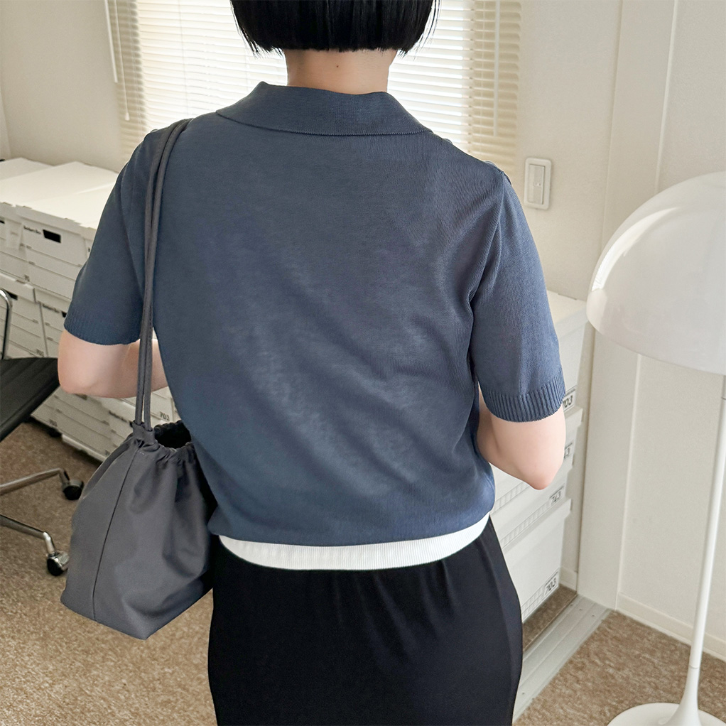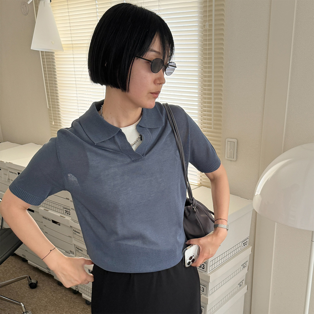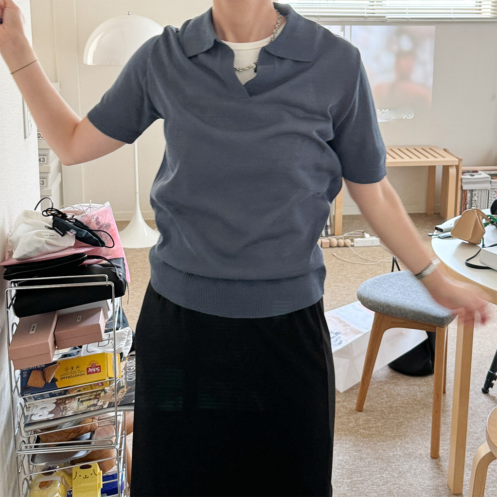 オープンカラーショートスリーブニット