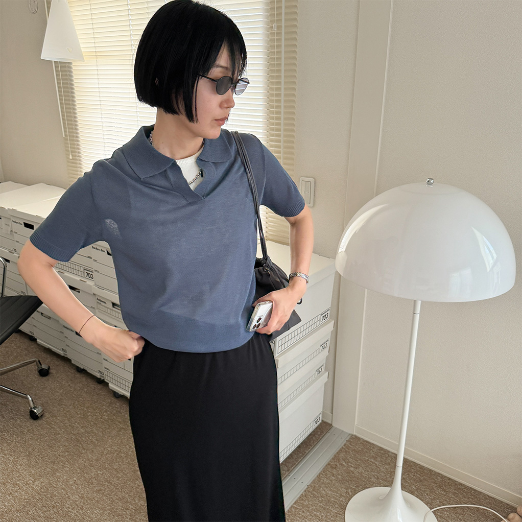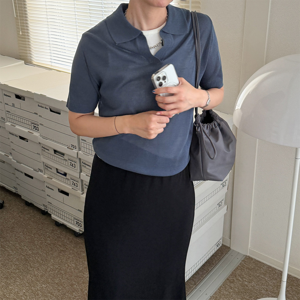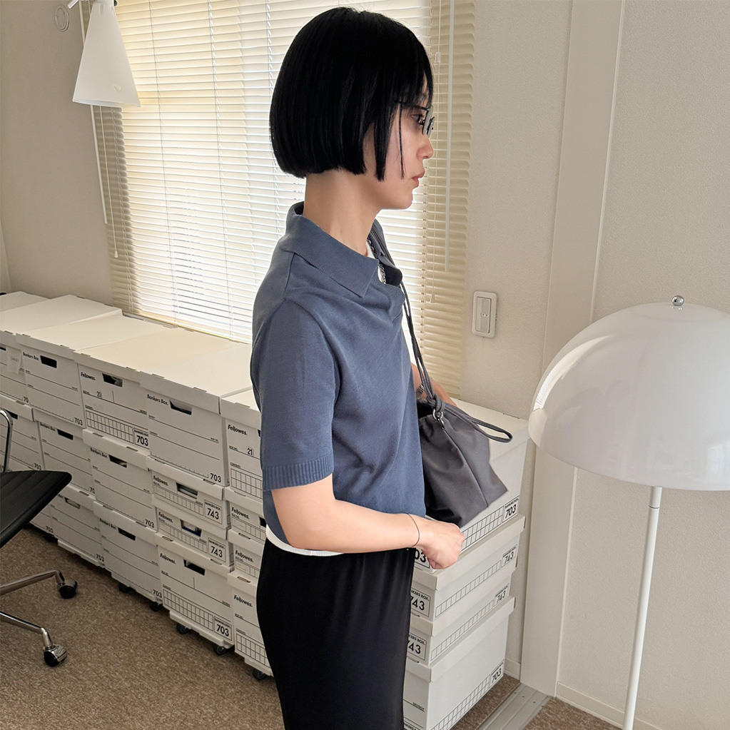 オープンカラーショートスリーブニット