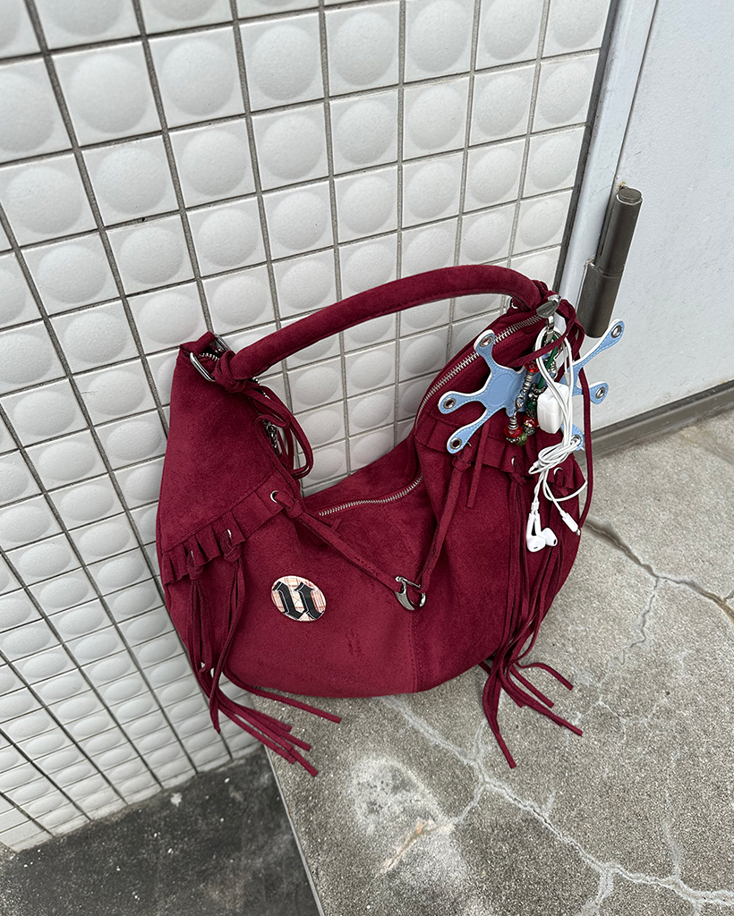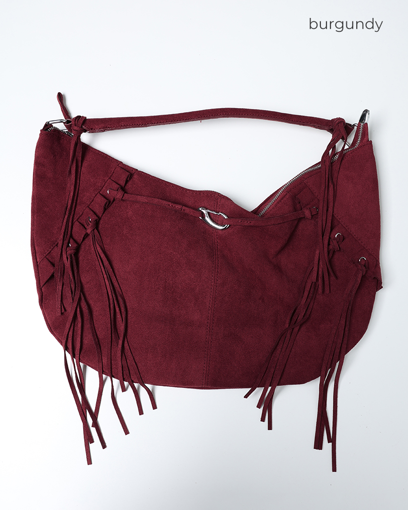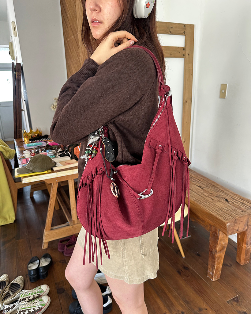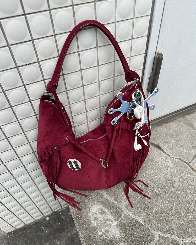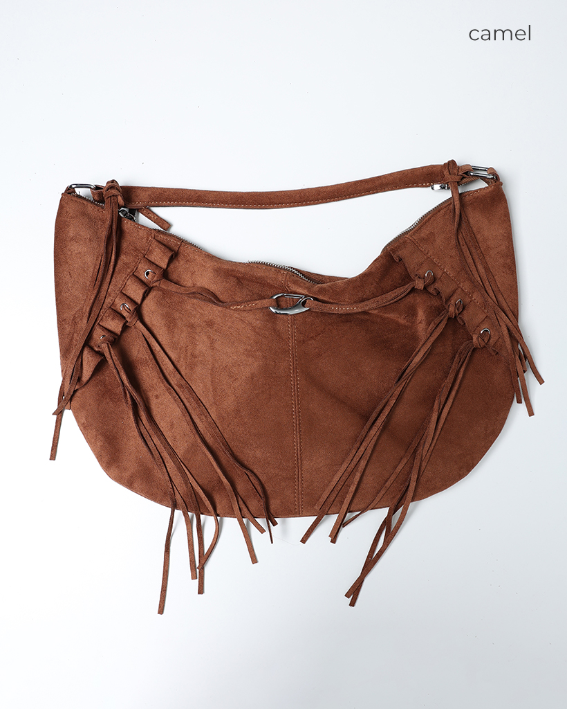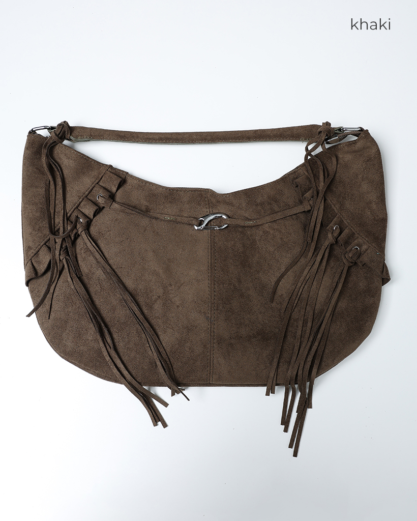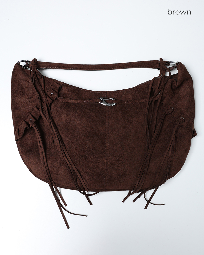 フリルフリンジスウェードホーボーバッグ