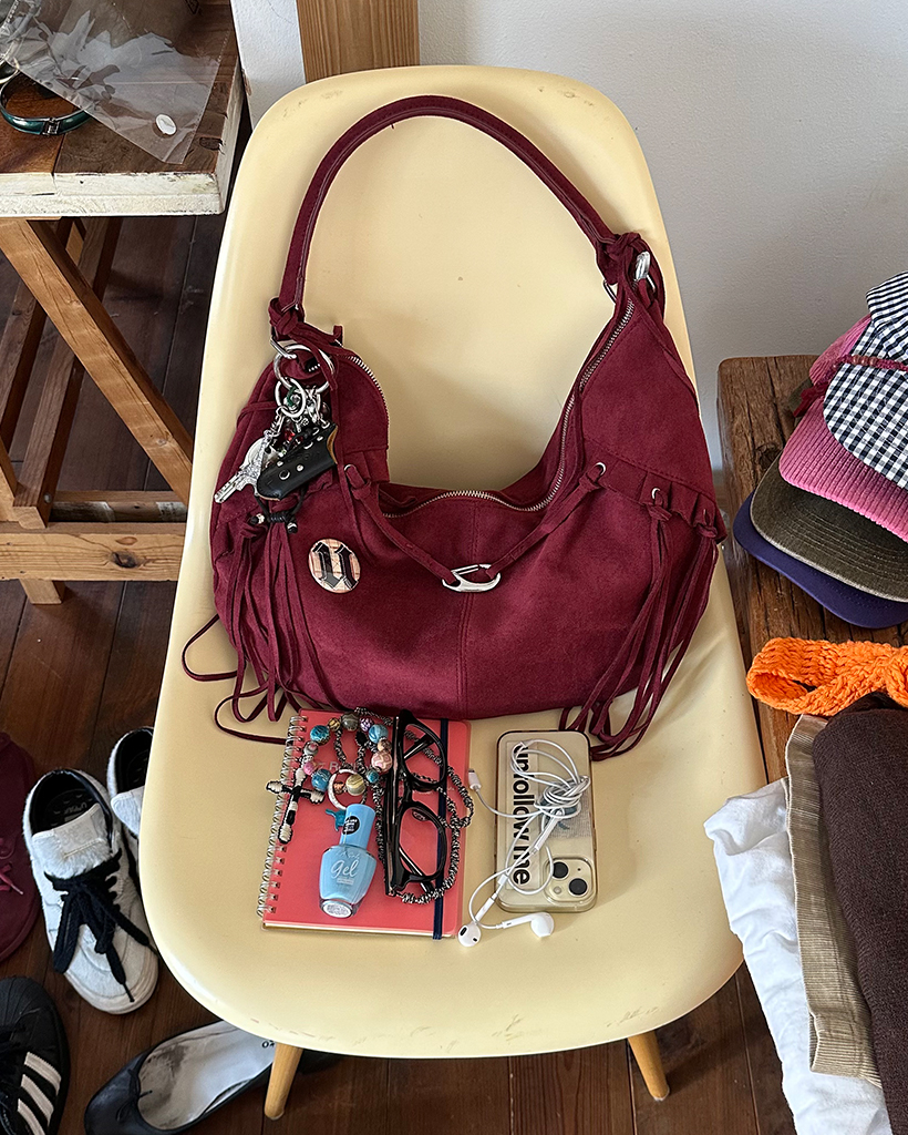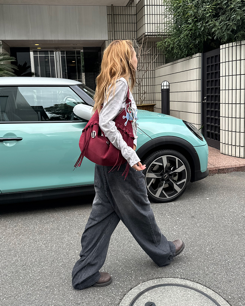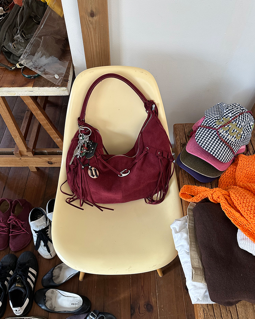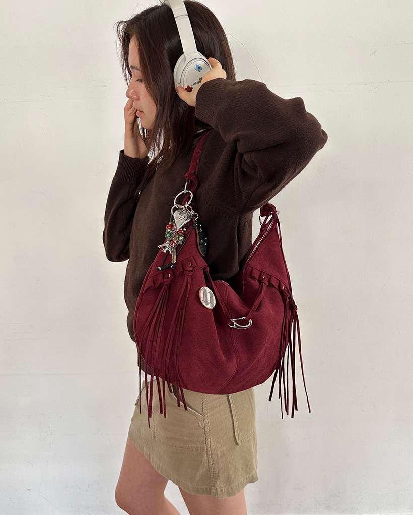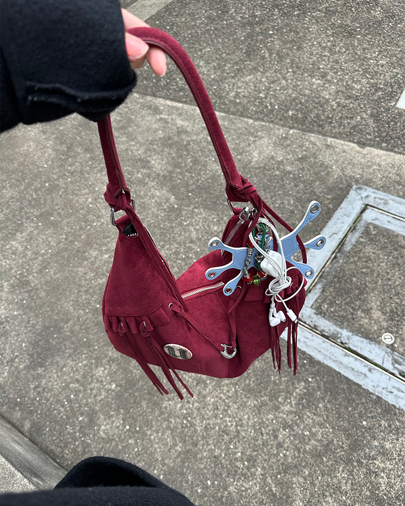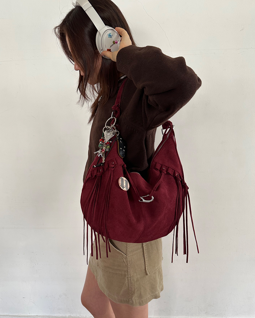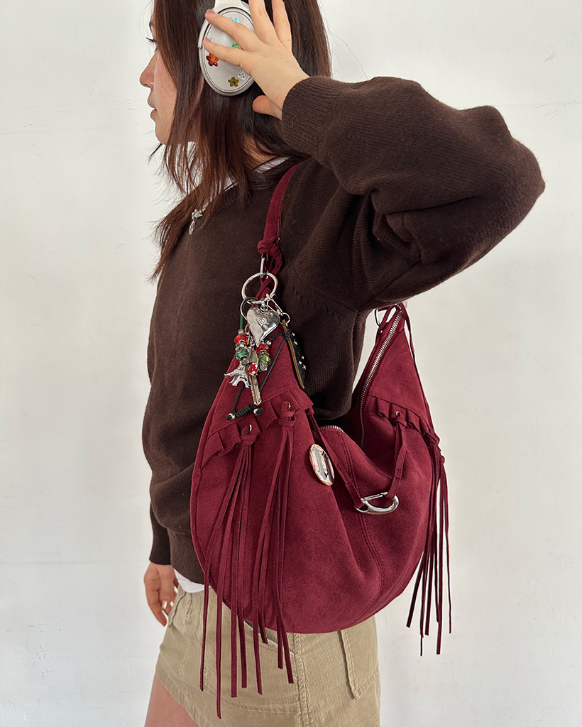 フリルフリンジスウェードホーボーバッグ