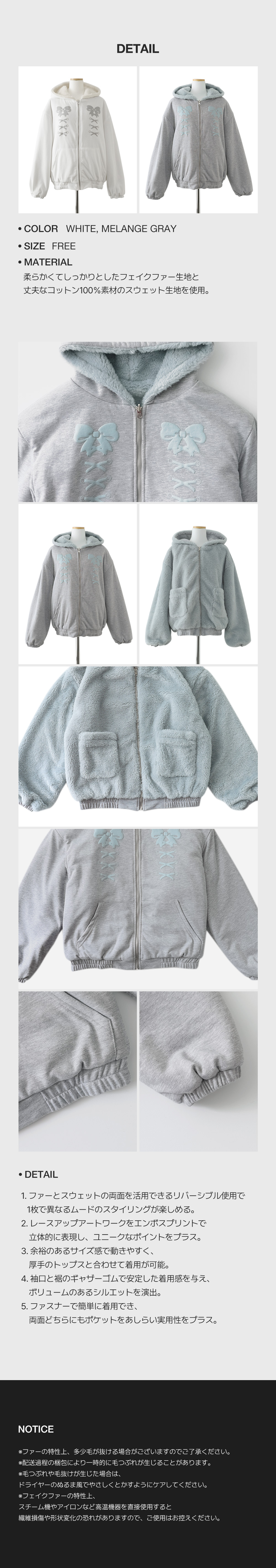 (ORIGINAL) リバーシブルファージップリボンパーカー