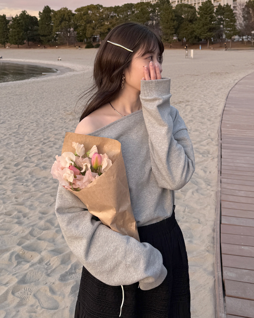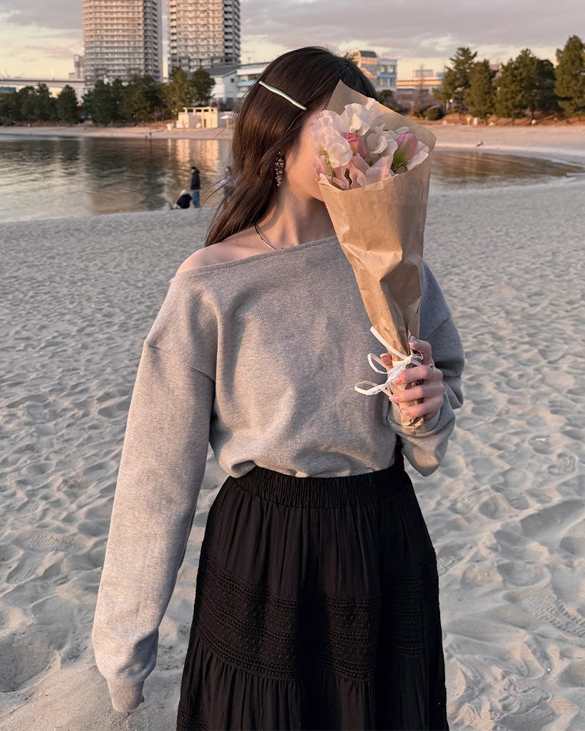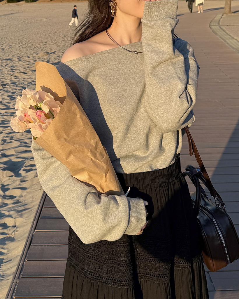 シンプルオフショルスウェットシャツ
