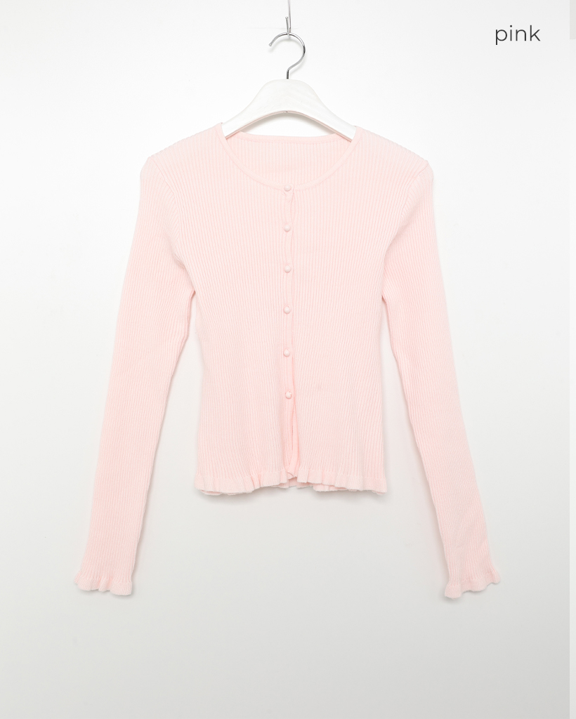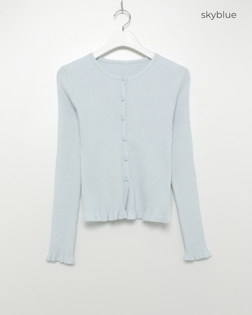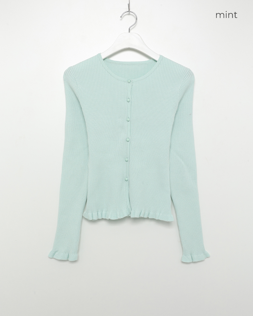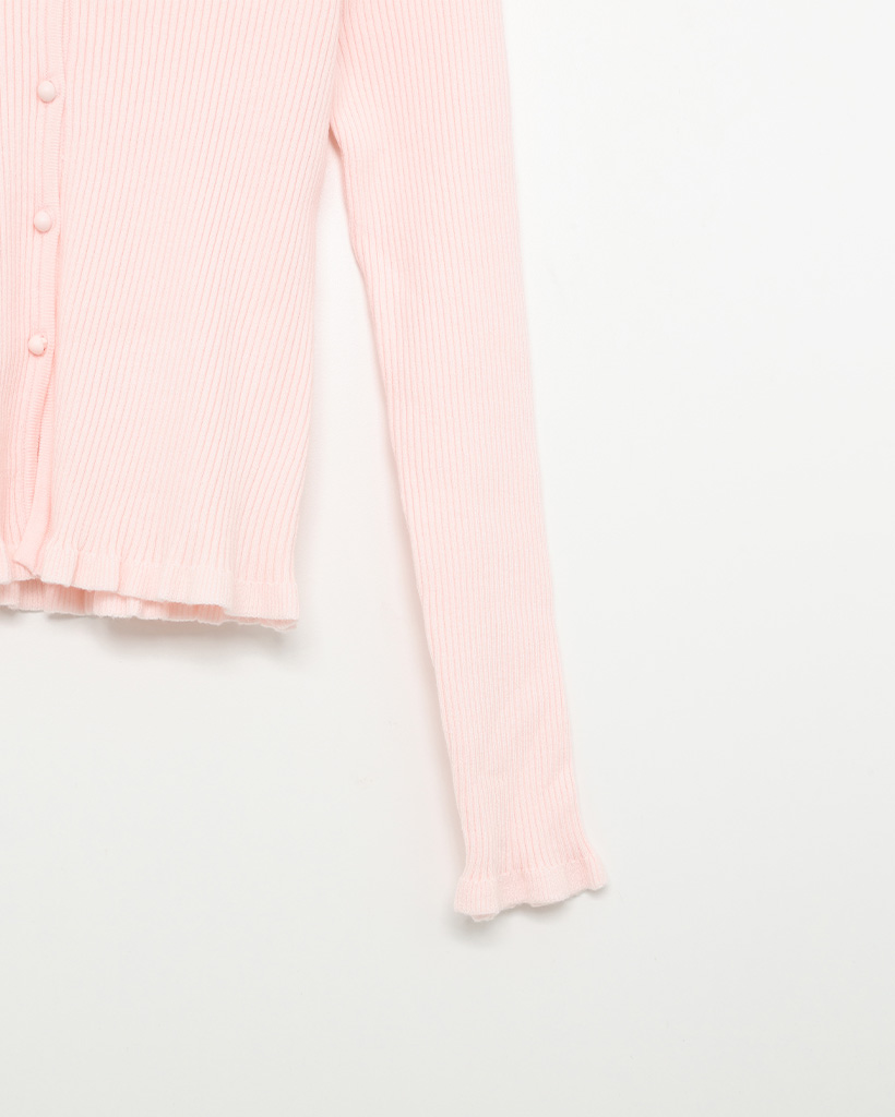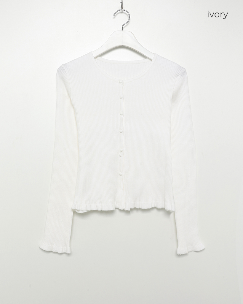 フリルラウンドネックリブカーディガン