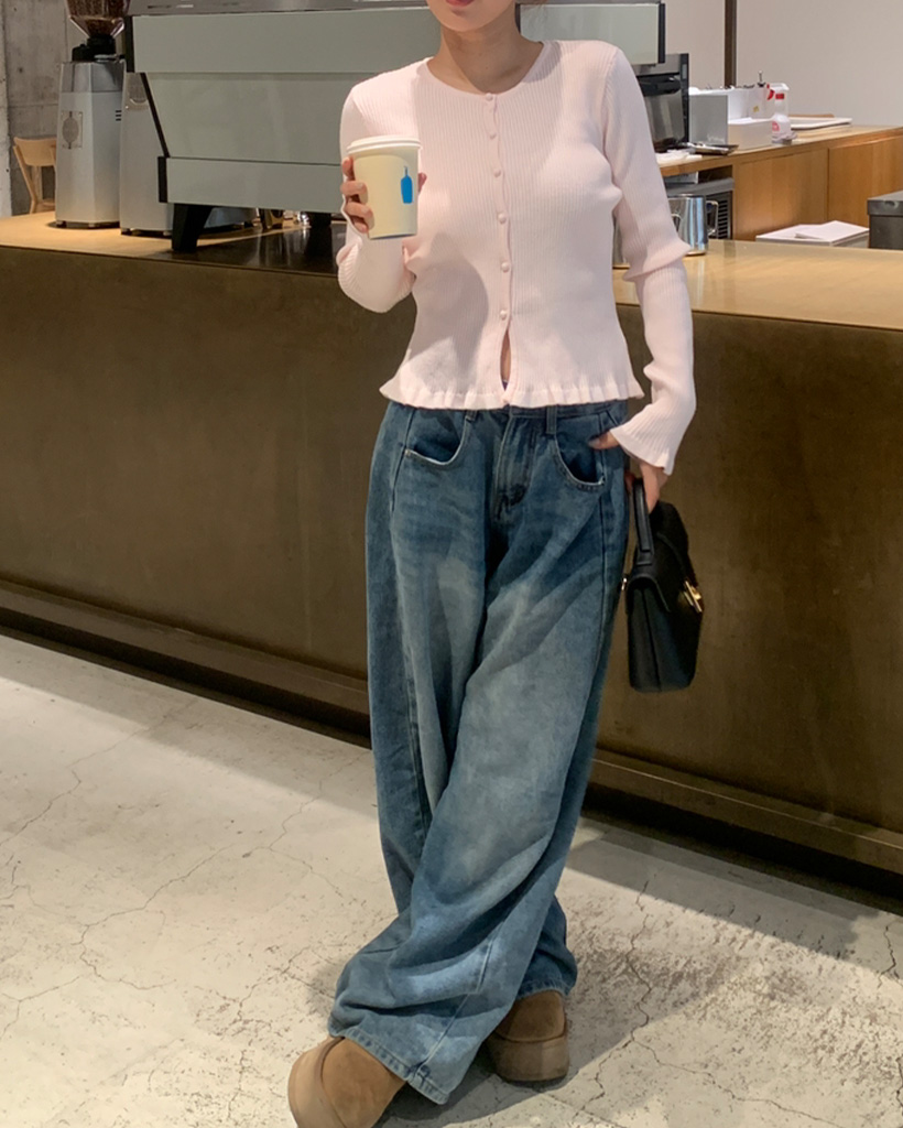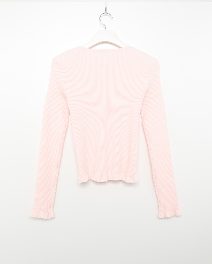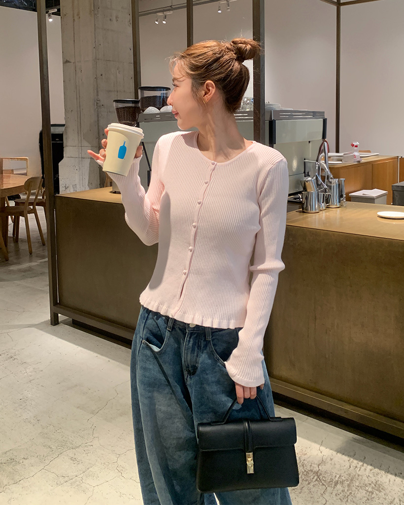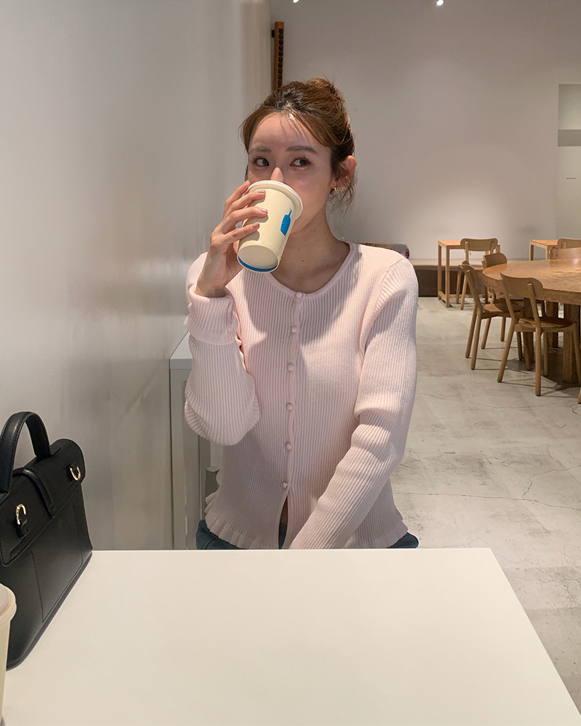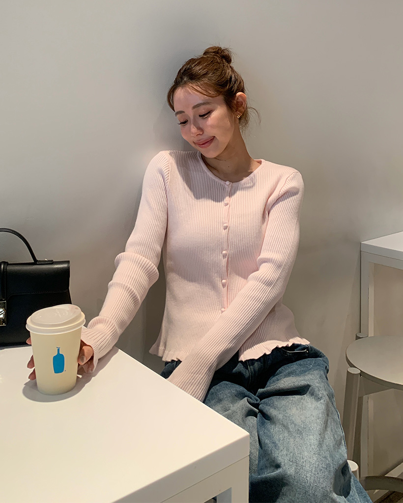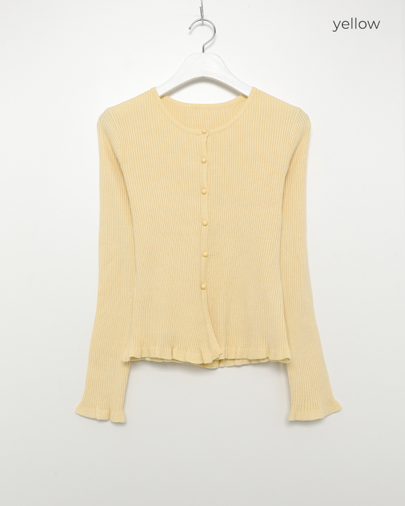 フリルラウンドネックリブカーディガン
