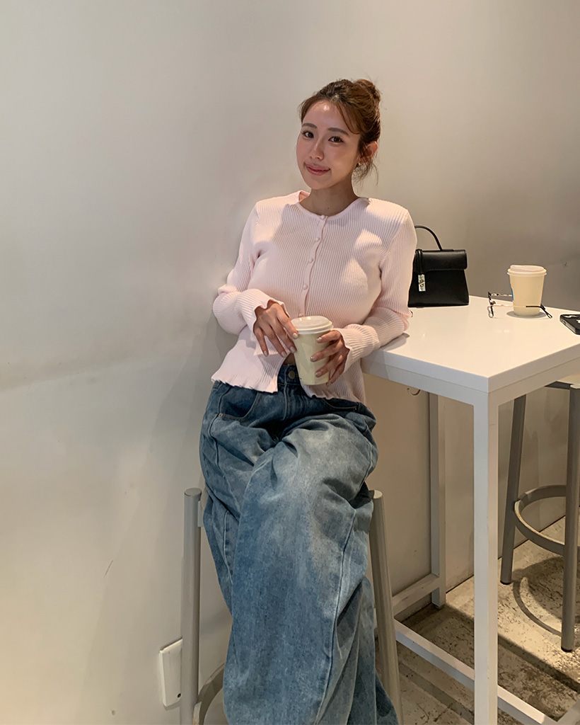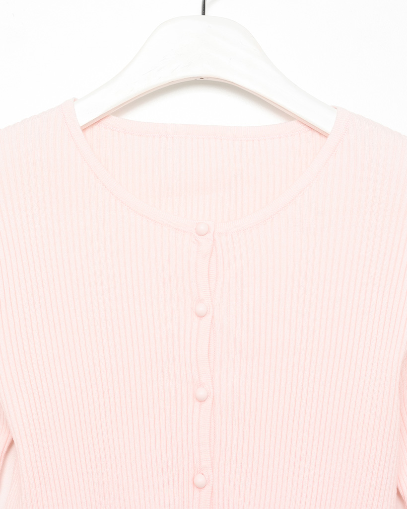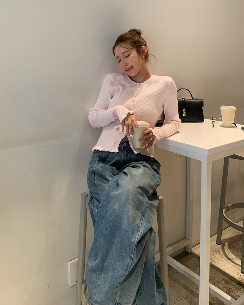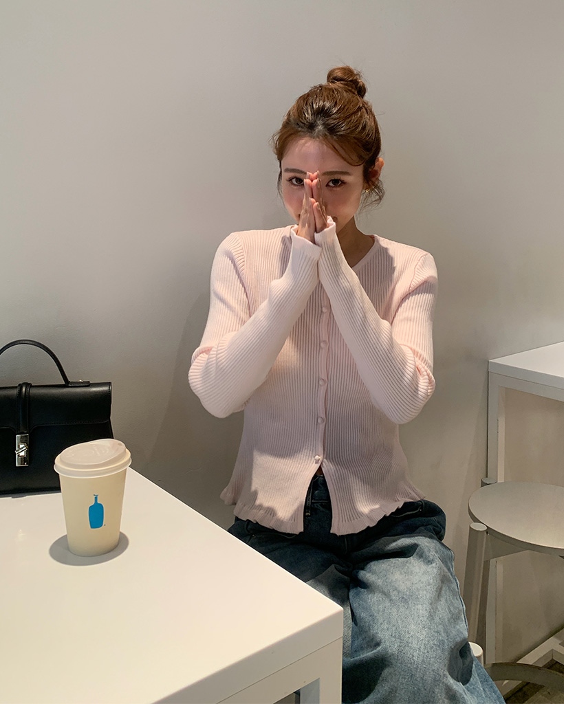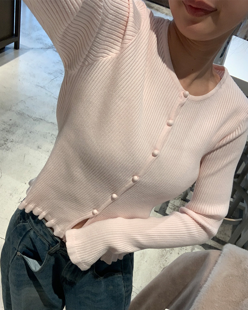 フリルラウンドネックリブカーディガン