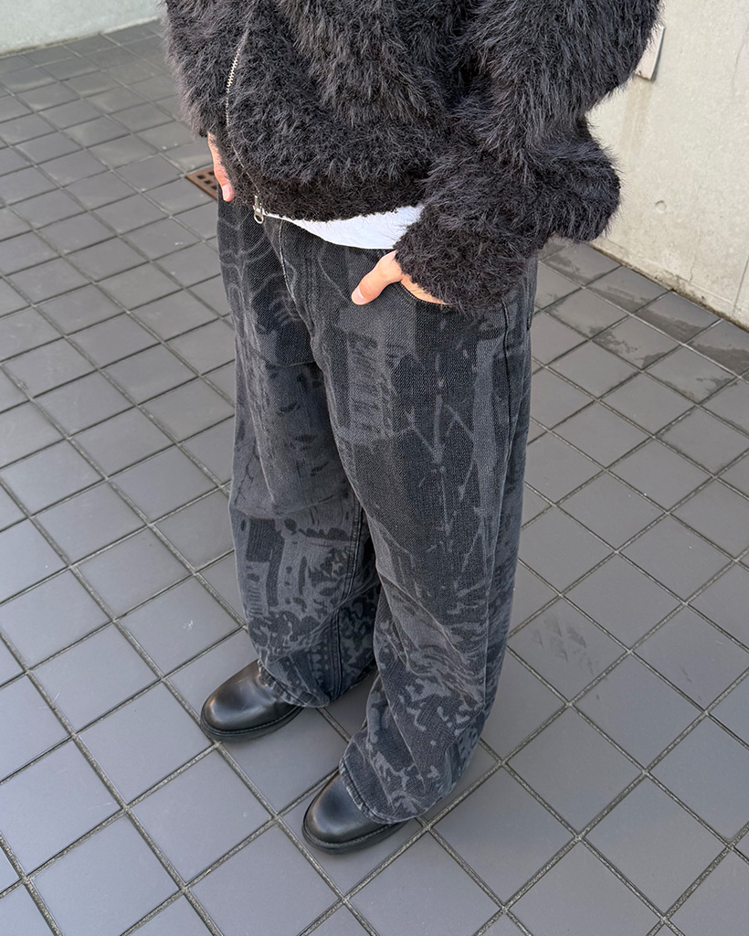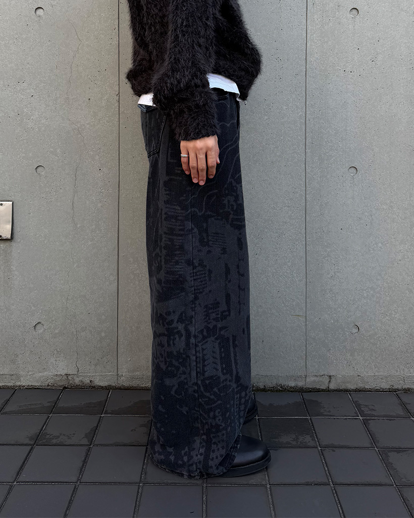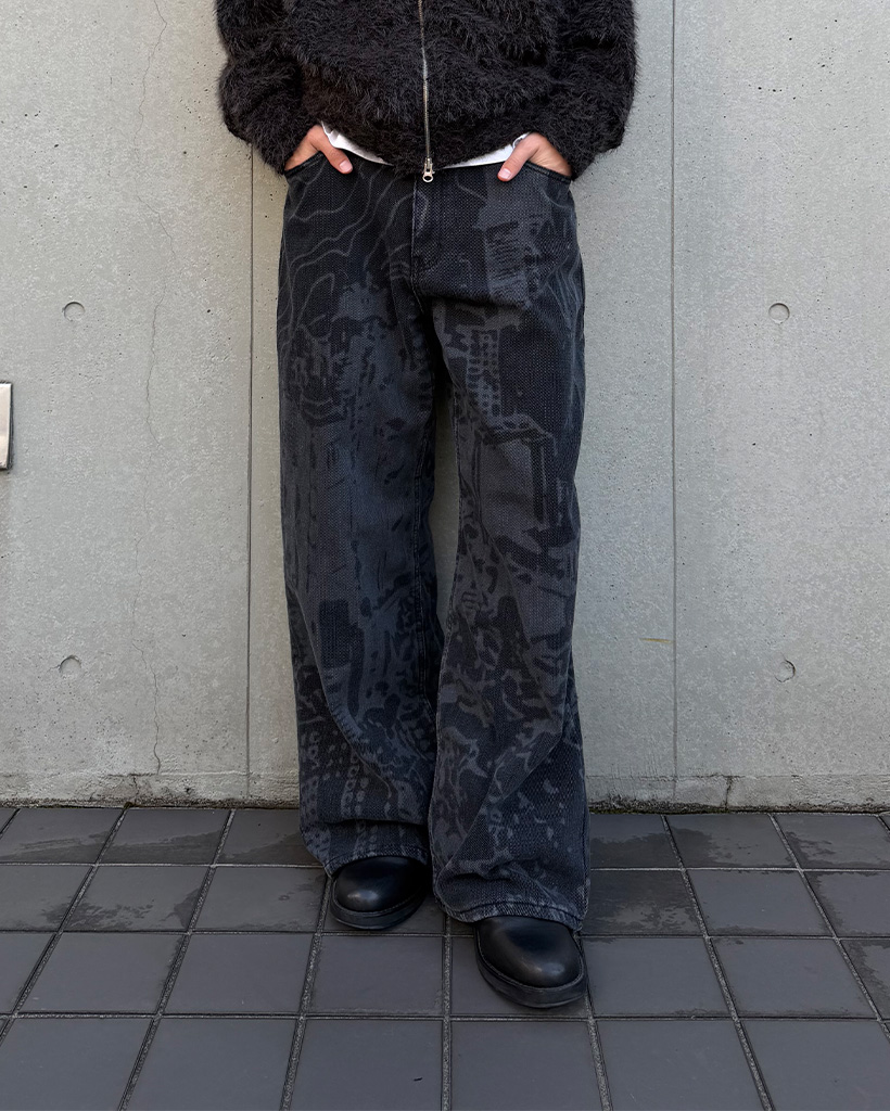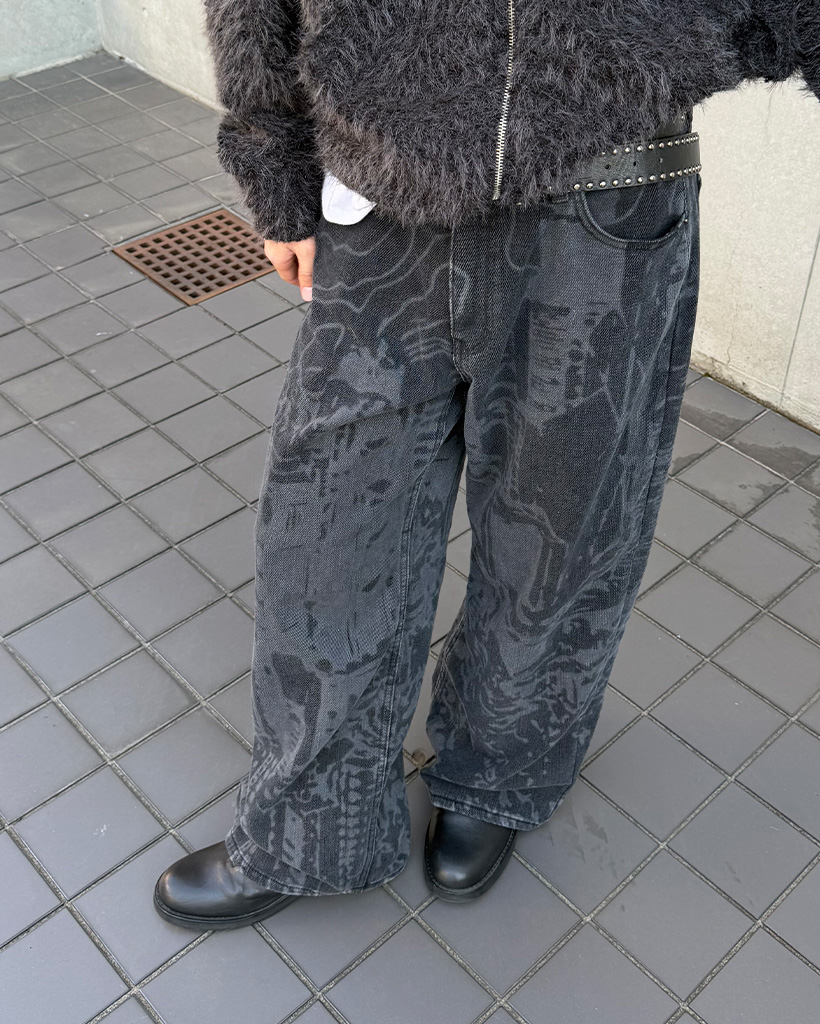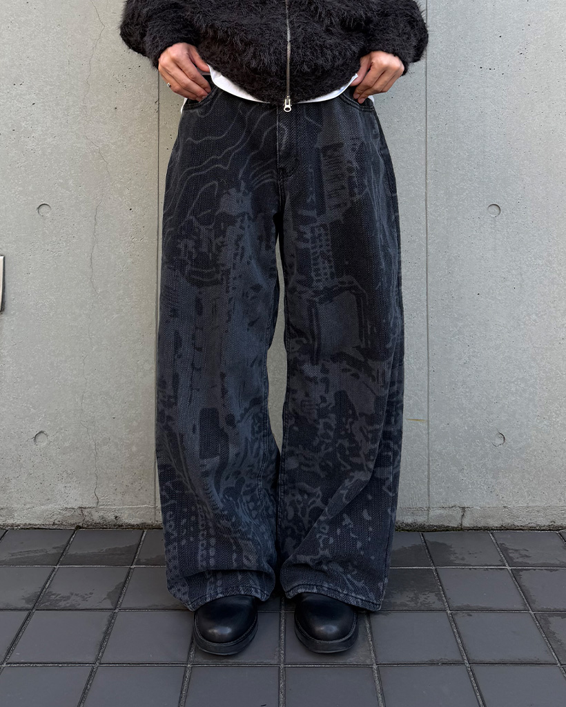 (ユニセックス)バックポケットプリントウォッシュワイドパンツ