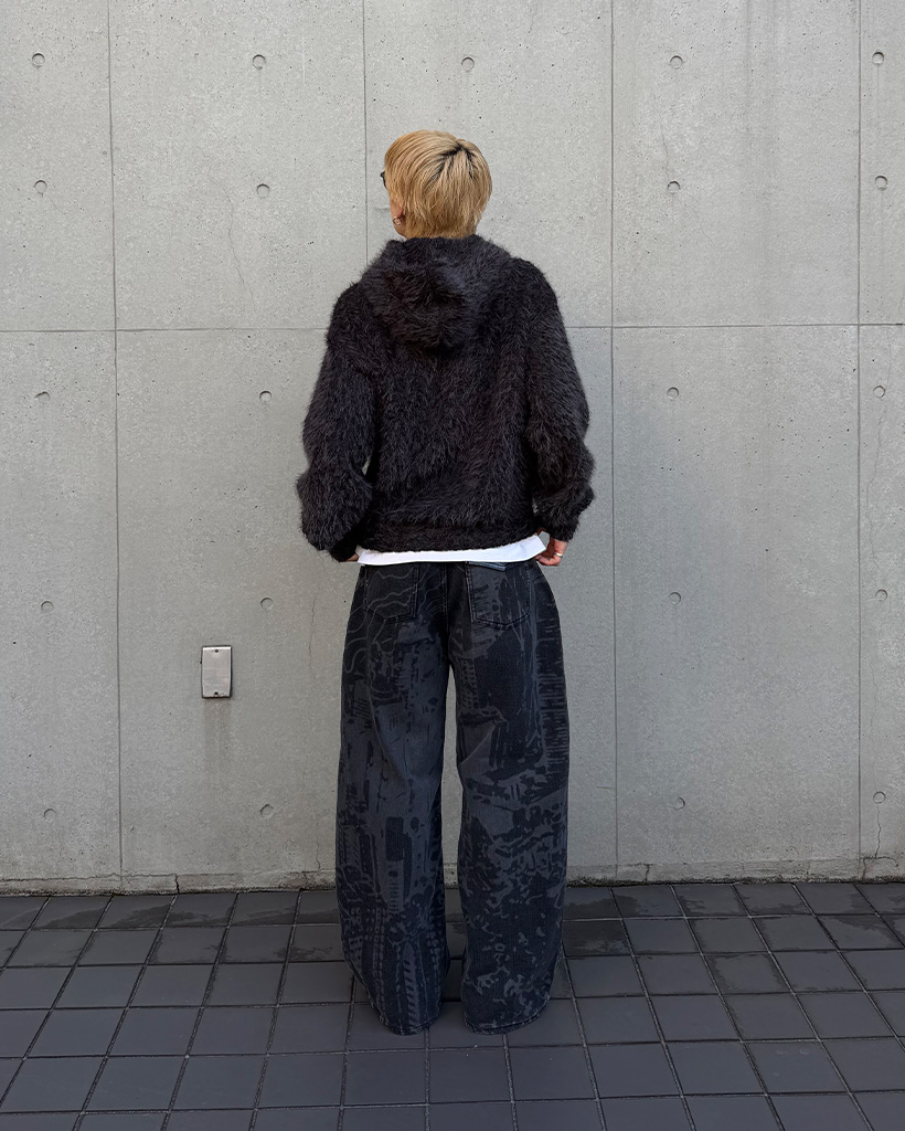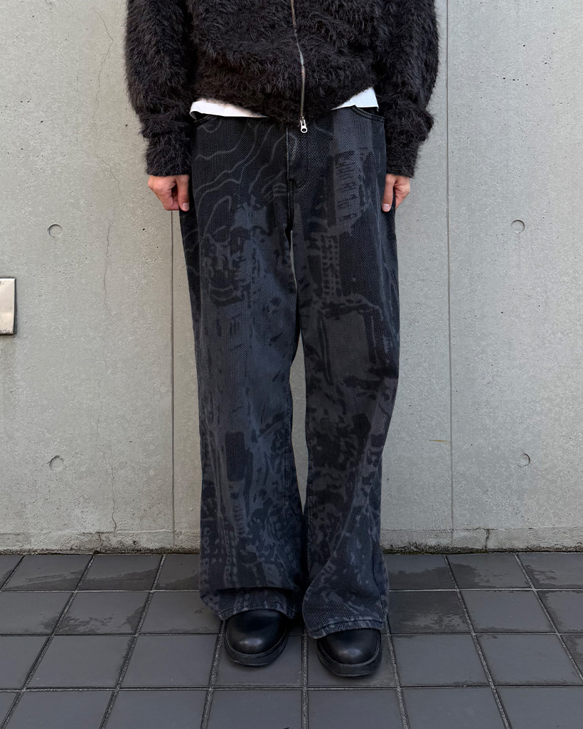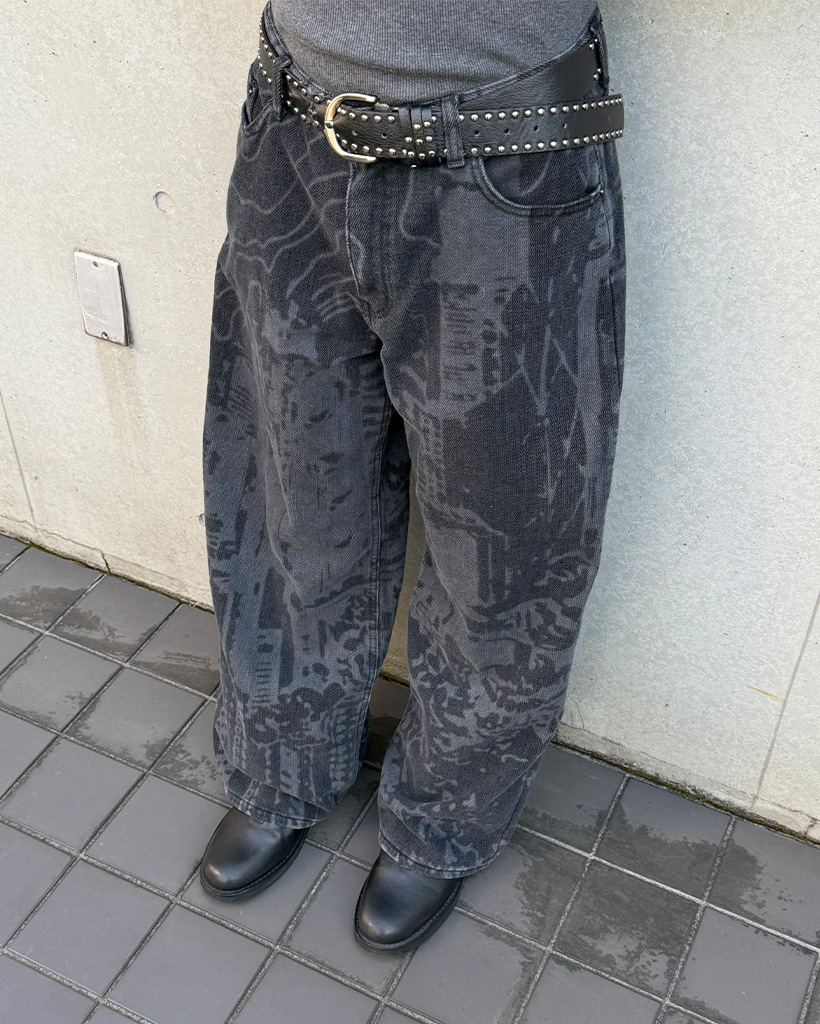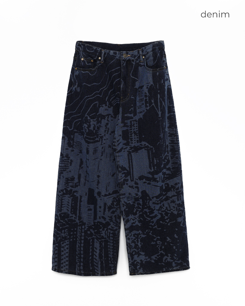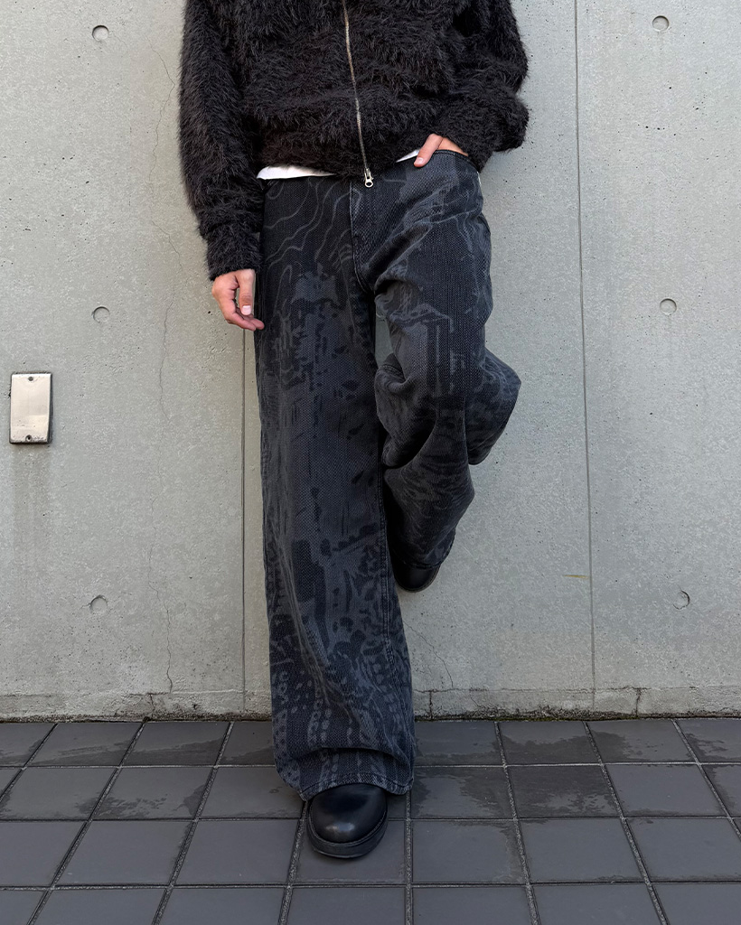 (ユニセックス)バックポケットプリントウォッシュワイドパンツ