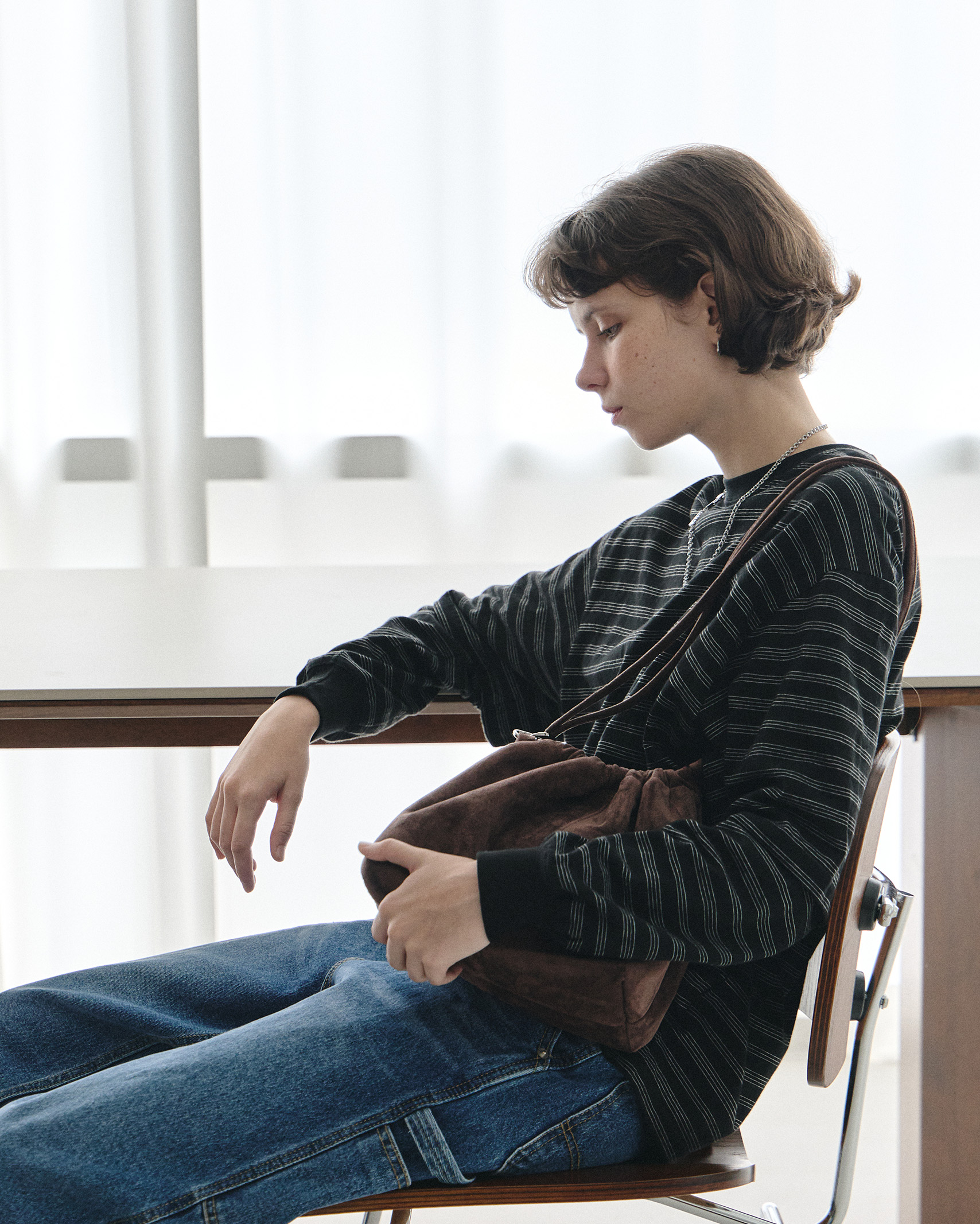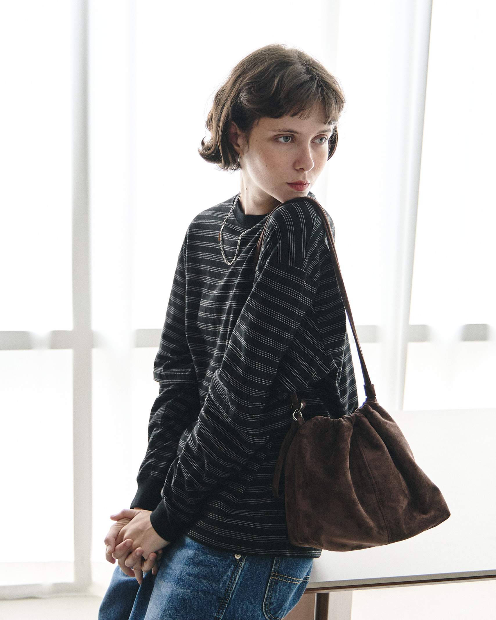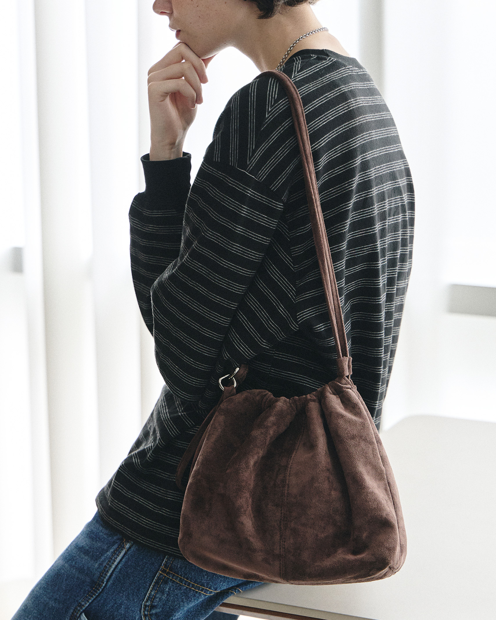 (ORIGINAL) ミディアムソフトドローストリングショルダーバッグ (brown)
