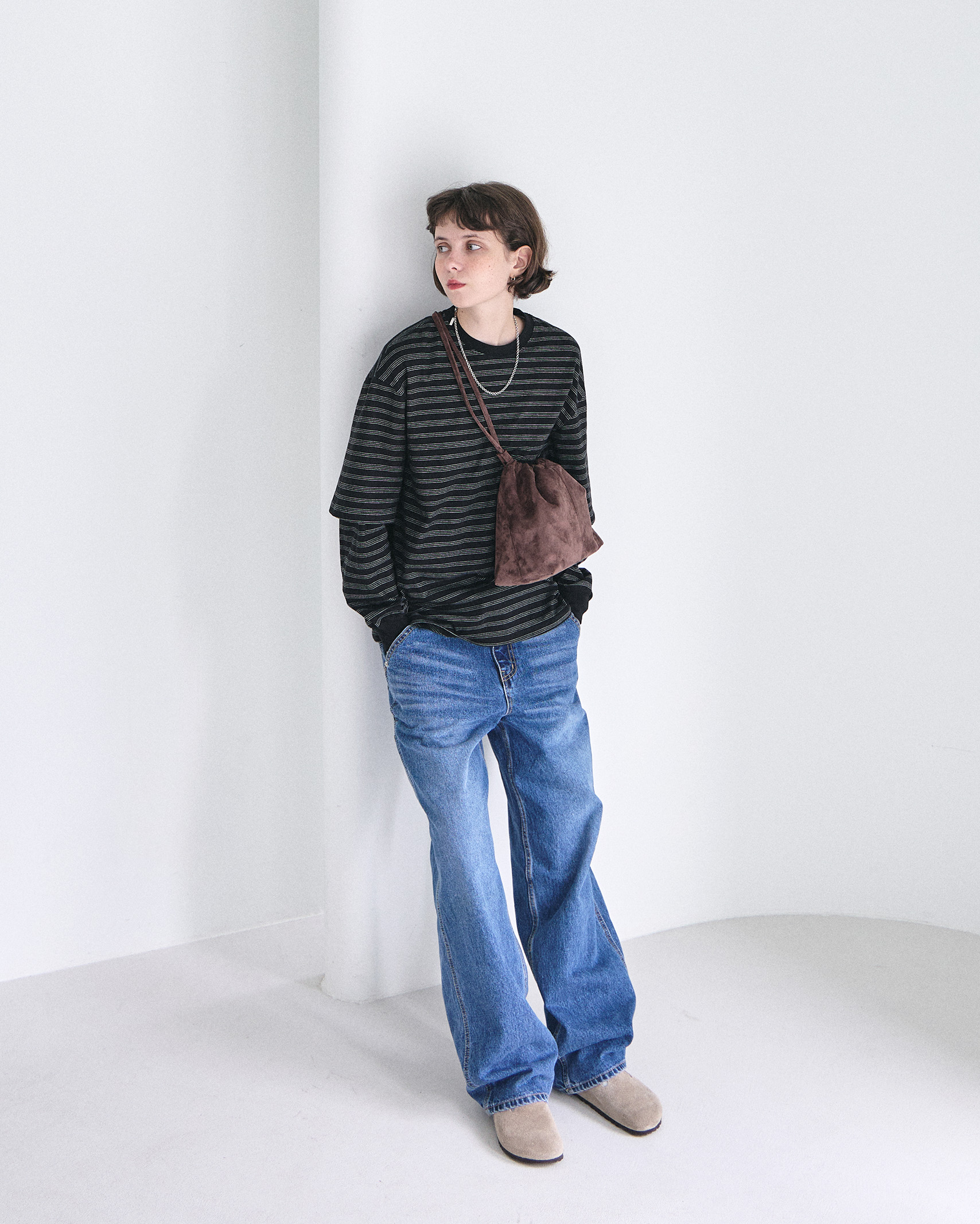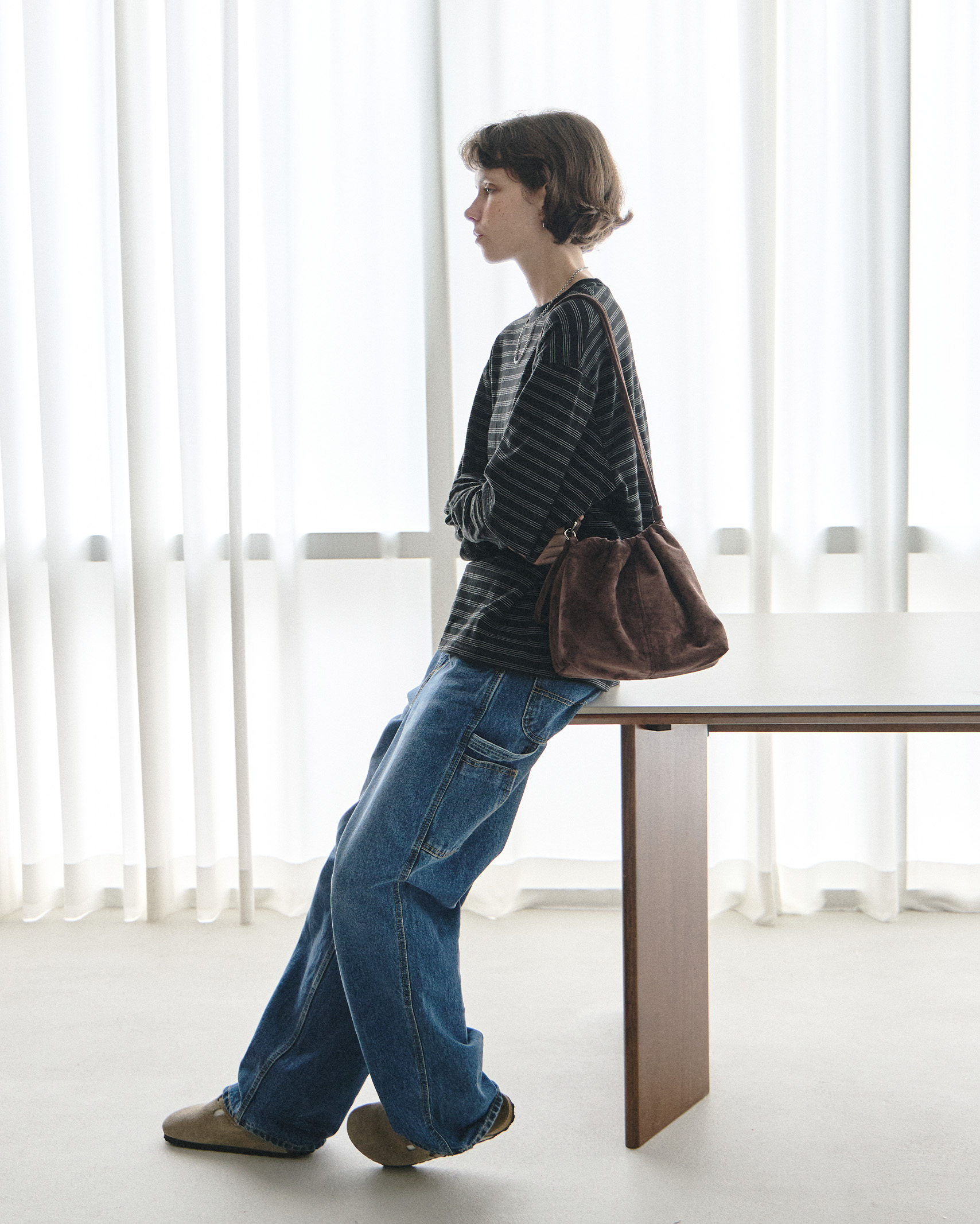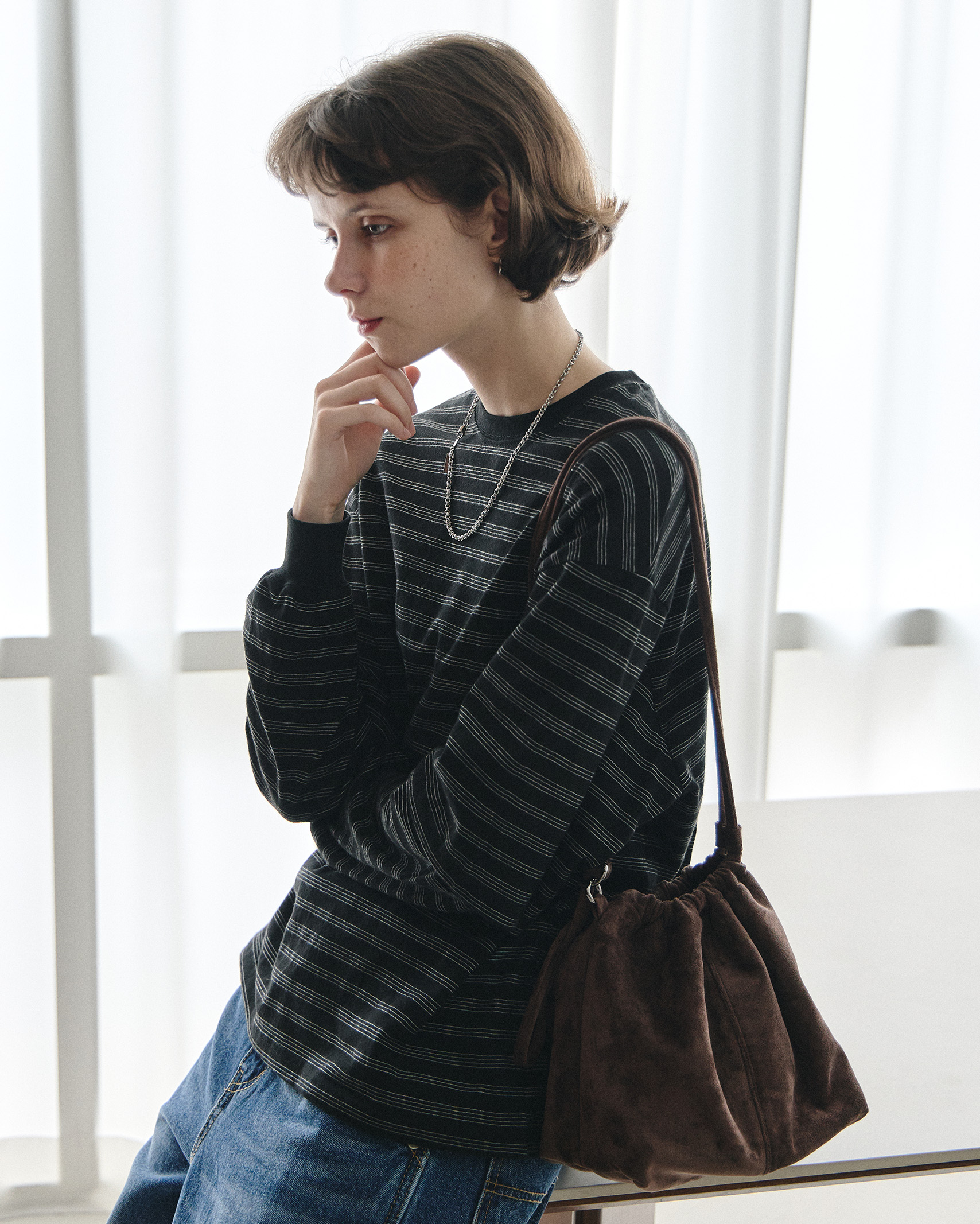 (ORIGINAL) ミディアムソフトドローストリングショルダーバッグ (brown)