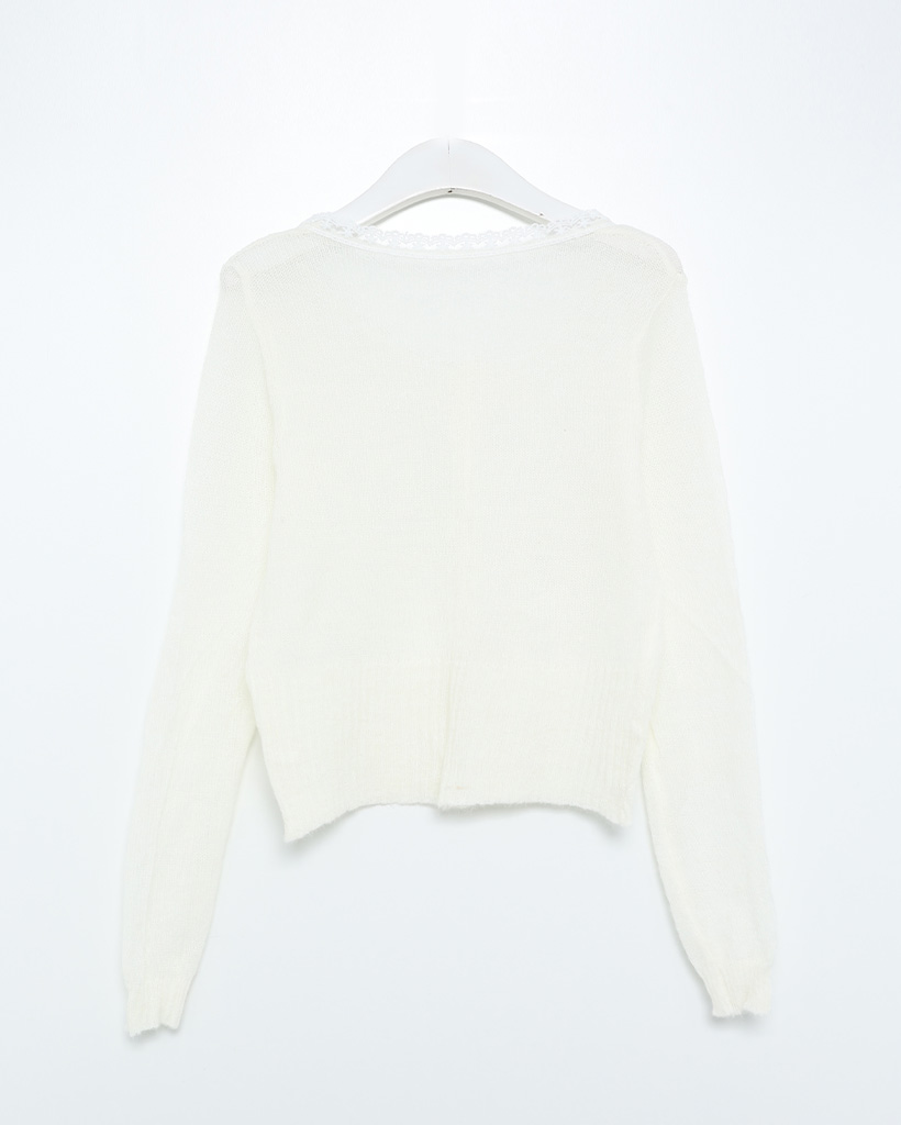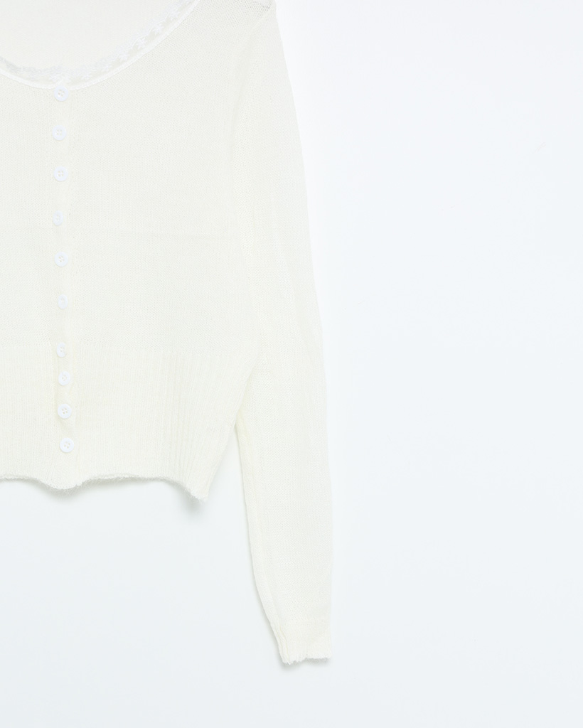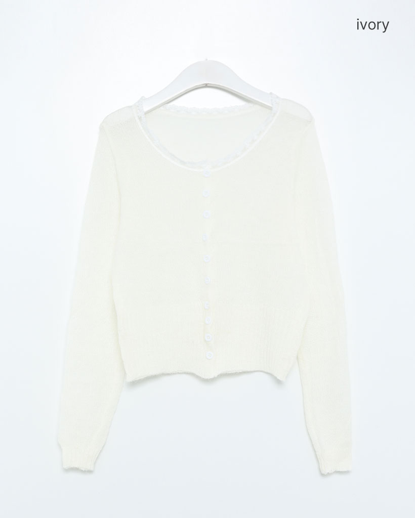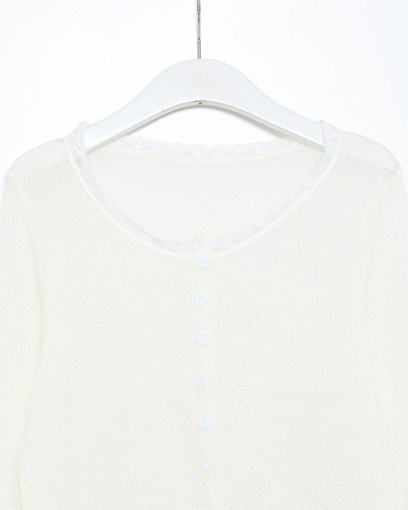 レースネックラインポイントサーマルカーディガン