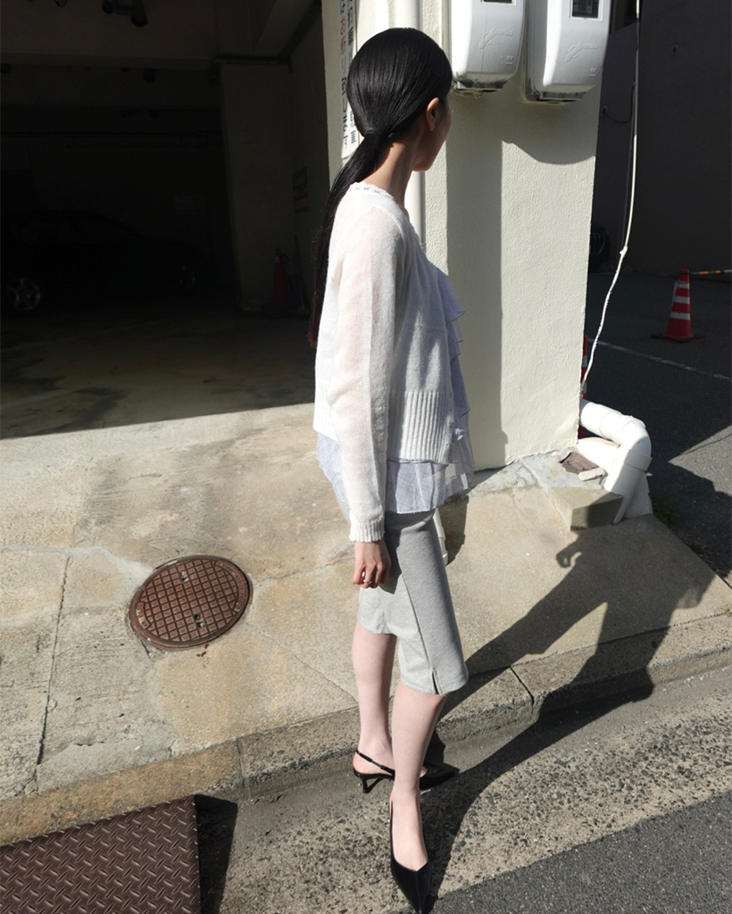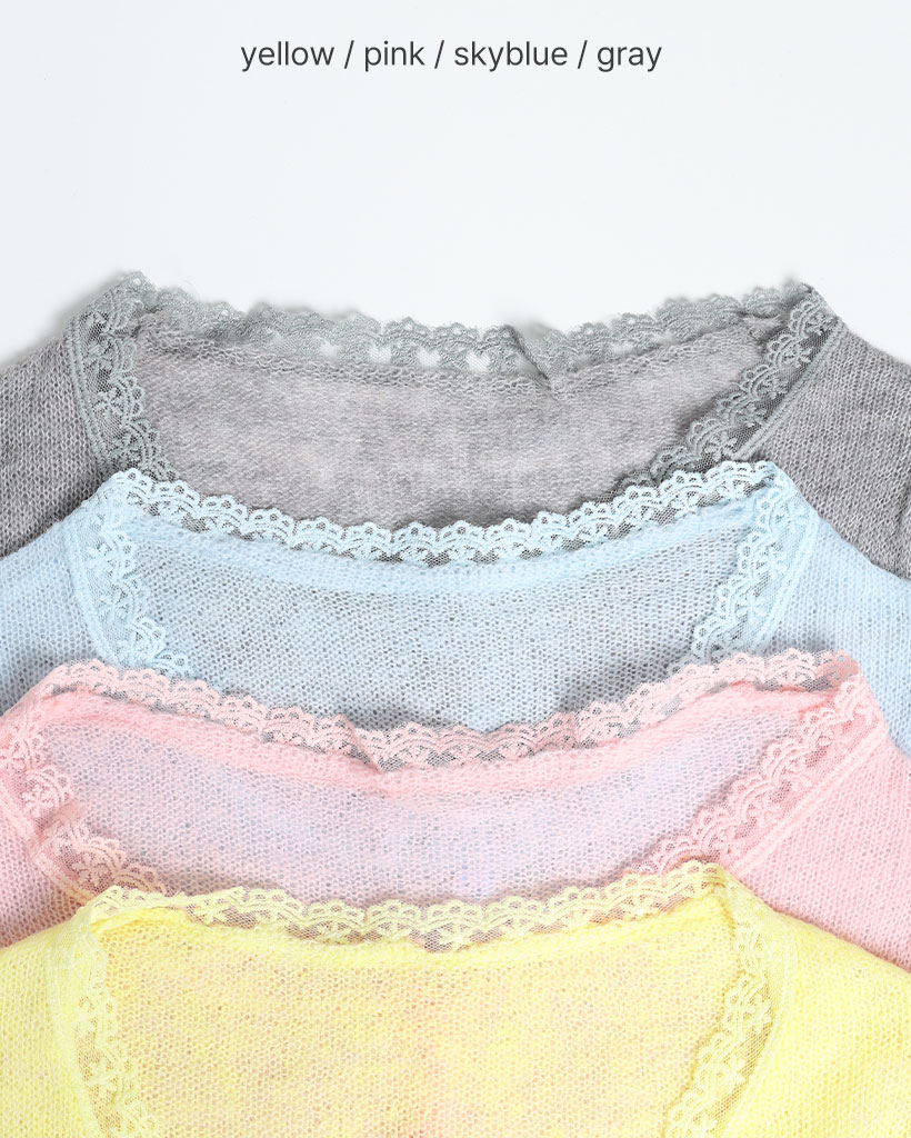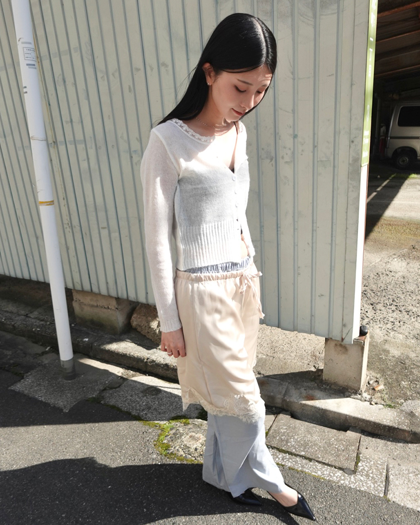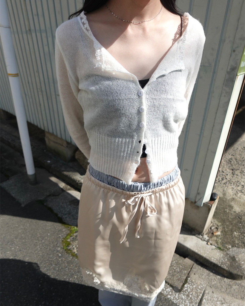 レースネックラインポイントサーマルカーディガン